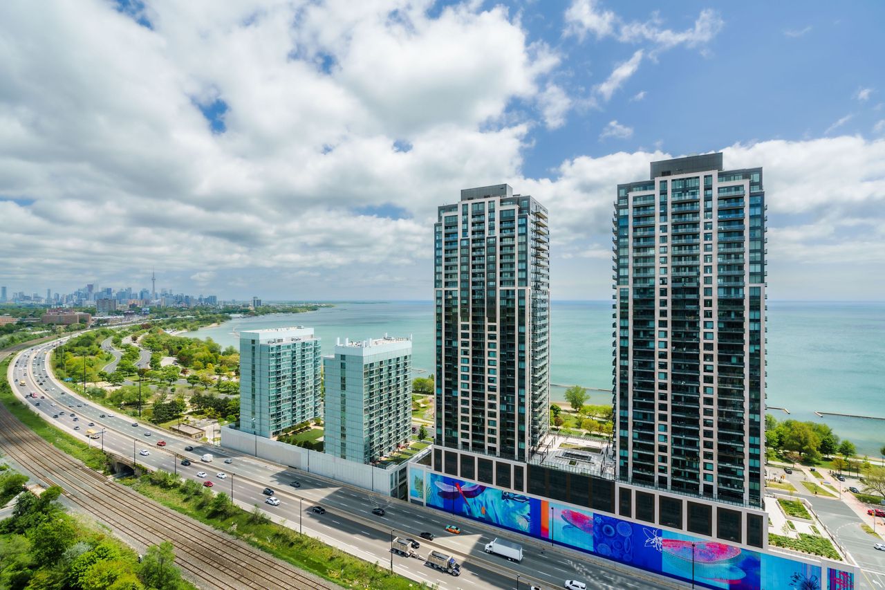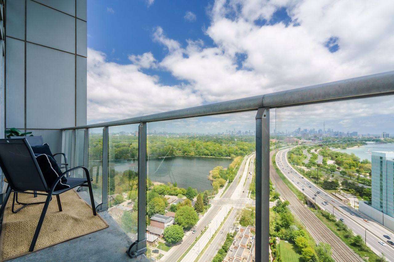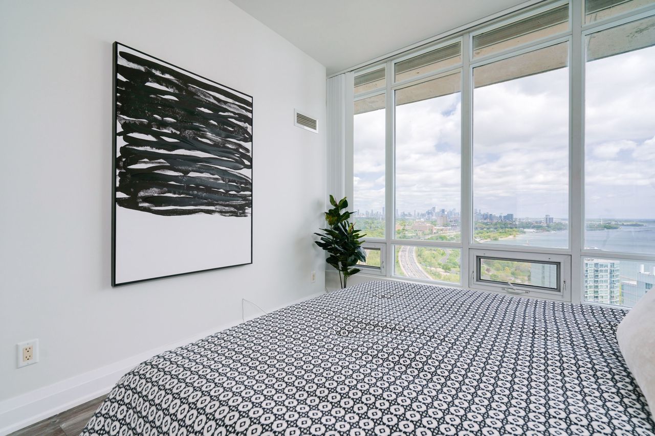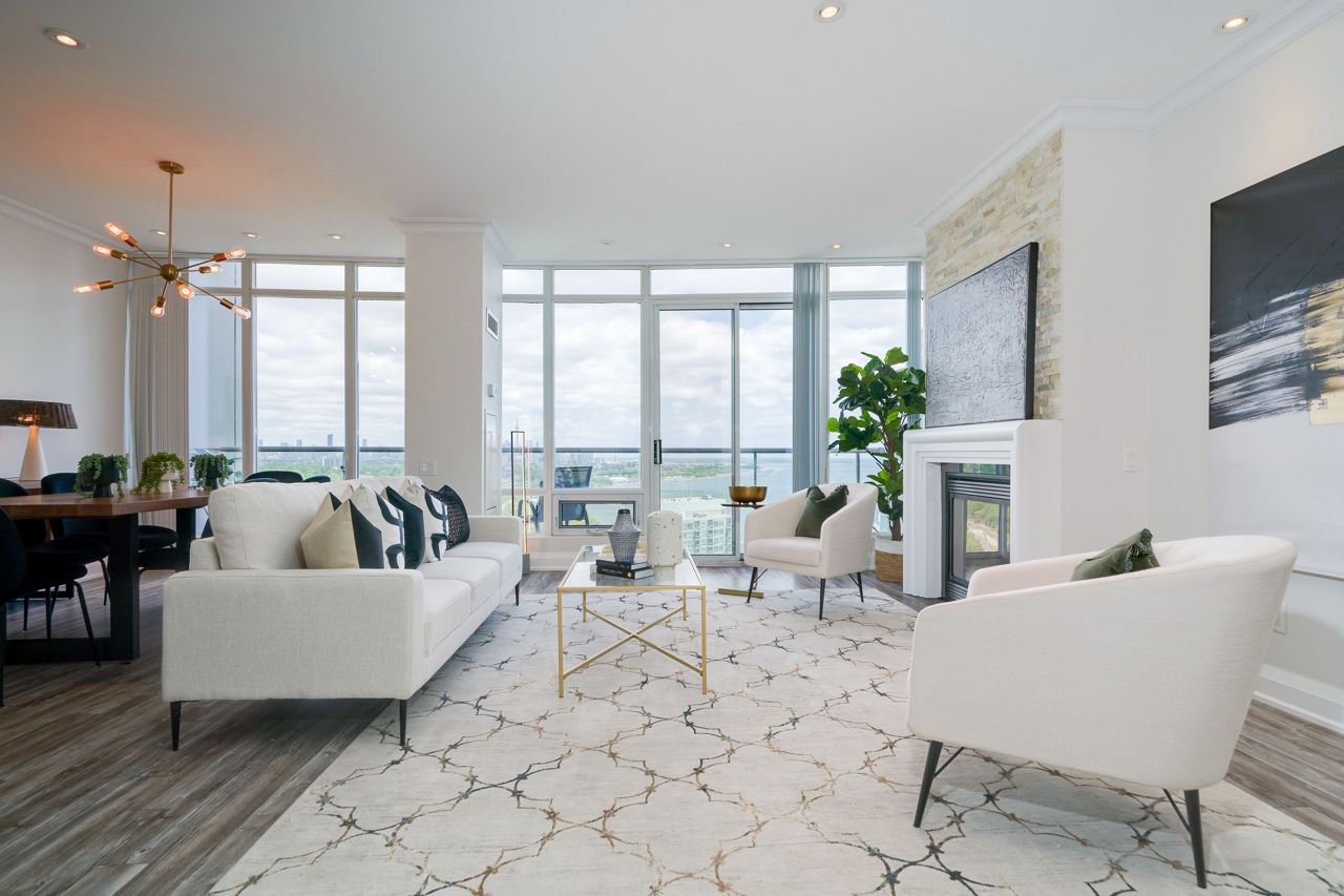 Living Large & in Charge. This spectacular 2-storey penthouse suite is one of the largest in the building, with a stunning view of the City and the Lake that will take your breath away. The open-concept main living area features a spacious gourmet kitchen with stainless steel appliances, a large dining space, and a cozy fireplace - perfect for entertaining guests or relaxing after a long day. The amazing view from the floor-to-ceiling windows provide an abundance of natural light. 9-foot smooth ceilings & pot lights throughout, this suite is designed for luxury living. The Oversized Bedrooms & Luxurious Primary Bed are spacious enough to accommodate king-sized beds & offer ample closet and storage space. Located just minutes from High Park & The Waterfront, Cheese Boutique, both airports, this Penthouse Suite offers the perfect balance of luxury & convenience.Fridge, Stove, Built in Microwave, Built in Dishwasher, Front load Washer & Dryer. Includes Heat, Hydro and Water. Incredible amenities, including a Party Room, Indoor Pool, Gym, Sauna, virtual golf, and much more.