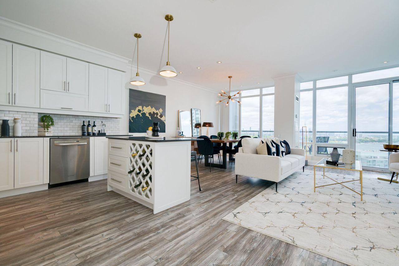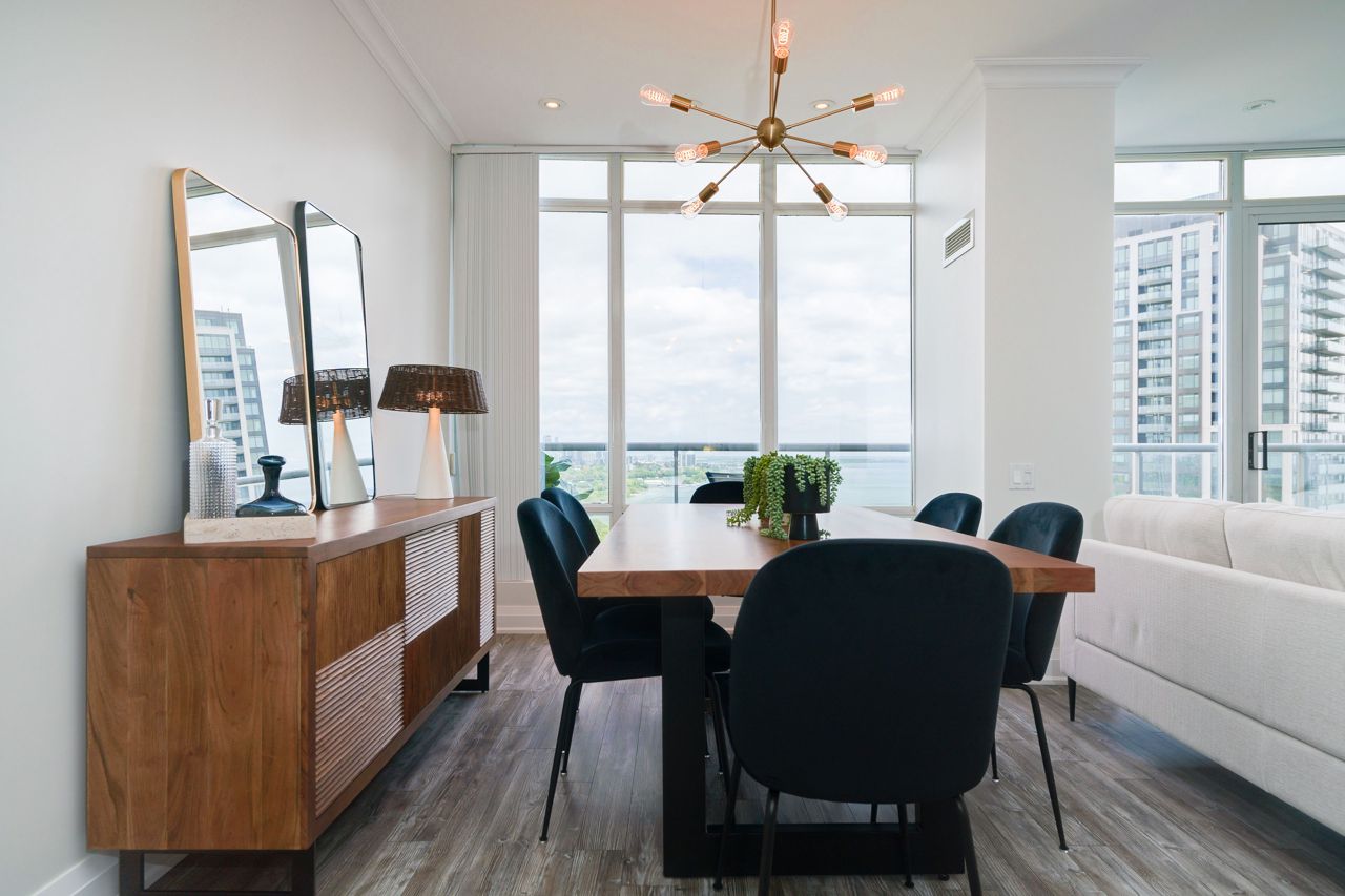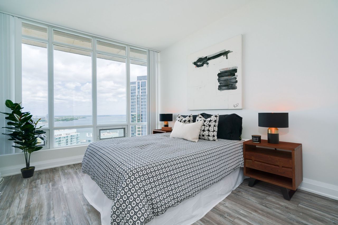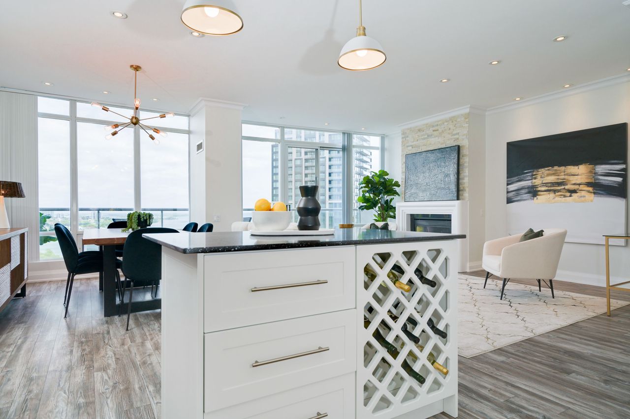Living Large & in Charge. This spectacular 2-storey penthouse suite is one of the largest in the building, with a stunning view of the City and the Lake that will take your breath away. The open-concept main living area features a spacious gourmet kitchen with stainless steel appliances, a large dining space, and a cozy fireplace - perfect for entertaining guests or relaxing after a long day. The amazing view from the floor-to-ceiling windows provide an abundance of natural light. 9-foot smooth ceilings & pot lights throughout, this suite is designed for luxury living. The Oversized Bedrooms & Luxurious Primary Bed are spacious enough to accommodate king-sized beds & offer ample closet and storage space. Located just minutes from High Park & The Waterfront, Cheese Boutique, both airports, this Penthouse Suite offers the perfect balance of luxury & convenience.Fridge, Stove, Built in Microwave, Built in Dishwasher, Front load Washer & Dryer. Includes Heat, Hydro and Water. Incredible amenities, including a Party Room, Indoor Pool, Gym, Sauna, virtual golf, and much more.