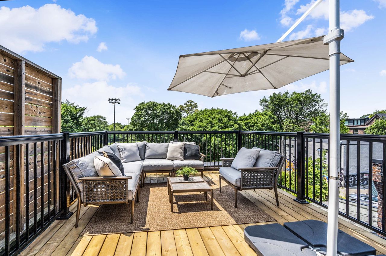 Truly Special, Very Private Home On Trinity Bellwoods Park with a fully fenced, deep backyard & two-car garage with laneway house potential mean endless possibilities! This isn't just a house; it's a private sanctuary nestled in the heart of the city with an iconic CN Tower view. Step inside, the interior is bathed in natural light, enjoy both sunrises & sunsets. Every corner of this spacious 2,876 sf home across four levels breathes comfort. From the thoughtful front foyer with clever storage to the main floor has an effortless flow. Your Primary Retreat is a true escape: a walk-in closet, a spa-like 4-piece ensuite with a separate walk-in shower & Jacuzzi tub, plus a large, sunny rooftop deck. Unwind your day into night with gorgeous park views & sunsets. This mood makes memories. The second floor ensures room for everyone, with three versatile bedrooms perfect for family or that dedicated work-from-home office. A 5-piece bath, linen closet & a laundry room with a deep sink, folding counter & ample cabinets. Downstairs, the finished basement with a separate entrance offers flexibility. Either a vibrant teen haven, a private in-law suite, or a creative studio, the spacious areas & 3-piece bath adapt to your every need. Trinity Bellwoods Park is your playground: summer pickleball, winter hockey, tennis courts, baseball diamonds, walking trails, a dog park & Trinity Community Rec Centre. Beyond the park, the amenity-rich neighbourhood pulses with life. Wander along Queen West, Dundas West, or the Ossington Strip, discovering an array of vibrant indie shops, cafes & world-class restaurants. Education is paramount, with diverse public, alternative, Catholic, and private schools nearby. Access to TTC, Lakeshore, Gardiner Expressway & Porter Airlines means ultimate convenience. This special home & irreplaceable location will embrace every age & stage of life. Those who know Trinity Bellwoods... know. For those who are ready to discover its magic... welcome home!