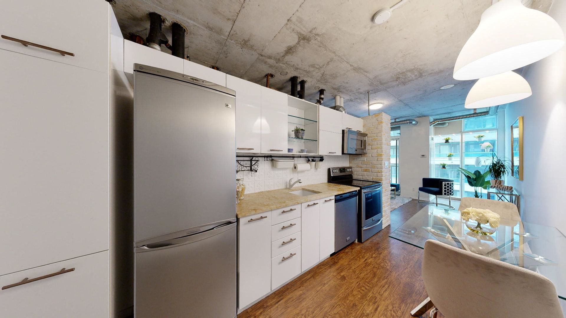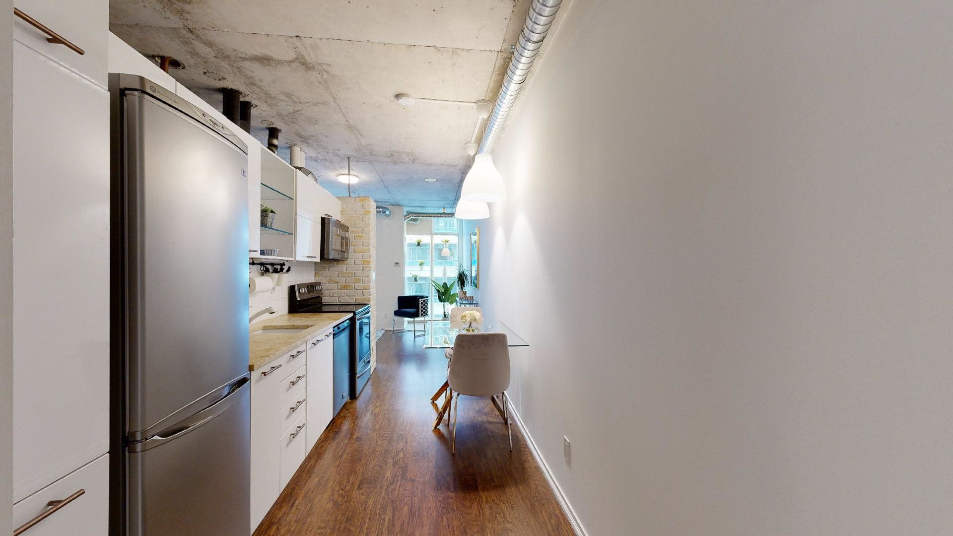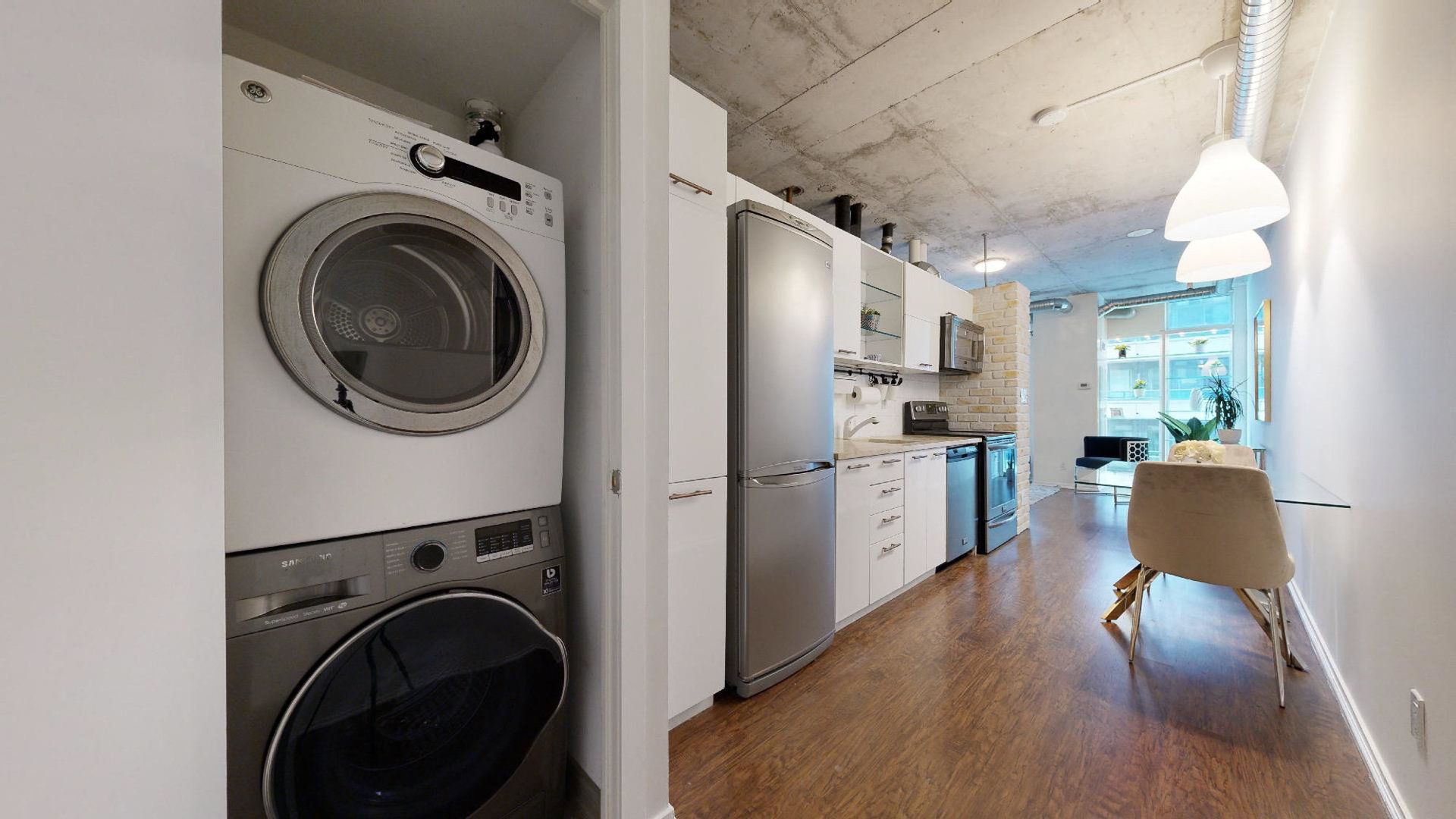 Welcome To Gallery Lofts! This Must-See 2 Bedroom, 2 Full Bath Loft Is Just Steps Away From The Drake And Gladstone Hotel, All The Trendy Bars, Art Galleries And Shopping, A 1 Mm Walk To A 24-Hr Streetcar. This Unit Features Floor To Ceiling Windows, Brick Wall Separating The Living and Kitchen Area. Antique Tin Panel Wall in Living Rm. Exposed Concrete Ceilings & Duckwork Gives It An Urban Edge. Open Balcony. Ultimate Urban Living And Rental! Investment Potential. Don’t Miss Out!!S/S Fridge, Stove, Dishwasher, Microwave, Stacked Washer/Dryer, All Elf, Minutes To Gardiner Exp, Billy Bishop Airpt, Liberty Village, Trinity Bellwoods Park. md. Locker!