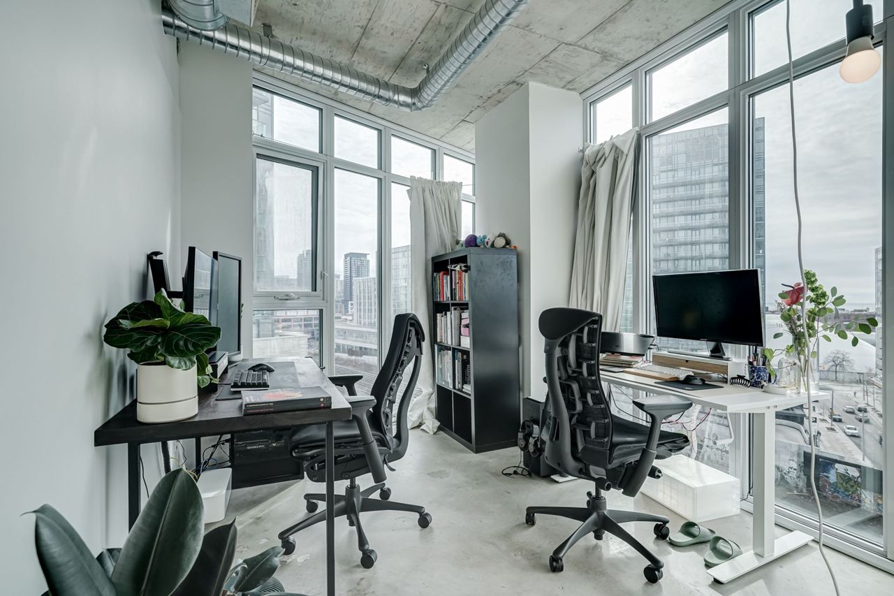 Queen West Loft Living At Its Best. Beautiful 2 Bed/2 Bath Corner Unit Overlooking The City w/ South Views. 950 Sf Of Functional Space, Polished Concrete Floors, Exposed 9 Ft Concrete Ceilings And Ductwork. Breathtaking Floor-To-Ceiling Windows Throughout. Abundance of natural light in every living space. Large Primary Bedroom W/ Walk-In Closet & Ensuite Shower. Modern Kitchen W/ Stainless Steel Appliances, Stone Counters, Tiled Backsplash, And Spacious Breakfast Bar. One Underground Parking Included.Amenities: Guest Suites, Gym, Indoor Pool, Party Rm, Visitor Parking. Close Proximity To Queen West Shopping, Ossington Eats, Drake Hotel, Liberty Village, Queen Streetcar, And Much More.