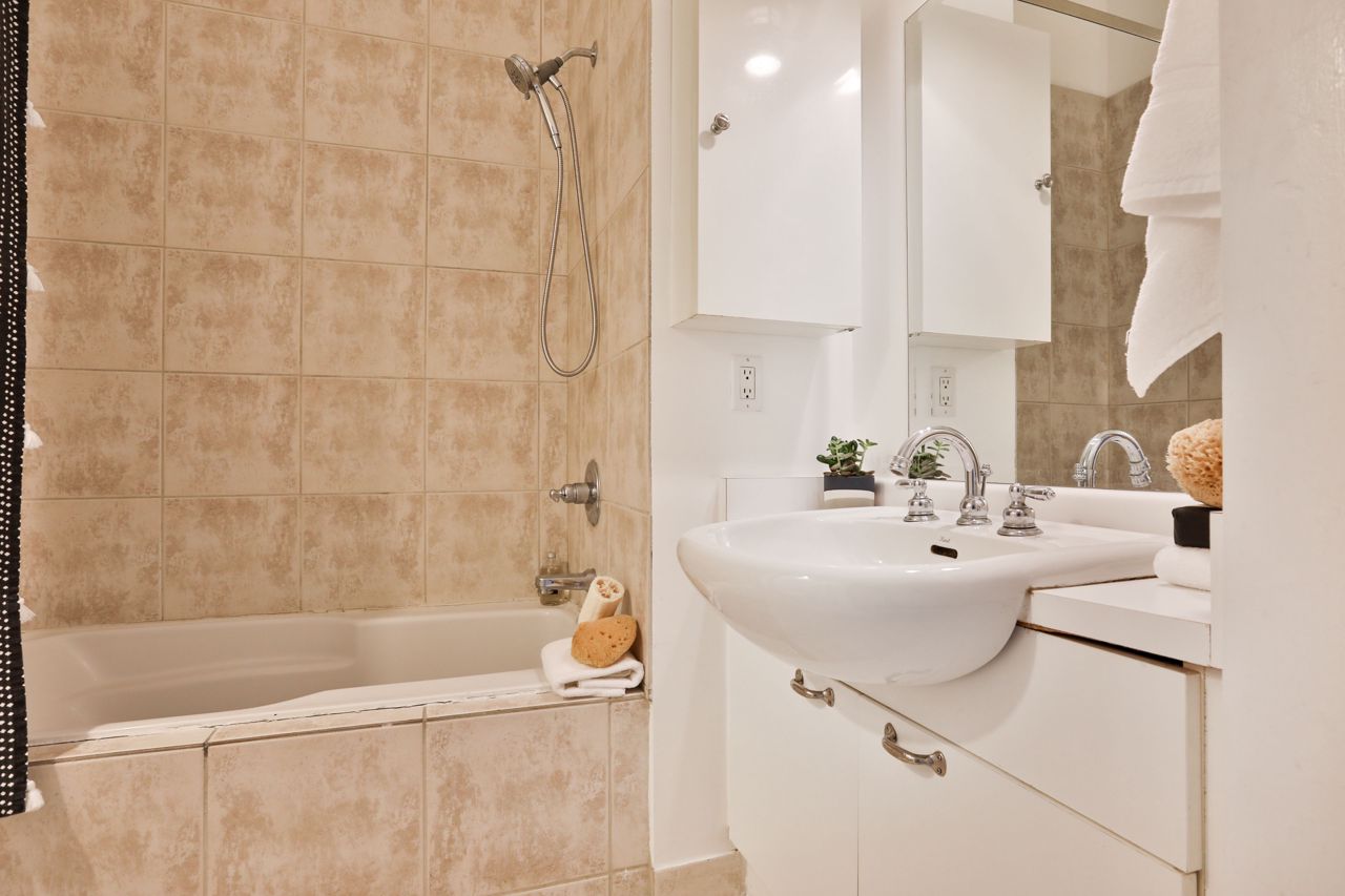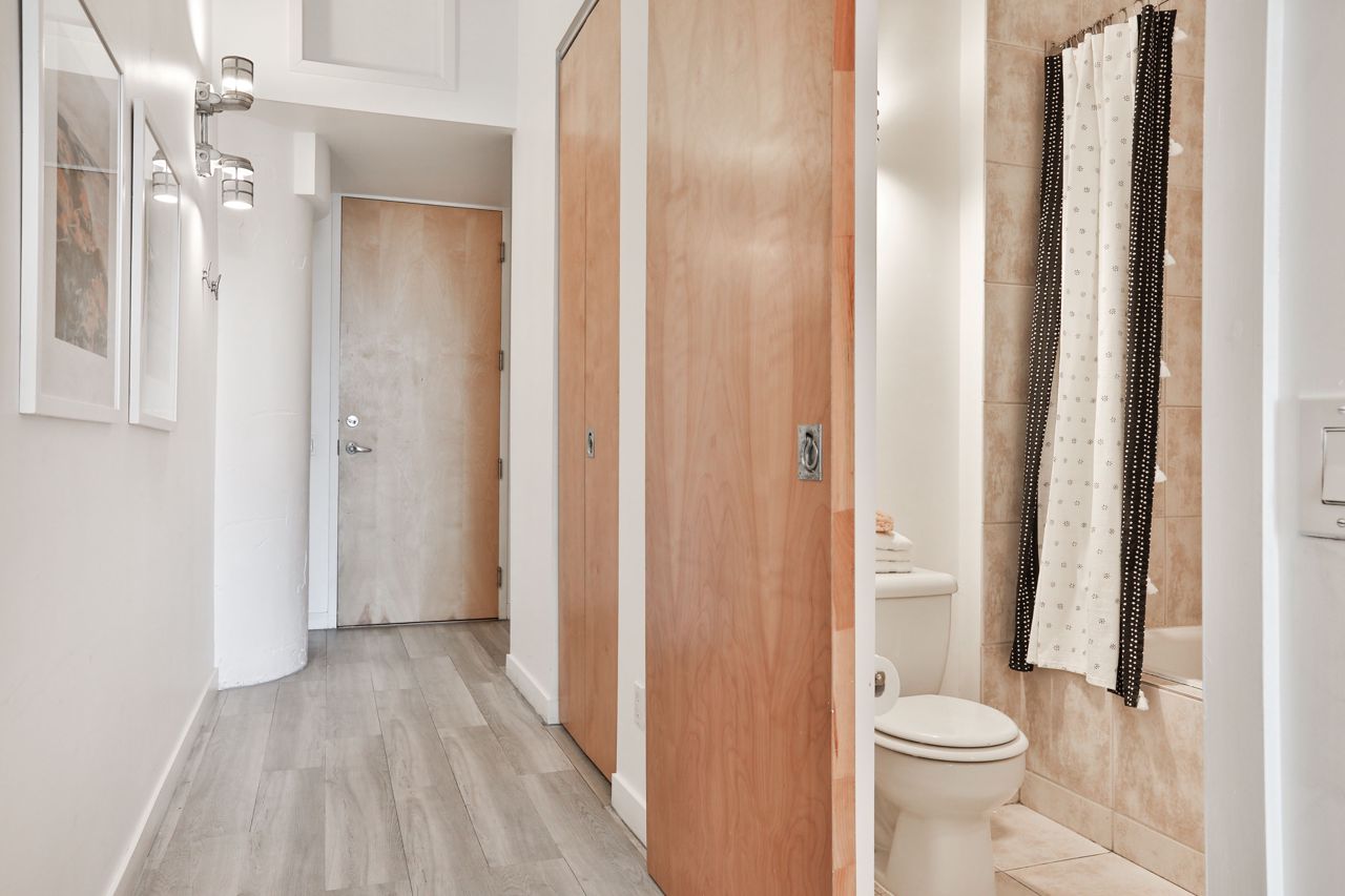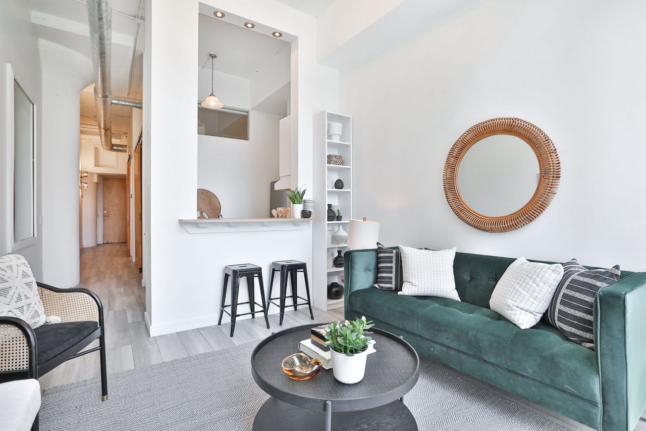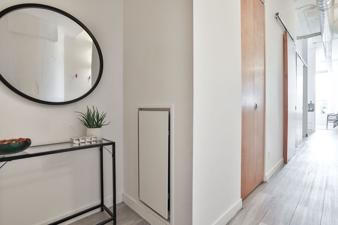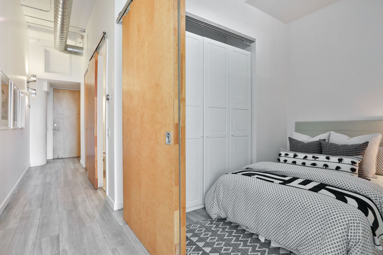 Welcome to this authentic 1 bedroom hard loft at the Merchandise Building Lofts! This landmark heritage building is superbly located in the "heart of the city", steps to shops, restaurants, TTC & Toronto Metropolitan University. Suite 444 is an exceptionally bright 1 bedroom, 1 bathroom suite featuring soaring 12ft ceilings, exposed ductwork & huge east-facing loft-style windows. The updated kitchen has a large pass- thru to the living room with a breakfast bar, stainless steel appliances & granite countertops. 8ft solid Maple sliding doors thru-out. Great bedroom with closet. 4-piece bathroom with built-in vanity & soaker tub. Separate laundry closet. Impressive building amenities include: 24hr concierge, indoor pool, rooftop deck/garden, excellent gym, indoor basketball court...and more! Owned storage locker.*Electric range & dishwasher shown in pictures have been upgraded to newer stainless steel models. Polished concrete floor underneath existing flooring (not glued down). Metro grocery store conveniently located in the building.