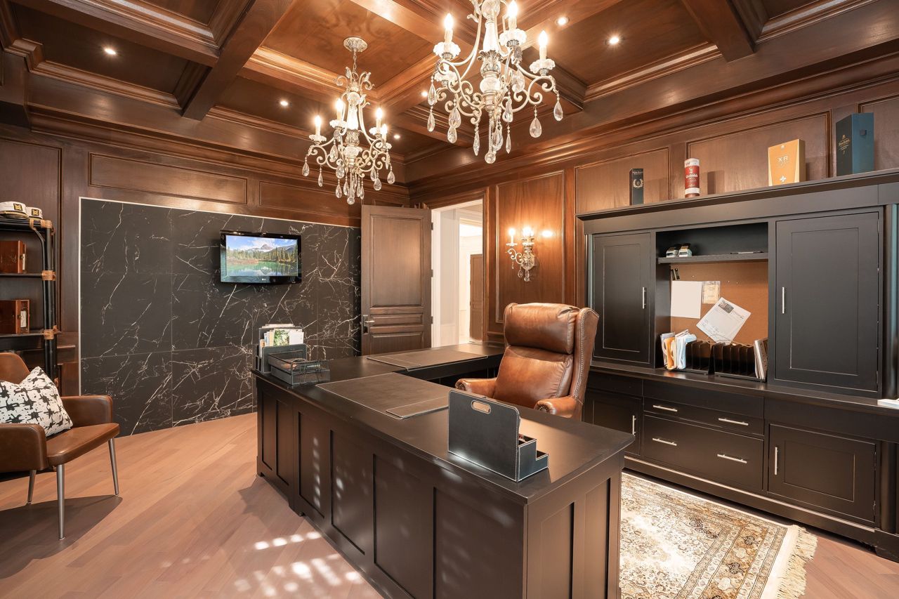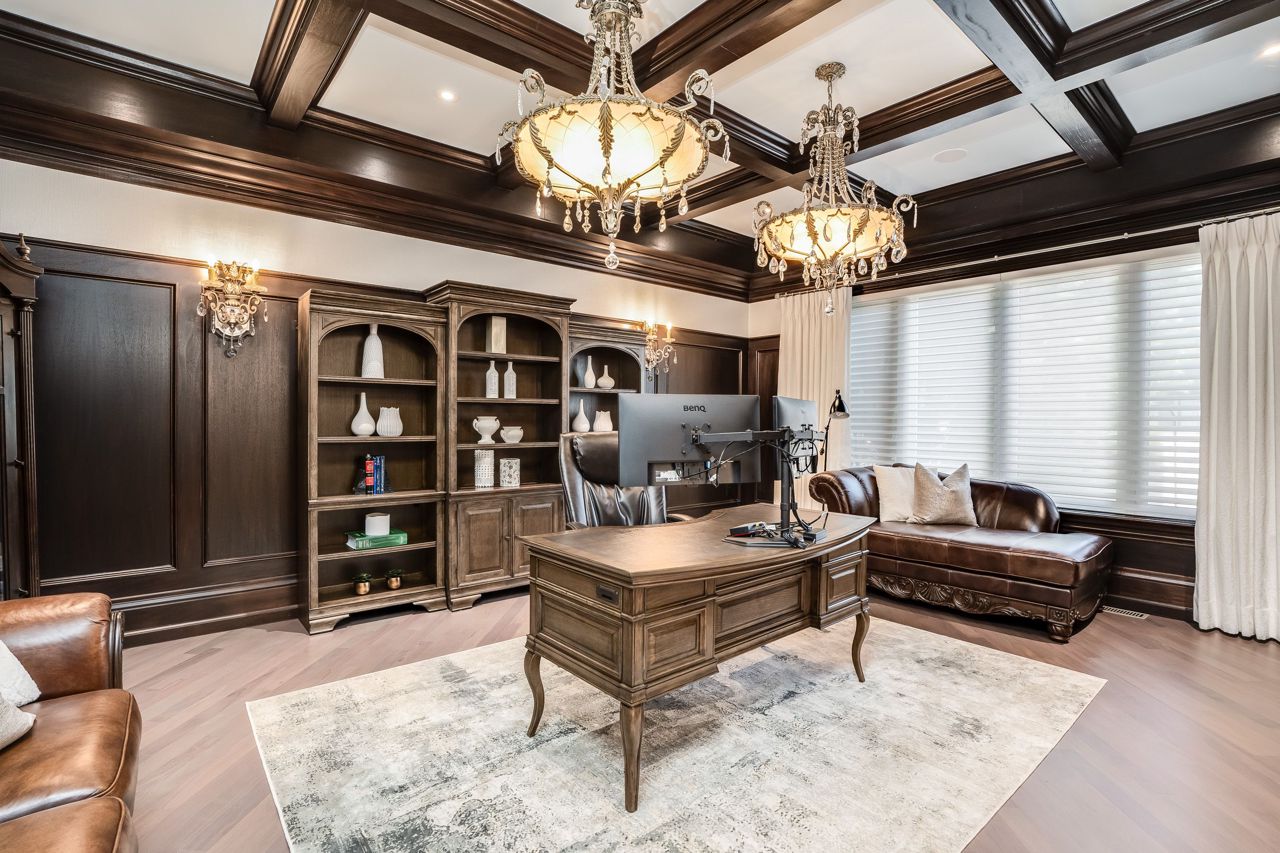 Built-In Speakers Coffered Ceiling Hardwood Floor