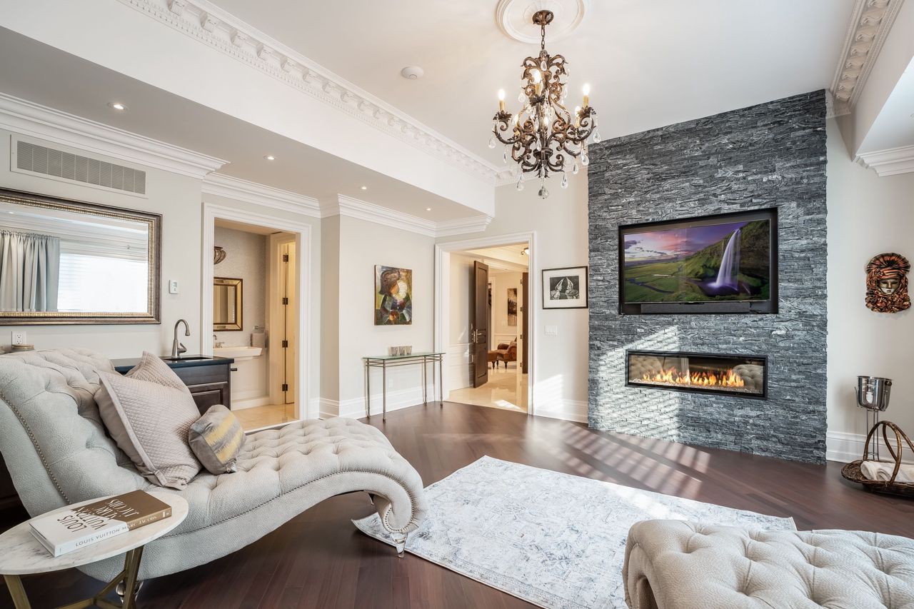 Gas Fireplace Built-In Speakers Hardwood Floor