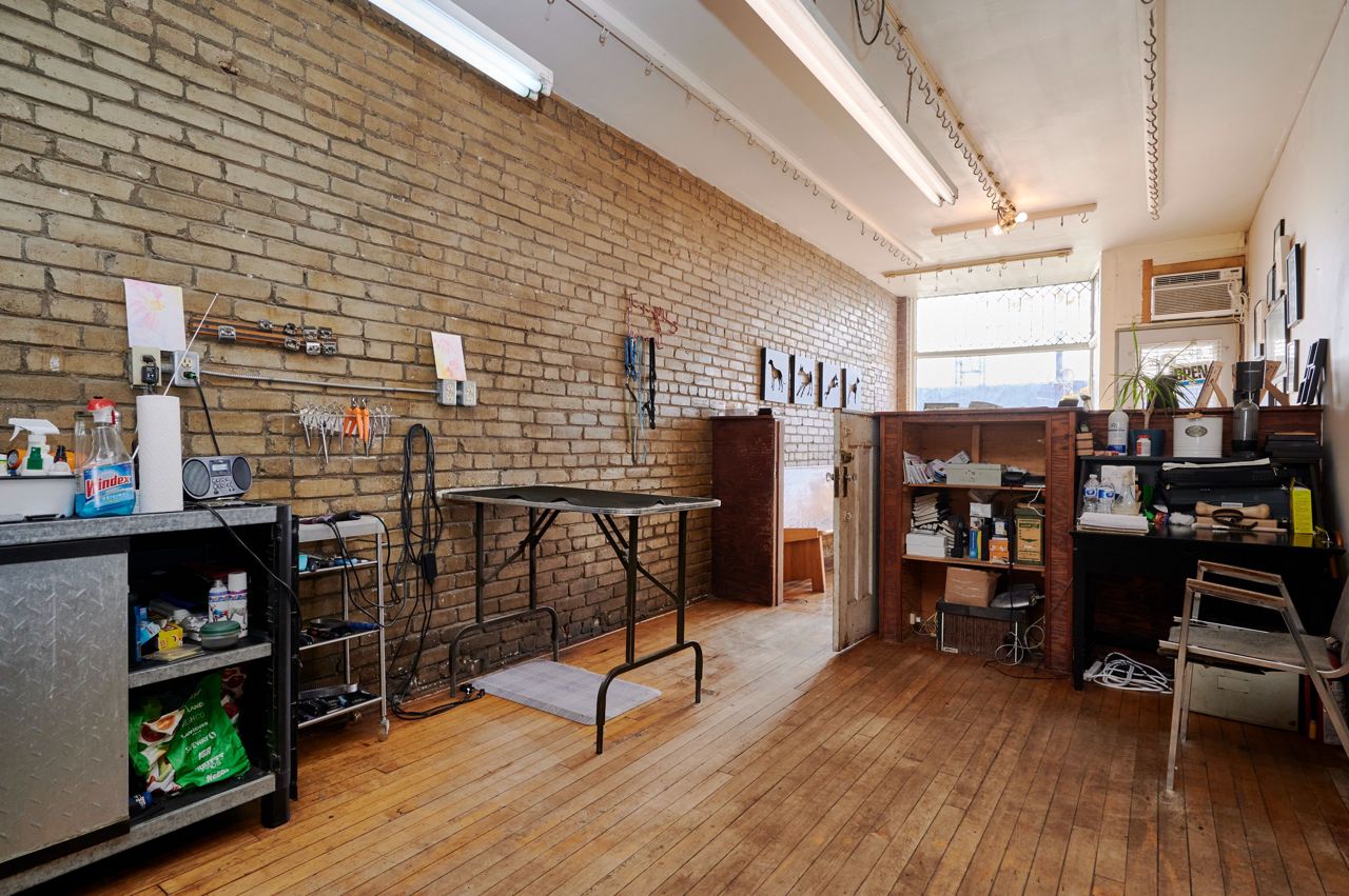 Excellent storefront with a funky two bedroom apartment on second level on prime Queen Street location in pocket between Leslieville and the Beaches. Vibrant retail area with brand new condo development being built directly across the street. Main floor retail area is about 600 square feet. Many commercial/retail uses allowed - it is currently being used as a dog grooming business. Upper apartment has an addition and is about 900 square feet and has lots of exposed brick, skylight in bathroom, access to outdoor space. Great live/work opportunity or assume tenant ($2,100 per month on month to month lease) Laneway access to one parking spot. Buyer to do their own due diligence on uses allowed within zoning bylaw.