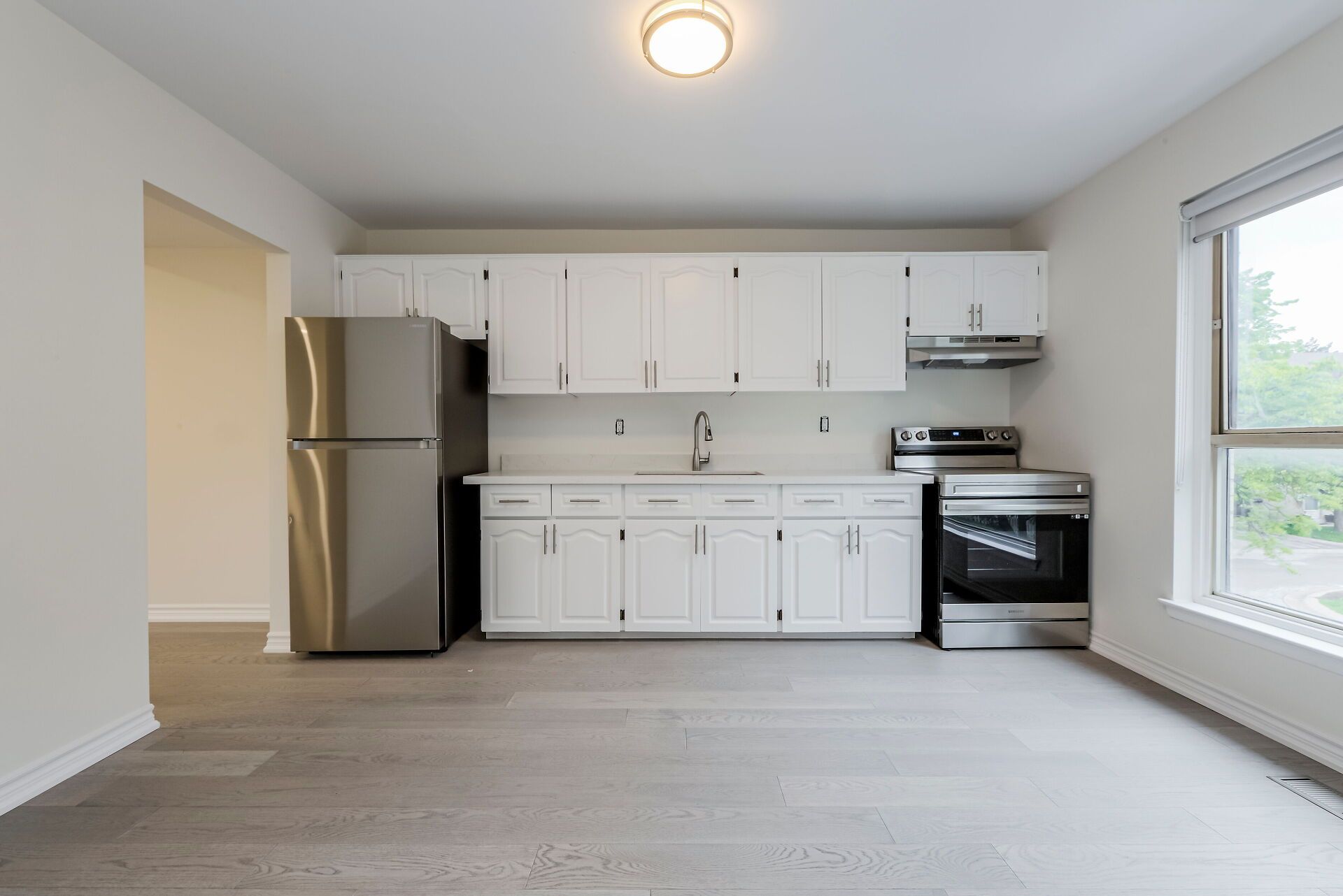 Hardwood Floor Stainless Steel Appl Quartz Counter