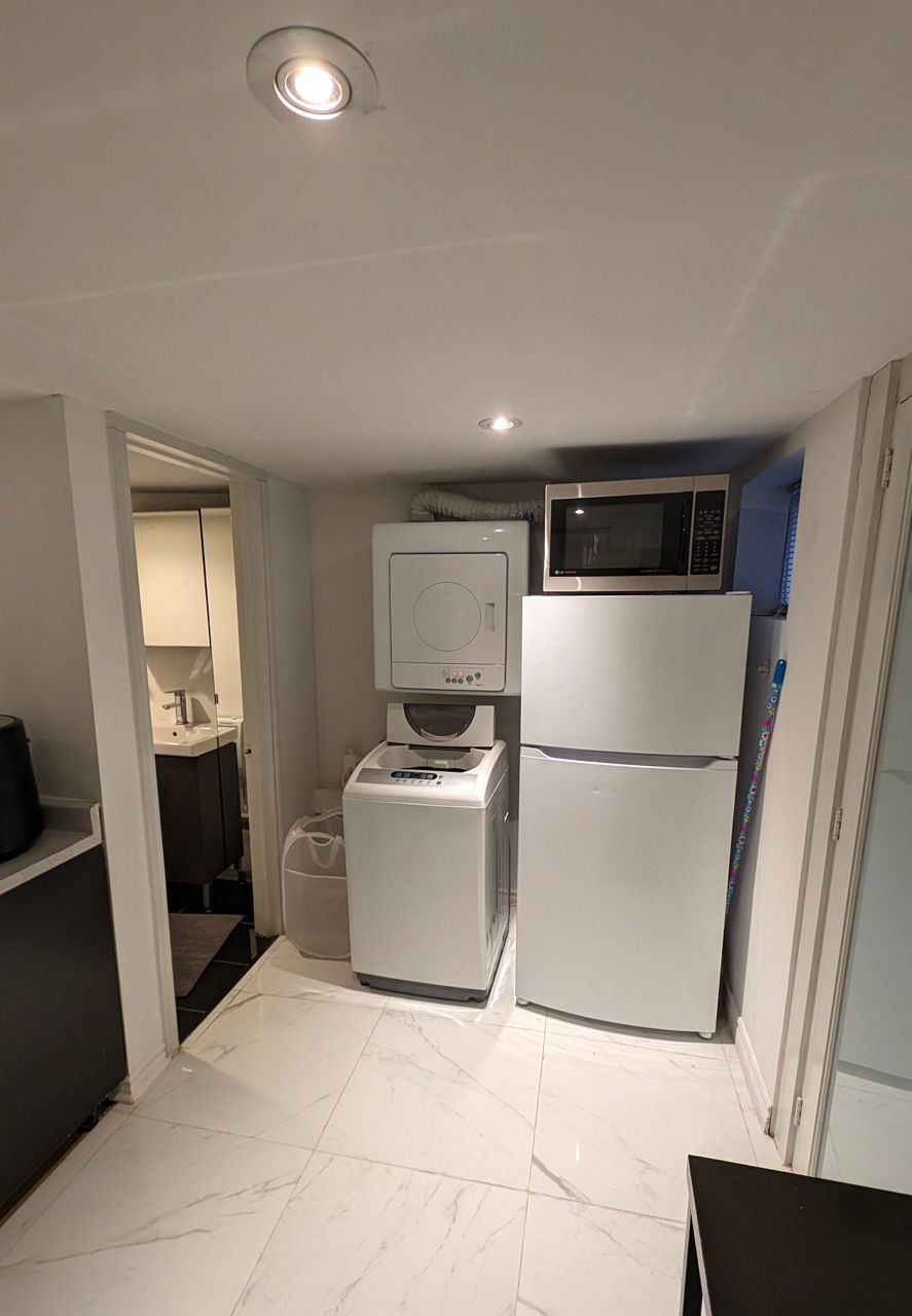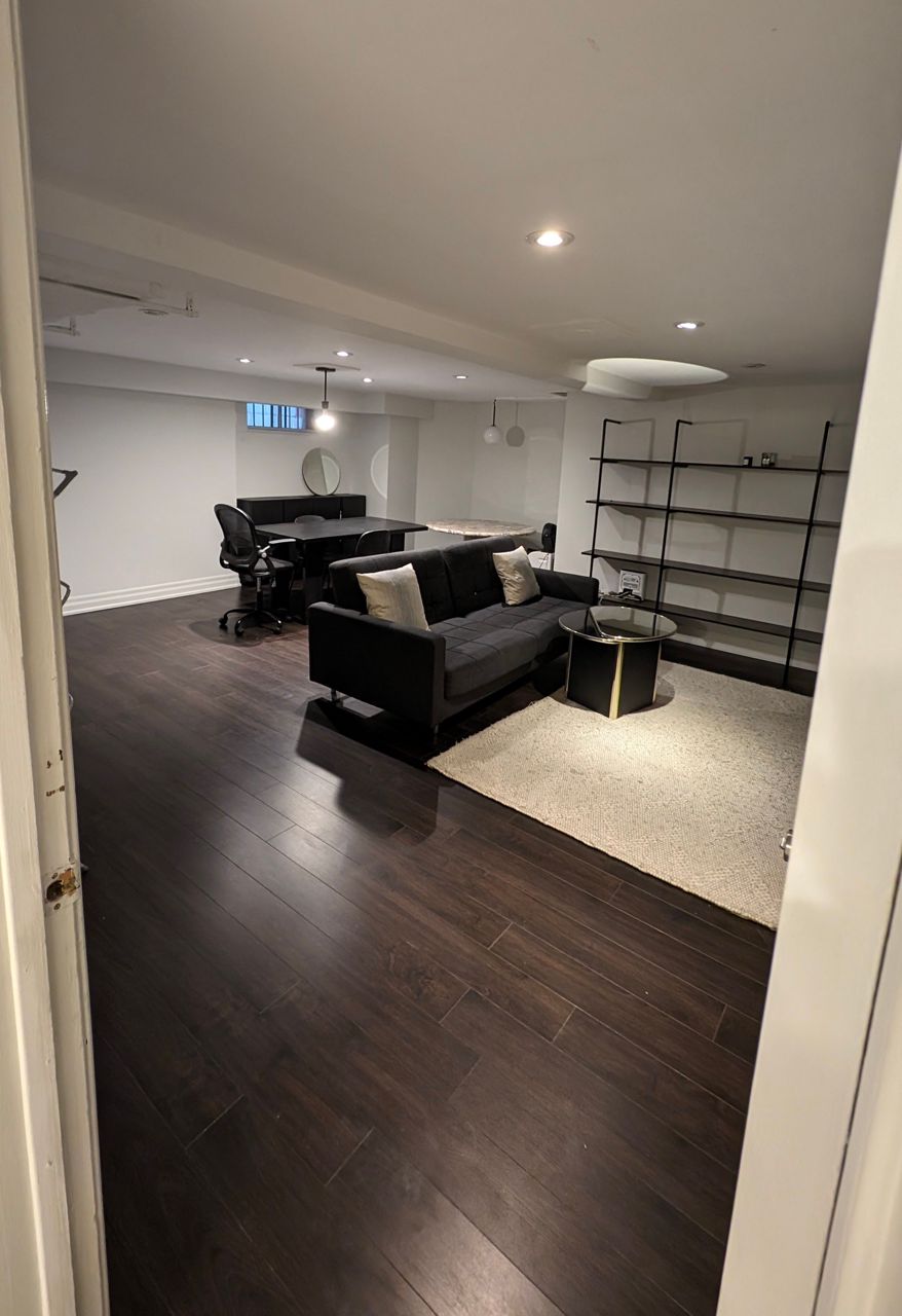 Spacious basement apartment (Furnished), Amazing Location. (Queen And Jameson) 2 Bedroom, 1 Bathroom, Open Concept Living and Dining, Decent Sized Tandem Bdrms, Steps To Roncesvalles, Kitchen- Washer/Dryer. Rec Center and Arena, Steps to Queen and Dundas West, No Frills, Ttc, Coffee Shops .Fridge, Cook top, air fryer Microwave, Washer and Dryer, TV, all existing furniture
