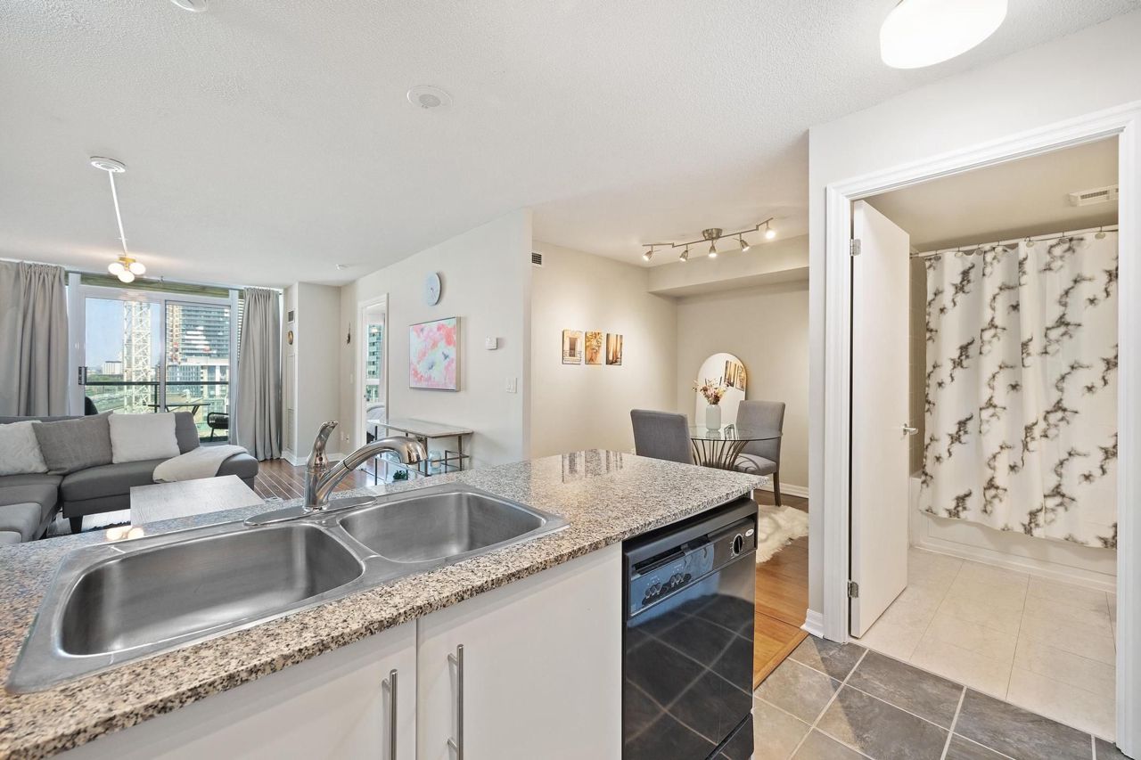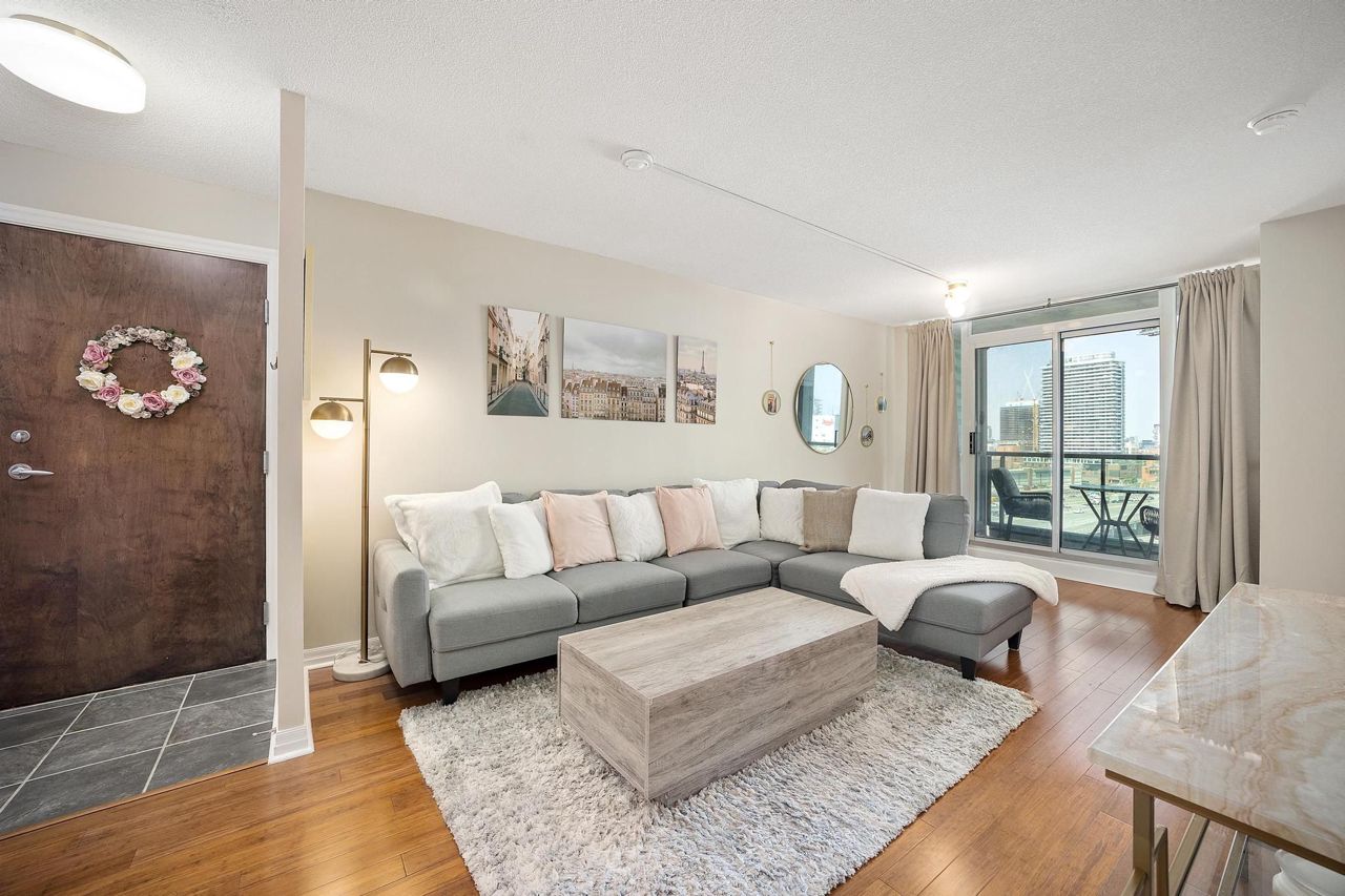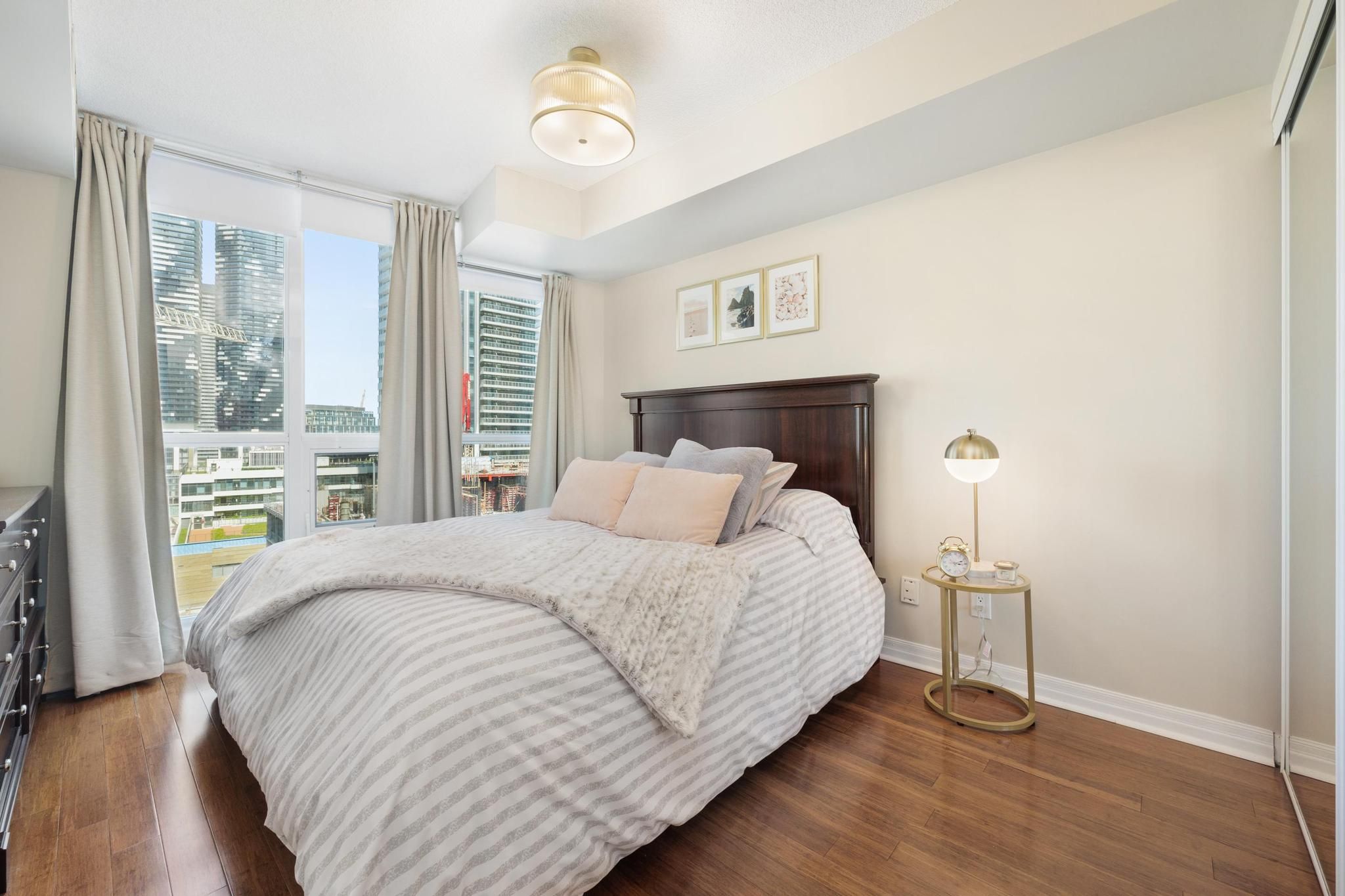 Welcome to Pinnacle Condominiums! This One Bedroom Plus Den Unit with Two Full Washrooms Features Sun-Filled East Exposure. Den Can Be Home Office or 2nd Bedroom. Owner Occupied Unit and Maintained With Engineered Hardwood Flooring Throughout. Upgraded Modern Light Fixtures. Move in ready! Steps To The Lake, CN Tower, Ripley’s Aquarium, Rogers Centre, Scotiabank Arena, Union Station, UP Express Train, Underground PATH, The St. Lawrence Market, The Financial & Entertainment Districts. Maintenance Fee Includes All Utilities (Water, Hydro, Heat, Cac, and 1 Parking). Building Amenities featuring fitness/weight areas, billiards, games, party, theatre and business centre rooms with internet lounge. Squash courts, indoor lap pool, dry sauna, steam room and Jacuzzis with an outdoor tanning deck, putting green, barbecue’s and tennis/basketball court, library. Beanfield low cost/high-speed fibre internet, tv and home phone availableAll existing appliances: Fridge, Stove, Dishwasher, Microwave, Stacked Dryer/Washer. Existing Light Fixtures and Window Coverings