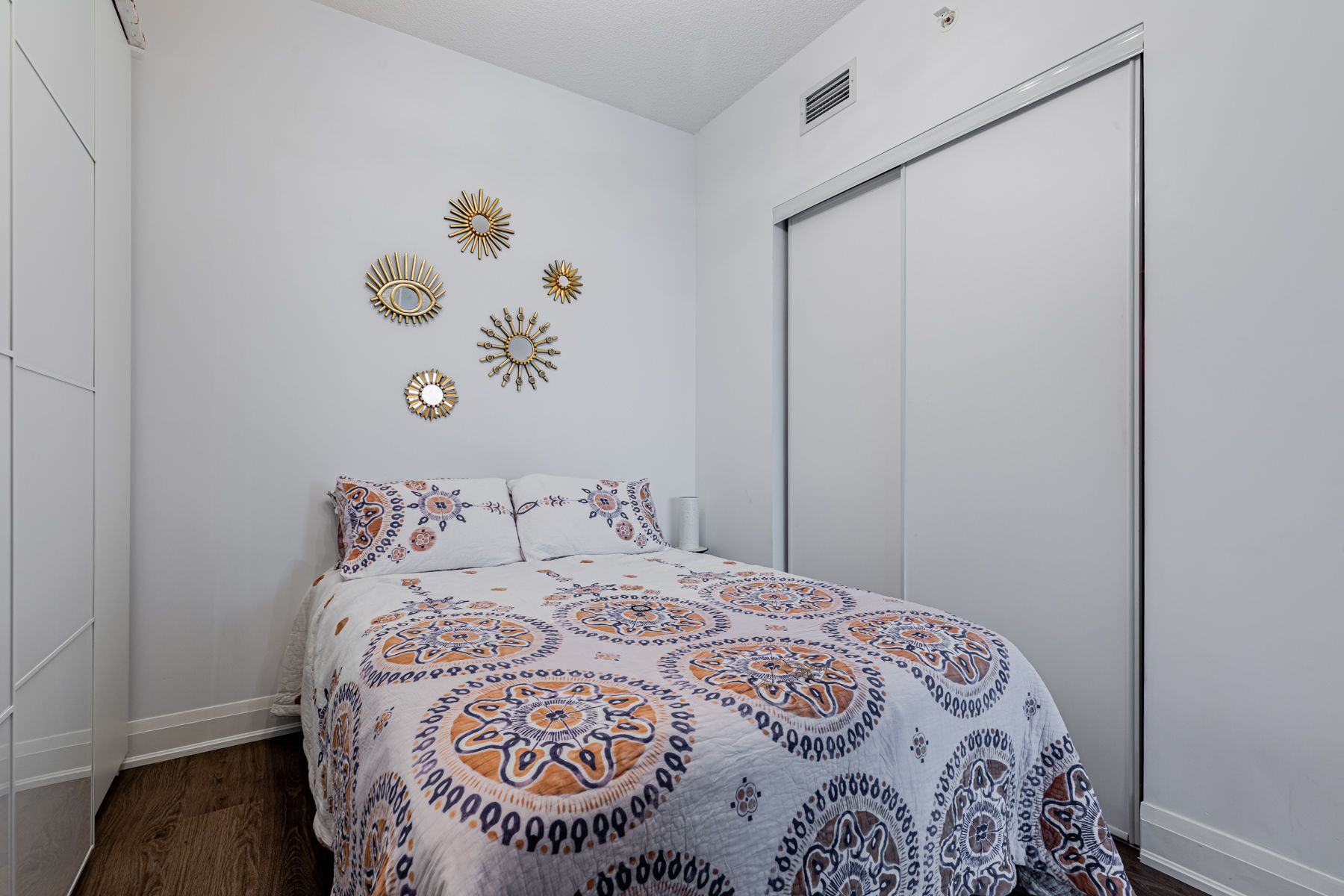 Welcome to the highly sought-after neighbourhood of Leaside! This remarkable condo is nestled in the scenic 3 community by Aspen Ridge. Fantastic Layout Allow's For Multiple Furniture Configurations To Suit Your Needs. Plenty of Upgrades Include: B/I Wall-to-Wall Storage Unit, Additional Cabinets, Remote Controlled Blinds, Electric Light Fixtures & More. Situated in a private setting, this unit offers a private panoramic view from its balcony, which overlooks a tranquil treed ravine and park. floor-to-ceiling windows that capitalize on natural light, creating an inviting and airy atmosphere. The 9-foot ceilings add to the overall sense of spaciousness. Located just steps away from the LRT & transit, you'll enjoy a short and convenient commute to downtown. Indoor Pool, Concierge, Patio & B.B.Q.'s, Large Gym, Visitor Parking, Guest Suites, Media/Theatre Room, Yoga, Billards & Party Room, Sauna.Convenience is at your fingertips, as this residence is conveniently located near all amenities. Whether you're looking for shopping, dining, entertainment, or recreational activities, everything you need is within easy reach.