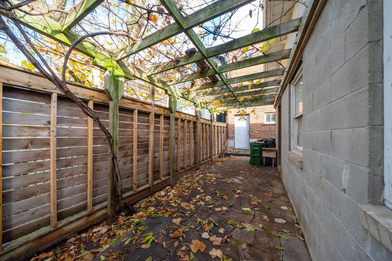 Brick Detached 2 Storey, 3 Bedrooms, 4 Baths With 1.5 Oversized Garage. Home Offers Hrdwd Flrs on 1st & 2nd Flrs, With Ceramic Flr In Basement, Baths & Main Flr Kitchen, 2 Wood Burning Fireplaces, Open Concept Main Flr, Lrge Primary Bdrm With 4pce Ensuite. Separate Back Door To Basement & Backyard. Backyard Features A Flagstone Patio With Pergola. Close to Schools, TTC, Shops, Restaurants & Entertainment. Photos Virtually Staged. Buyer must assume existing encroachment agreement with City of Toronto.