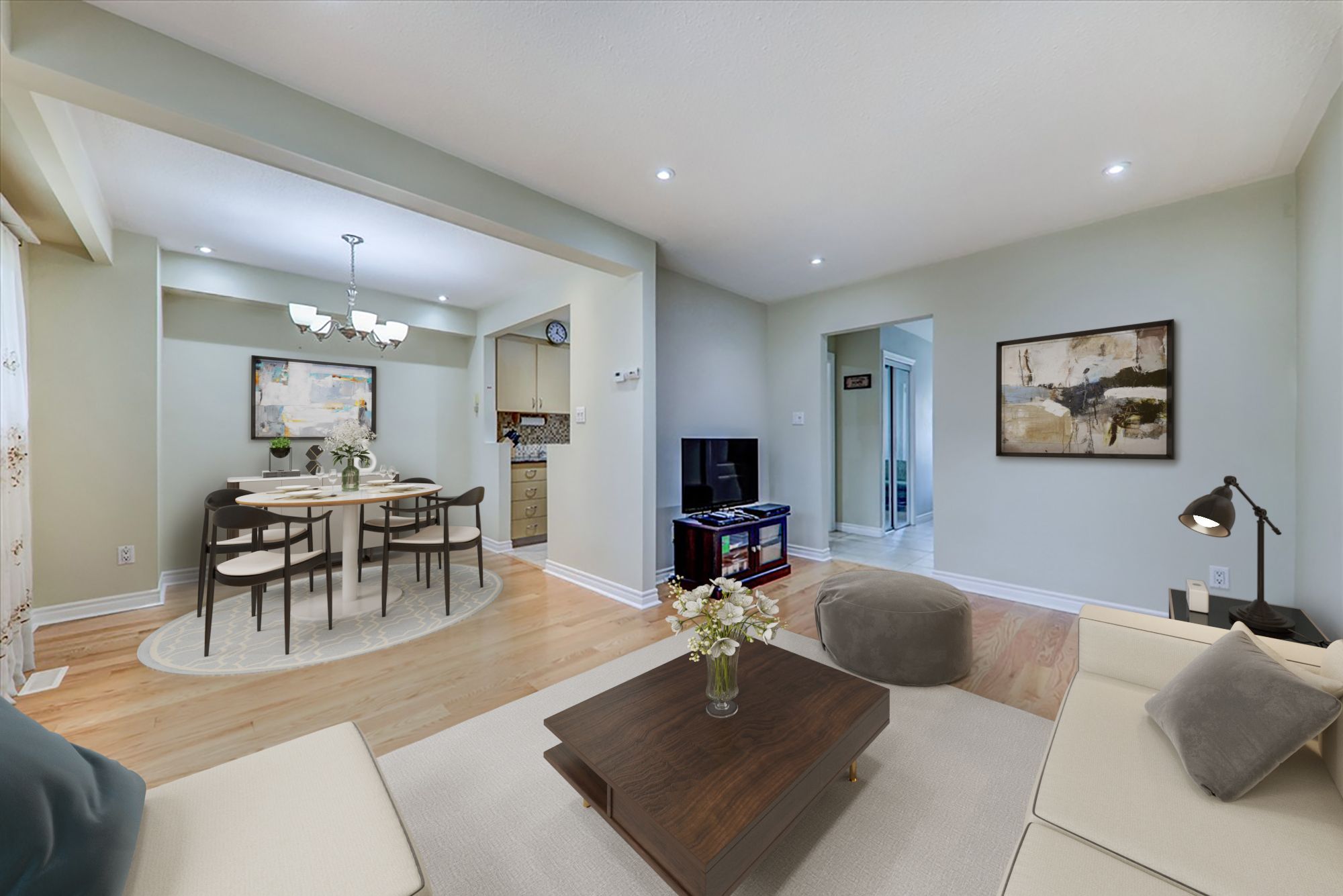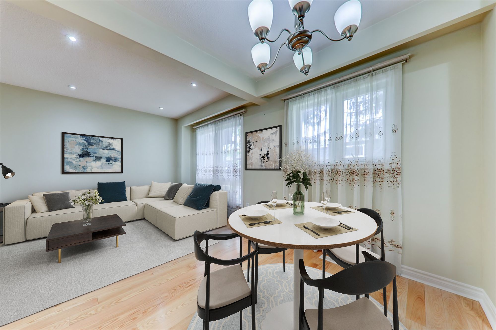 Layout, Walk Out To Basement With Fireplace & Huge Laundry Room, Combined Living Room And Dining Room, Hardwood Floor Throughout The Main And The Second Floor Prime Location Close To Great Schools, Parks, Restaurants, All Amenities & Easy Access To Hwy 401 For Commute. Move-In Condition.Fridges, Stove, Range Hood, B/I Dish washer, Washer And Dryer, All Elf, All Window Covering, Free Internet & Low Maintenance fee.