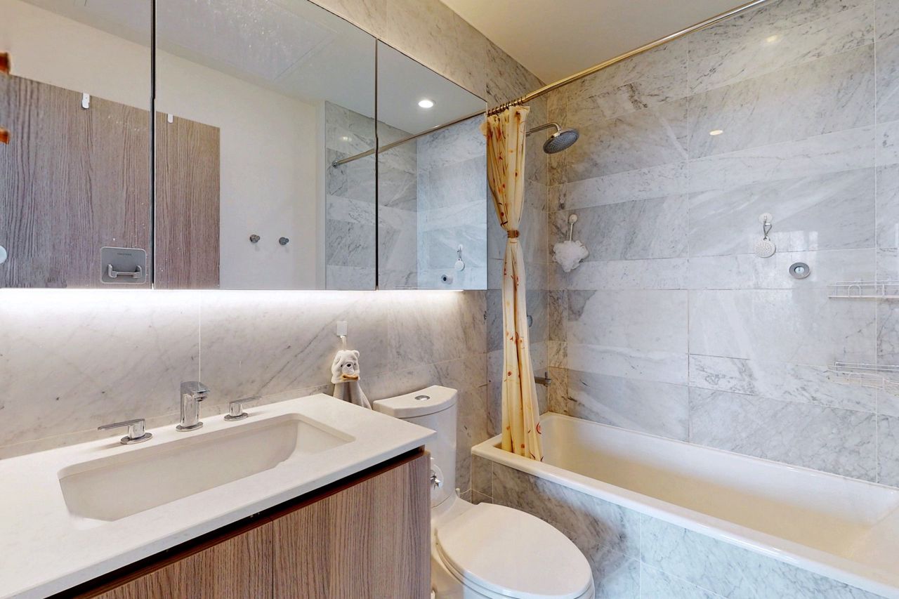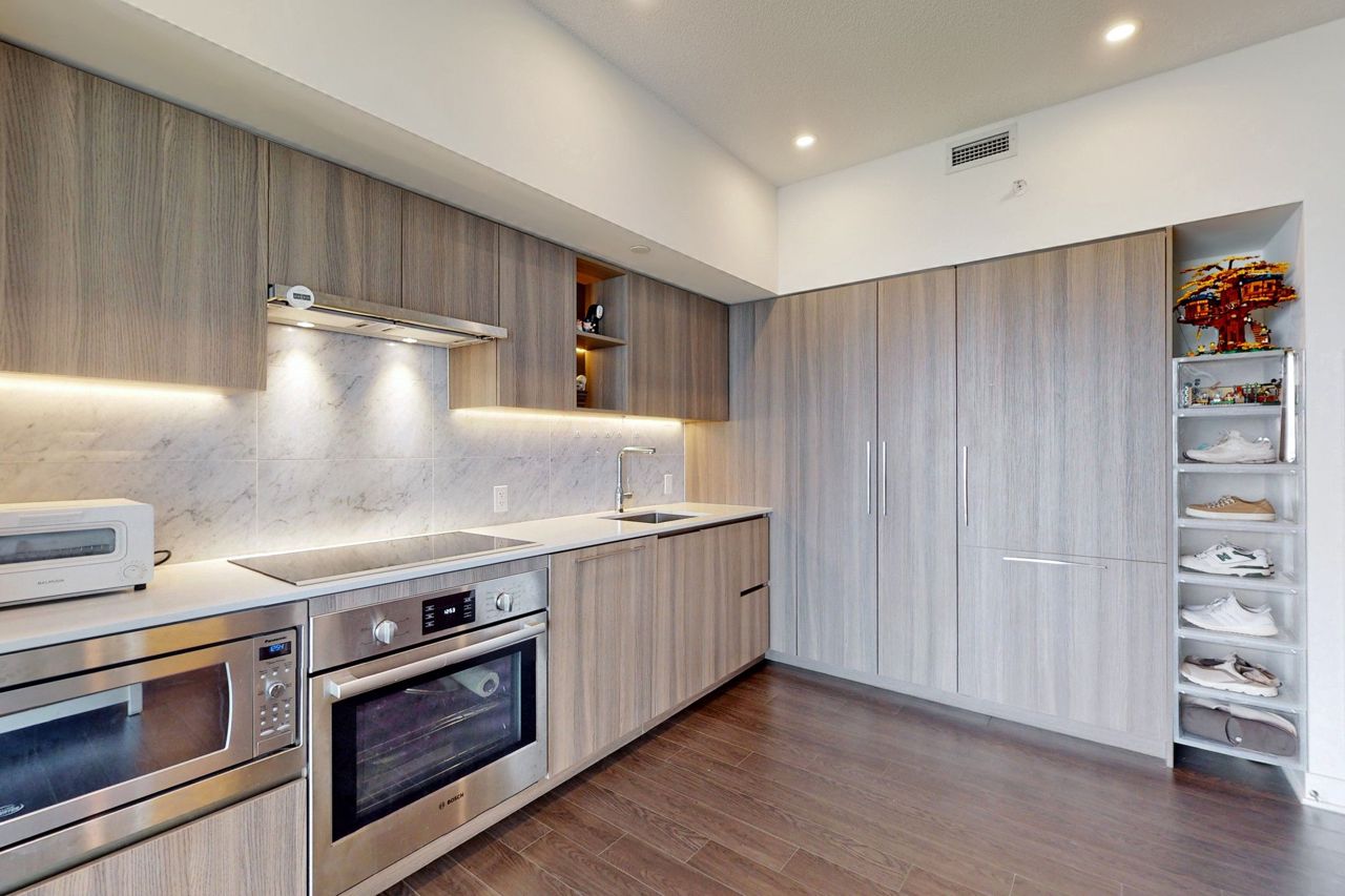 Fabulous 3 Bedroom Unit With South Unobstructed Lake View On High Floor! Elegant Marble Bathroom, Modern Open Concept Kitchen & Dining W/Practical Built-In Storage. 9 Ft Ceiling With Plenty Of Pot Lights. Interior 868Sf + 150Sf Balcony. Over 23,000 SqFt Of Hotel-Style Amenities. Loblaws Flagship Store, Shoppers Drug Mart, Joe Fresh, LCBO & More Retails Offered In The Same Courtyard! Steps To The Lake, Restaurants, Shopping, Entertainment, Parks, Schools, Sports Arenas & More! Easy Access To Hwy/TTC, Move And Enjoy!Bosch Appliances (Fridge, Oven, Stove, Range Hood, Dishwasher );Blomberg Washer & Dryer; Roller Shade Window