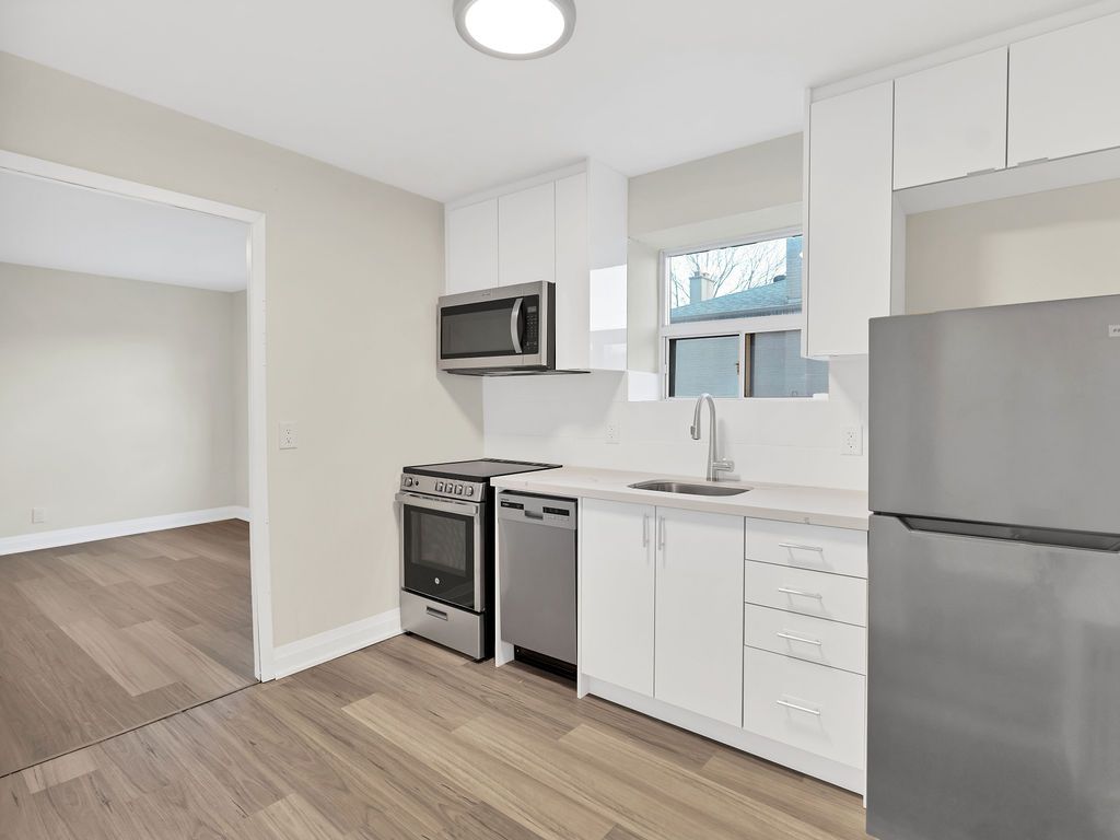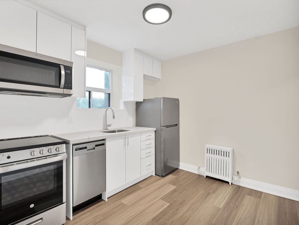 Two Months Rent Free On A One Year Lease Equivalent to $1,912/Month!!! Actual rental rate is $2,295/Month. Newly renovated and spacious one bedroom apartment located in Scarborough! Close proximity to Lake Ontario and nearby parks. One minute walk to nearby TTC. Heat, Water and Hydro are included in the monthly rent. Students and newcomers Welcome!Including Fridge, Dishwasher, Stove, And Over-The-Range Convection Microwave Oven. Parking For An Extra $125/Month. Laundry room located beside the unit.