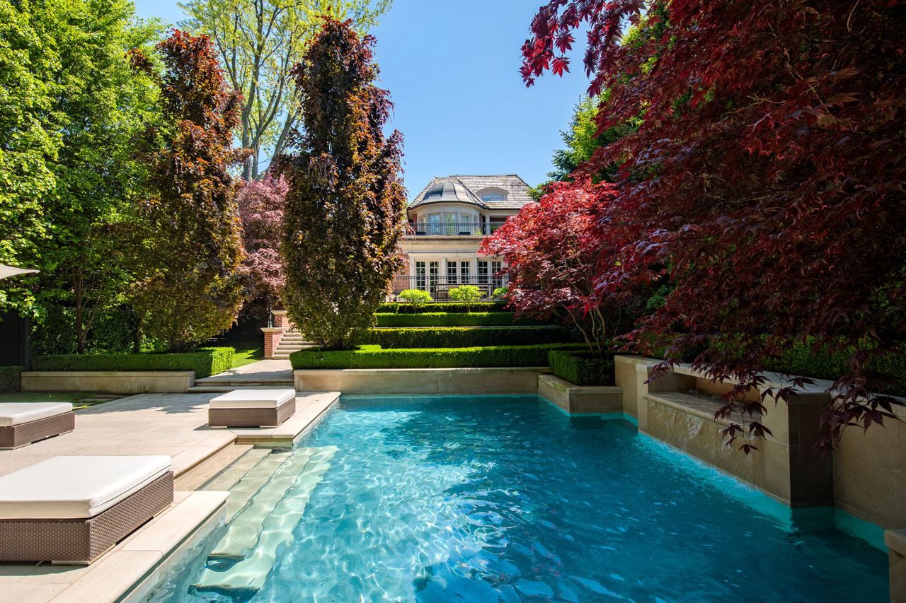 Heated garages, Heated driveways2 garages (2 car & 3 car). Enchanting gardens & sparkling pool beneath canopy of mature trees.