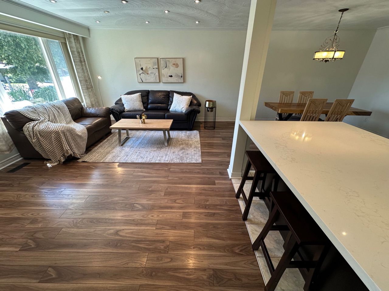 欲速售 !!! 美丽的半独立式抬高平房,拥有超大面积的土地(门 frontage 宽 35 英尺)。 拥有 4 车位停车(1 车库 + 3 车道)。 更新过的开放式厨房,配有超大中岛台面 & 全新石英台面 + 新型下沉式水槽。 主层配备升级的不锈钢电器。 白色橱柜配有 2 个下层橱柜的双层转盘。 主层和地下室区域配备升级的复合地板(屋内无地毯)。 主层配备升级的 5 件式卫生间(包括 2 个水槽、淋浴和按摩浴缸)。 客厅配有大窗户和升级窗户。 客厅配有电壁炉和石质装饰墙。 客厅和厨房配有升级的射灯。 主卧室配有扩展衣柜,开放式壁橱,从地板到天花板,配有镜子滑门。 地下室配有侧门独立入口。 地下室包括 3 卧室、2 卫生间和 1 个厨房。 地下室配有全套厨房,配有餐桌区域、玻璃顶电炉和 2 个冰箱。 地下室的一间卧室配有带 3 件式卫浴套间。 地下室卧室复合地板已做隔热处理。 美丽的后院景观,配有 2 个入口、2 个工具棚和一个带顶棚的凉亭(10 x 10 英尺)。 景观优美,有多年生植物,主入口处有红杉树,还有 2 棵日本枫树。 位于北约克市优越的地理位置。 靠近优秀学校,如 Zion Heights、AY Jackson 和 Steelesview 小学。