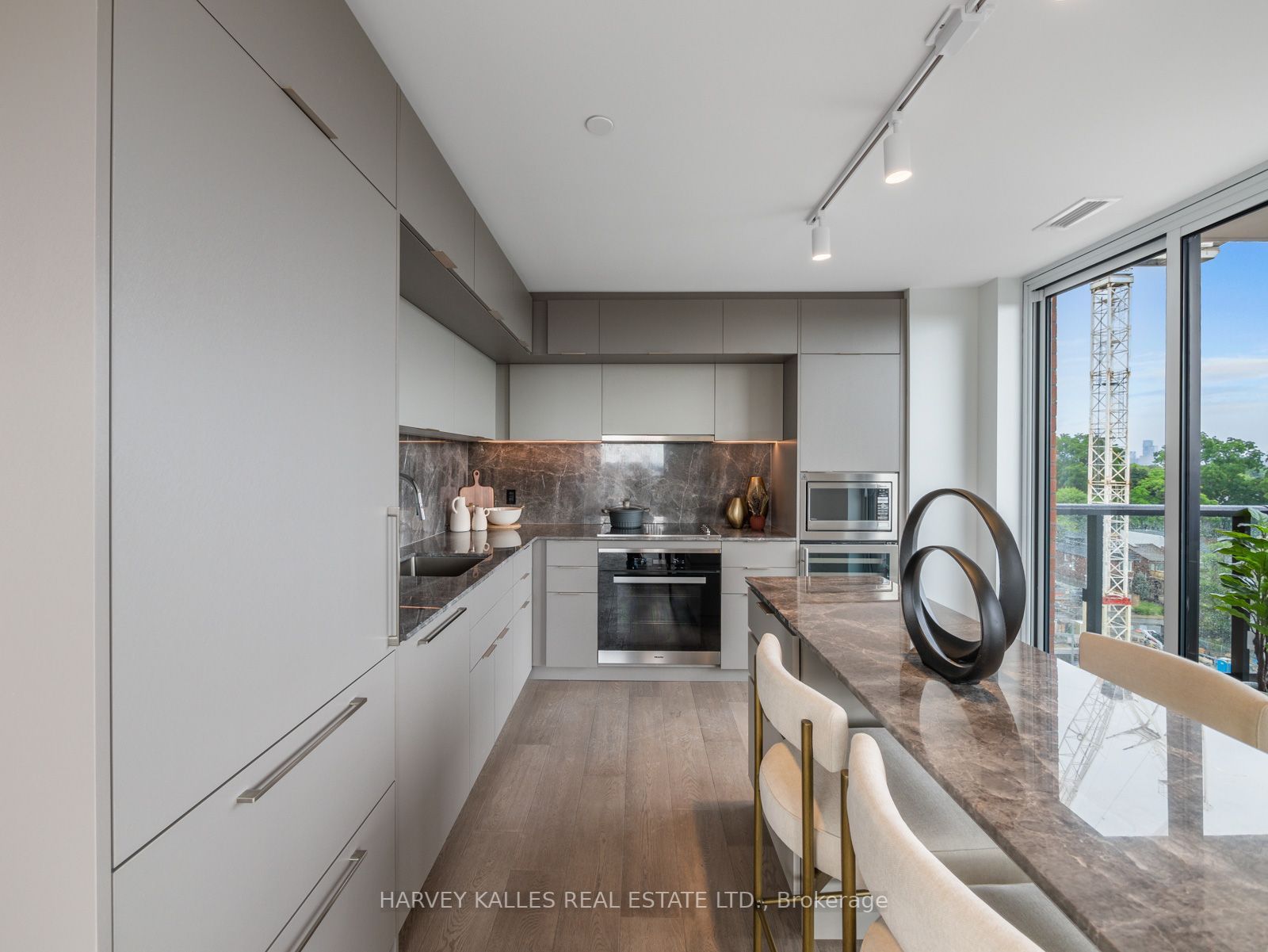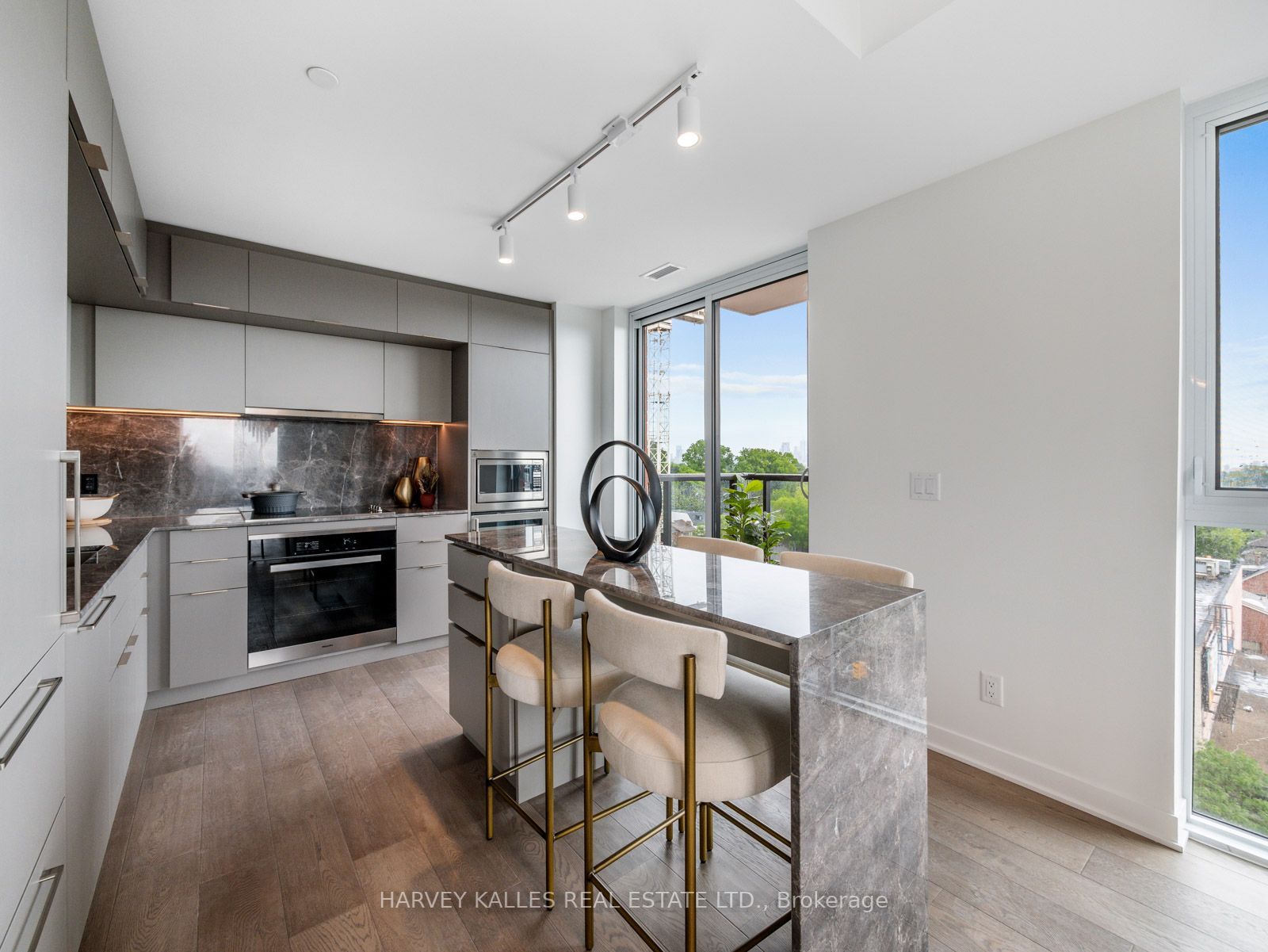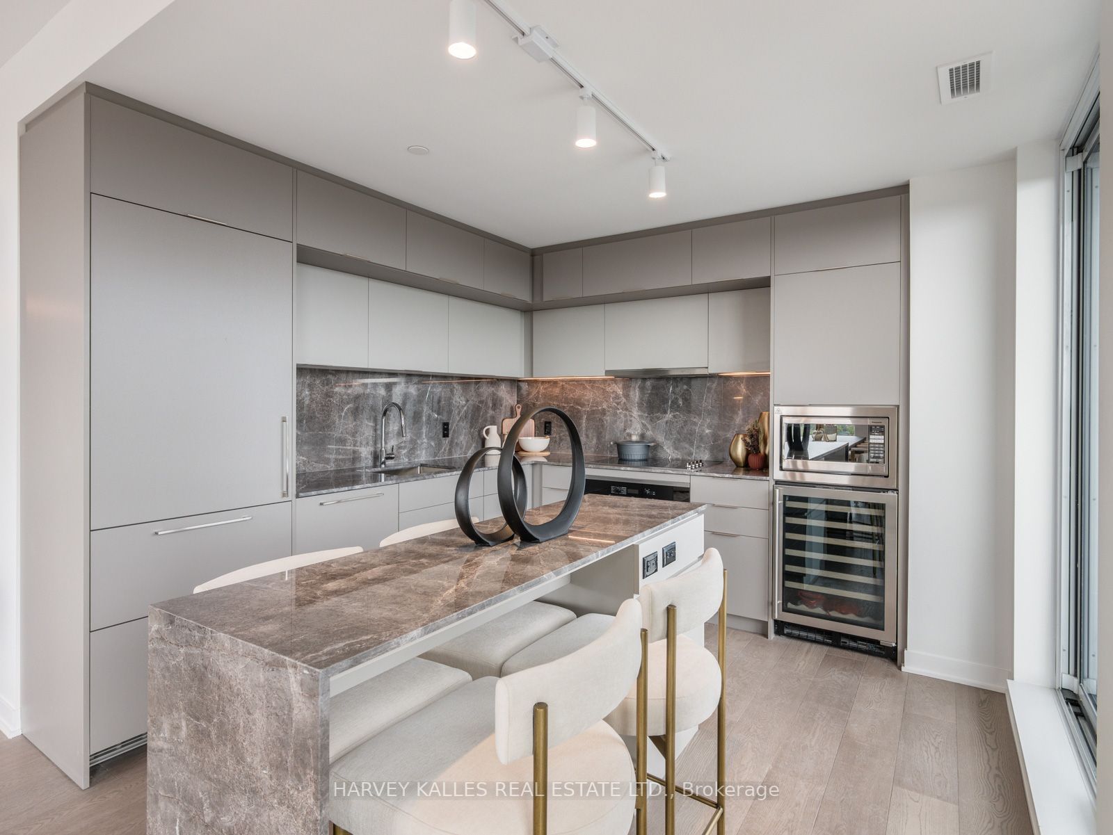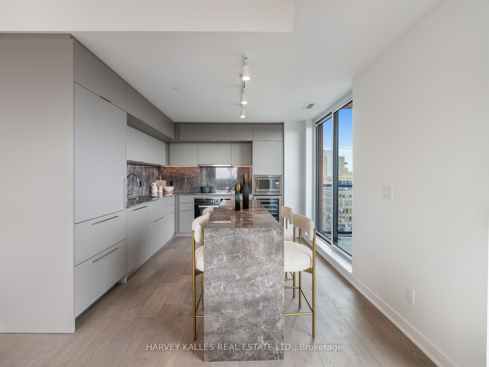 Enjoy Luxurious Living In The Heart Of Toronto. This Newly Built 3-Bedroom, 2-Bathroom Condo Boasts 9Ft Ceilings & Engineered Hardwood Flooring Throughout, Upgraded Marble Counters & Backsplash With Waterfall Breakfast Bar And Fabulous Views Of The City Skyline. Grab A Bottle From Your Wine Fridge And Enjoy A Glass While You Grill Your Dinner On One Of Two Private Balconies. The Gourmet Kitchen Features Miele Appliances, Custom Cabinetry As Island and Elegant Finishes That Will Make Any Chef Feel Right At Home. The Generous Living Space Provides Ample Room For Entertaining, Relaxing, And Everything In Between. Amenities Of This 12-Storey Boutique Building Include A Modern Style Fitness Centre, Elegant Wine and Co-Working Lounge, An Indoor Party Room And Outdoor Rooftop Terrace.High Demand Area Featuring Some Of The Best Coffee, Shopping, Restaurants In Toronto. TTC At Your Door. Images Are Of Staged Unit With Identical Layout. Limited Parking Spaces and Lockers Available At An Additional Cost. BBQs Allowed