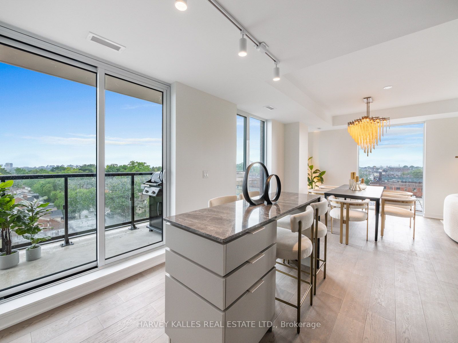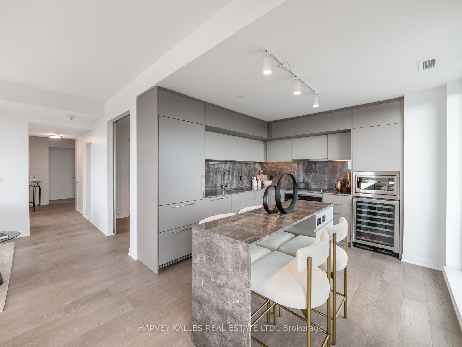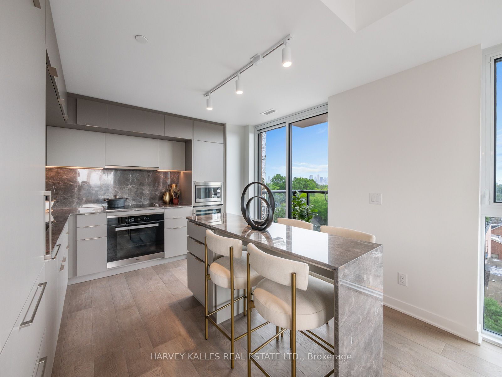 Enjoy Luxurious Living In The Heart Of Toronto. This Newly Built 3-Bedroom, 2-Bathroom Condo Boasts 9Ft Ceilings & Engineered Hardwood Flooring Throughout, Upgraded Marble Counters & Backsplash With Waterfall Breakfast Bar And Fabulous Views Of The City Skyline. Grab A Bottle From Your Wine Fridge And Enjoy A Glass While You Grill Your Dinner On One Of Two Private Balconies. The Gourmet Kitchen Features Miele Appliances, Custom Cabinetry As Island and Elegant Finishes That Will Make Any Chef Feel Right At Home. The Generous Living Space Provides Ample Room For Entertaining, Relaxing, And Everything In Between. Amenities Of This 12-Storey Boutique Building Include A Modern Style Fitness Centre, Elegant Wine and Co-Working Lounge, An Indoor Party Room And Outdoor Rooftop Terrace.High Demand Area Featuring Some Of The Best Coffee, Shopping, Restaurants In Toronto. TTC At Your Door. Images Are Of Staged Unit With Identical Layout. Limited Parking Spaces and Lockers Available At An Additional Cost. BBQs Allowed
