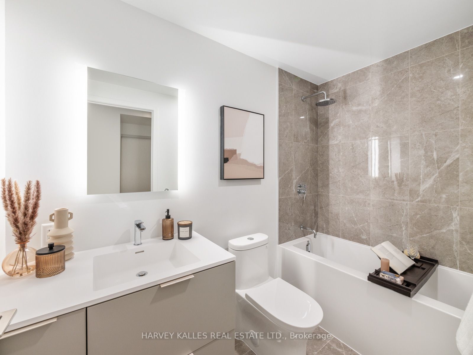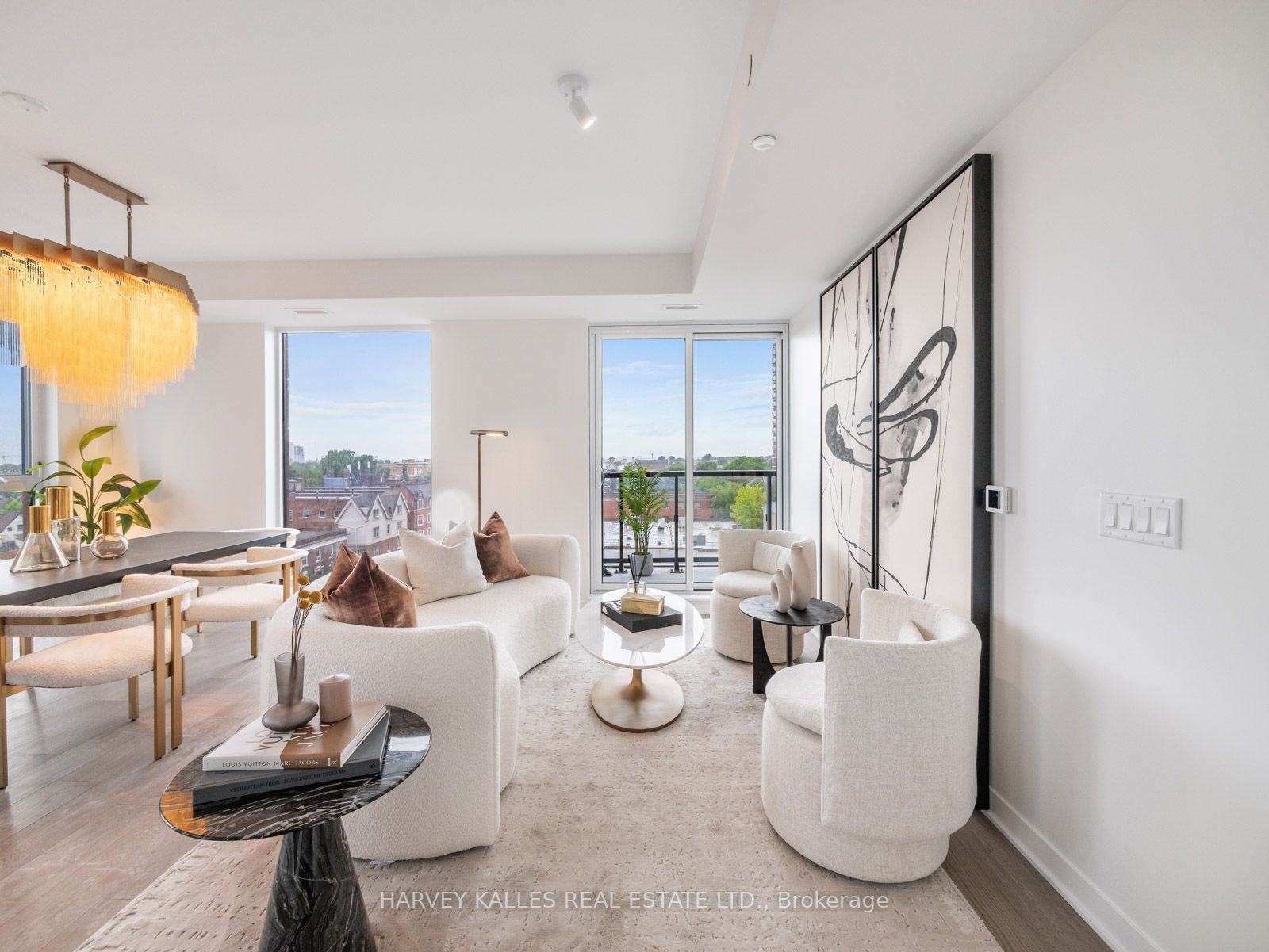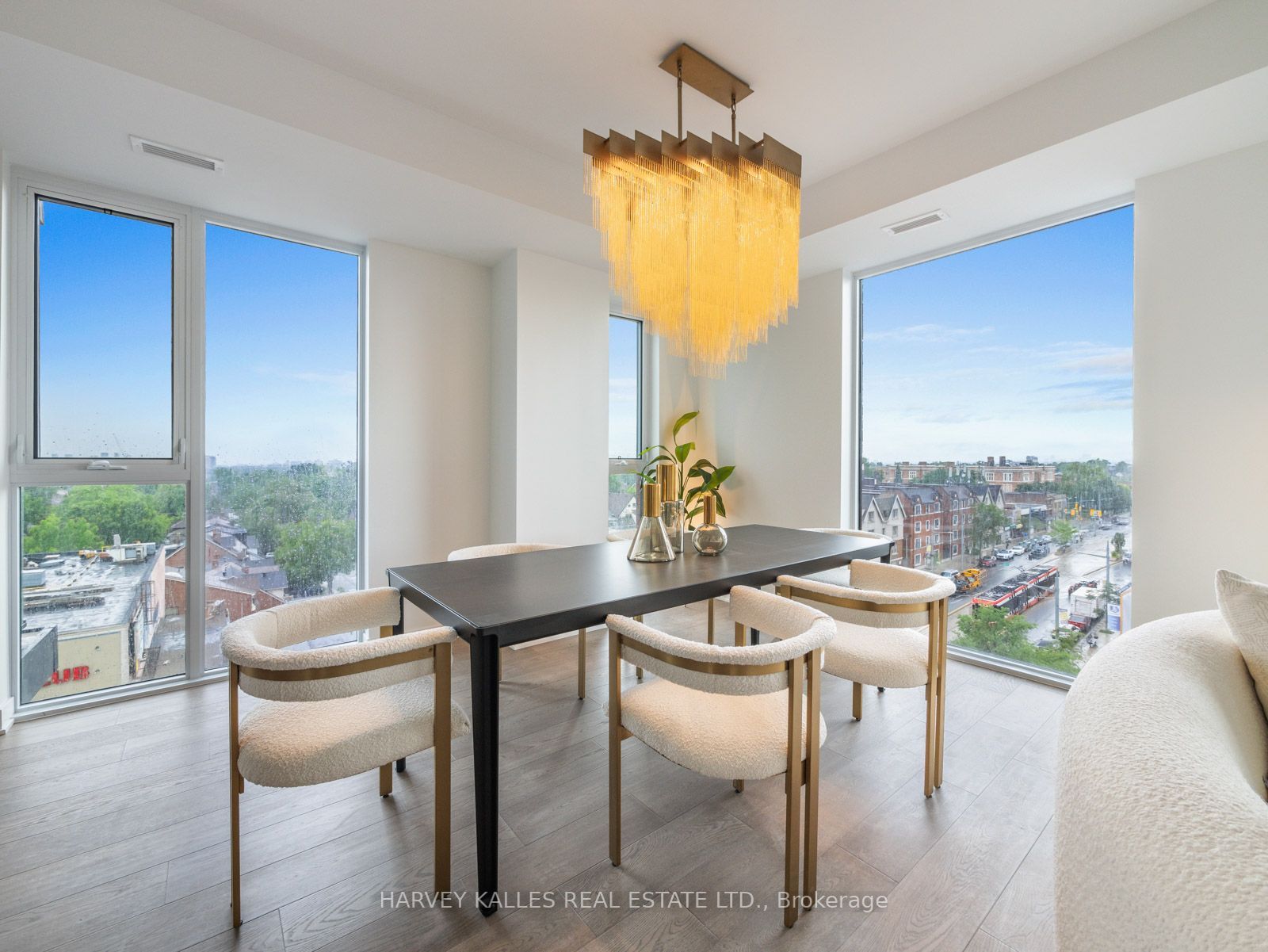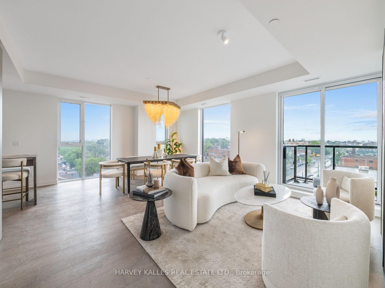 Enjoy Luxurious Living In The Heart Of Toronto. This Newly Built 3-Bedroom, 2-Bathroom Condo Boasts 9Ft Ceilings & Engineered Hardwood Flooring Throughout, Upgraded Marble Counters & Backsplash With Waterfall Breakfast Bar And Fabulous Views Of The City Skyline. Grab A Bottle From Your Wine Fridge And Enjoy A Glass While You Grill Your Dinner On One Of Two Private Balconies. The Gourmet Kitchen Features Miele Appliances, Custom Cabinetry As Island and Elegant Finishes That Will Make Any Chef Feel Right At Home. The Generous Living Space Provides Ample Room For Entertaining, Relaxing, And Everything In Between. Amenities Of This 12-Storey Boutique Building Include A Modern Style Fitness Centre, Elegant Wine and Co-Working Lounge, An Indoor Party Room And Outdoor Rooftop Terrace.High Demand Area Featuring Some Of The Best Coffee, Shopping, Restaurants In Toronto. TTC At Your Door. Images Are Of Staged Unit With Identical Layout. Limited Parking Spaces and Lockers Available At An Additional Cost. BBQs Allowed