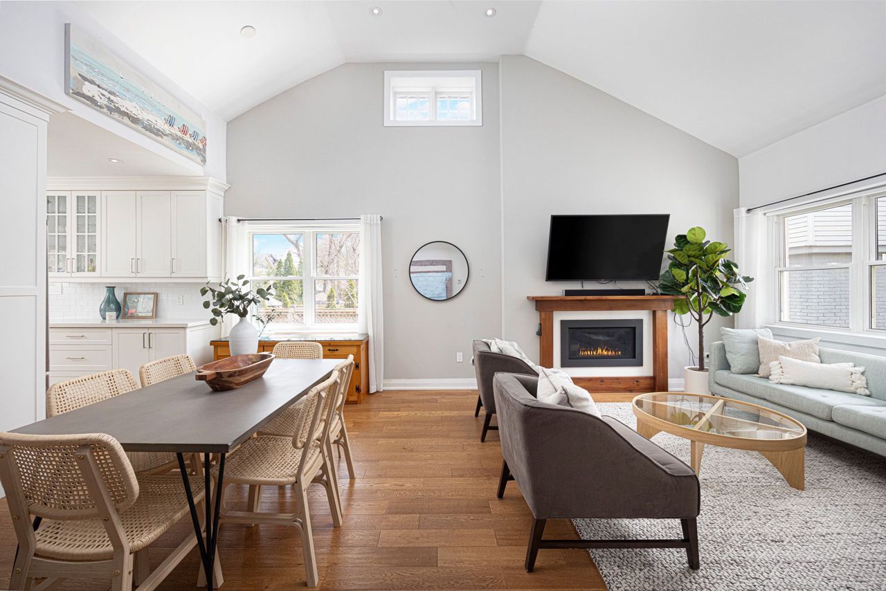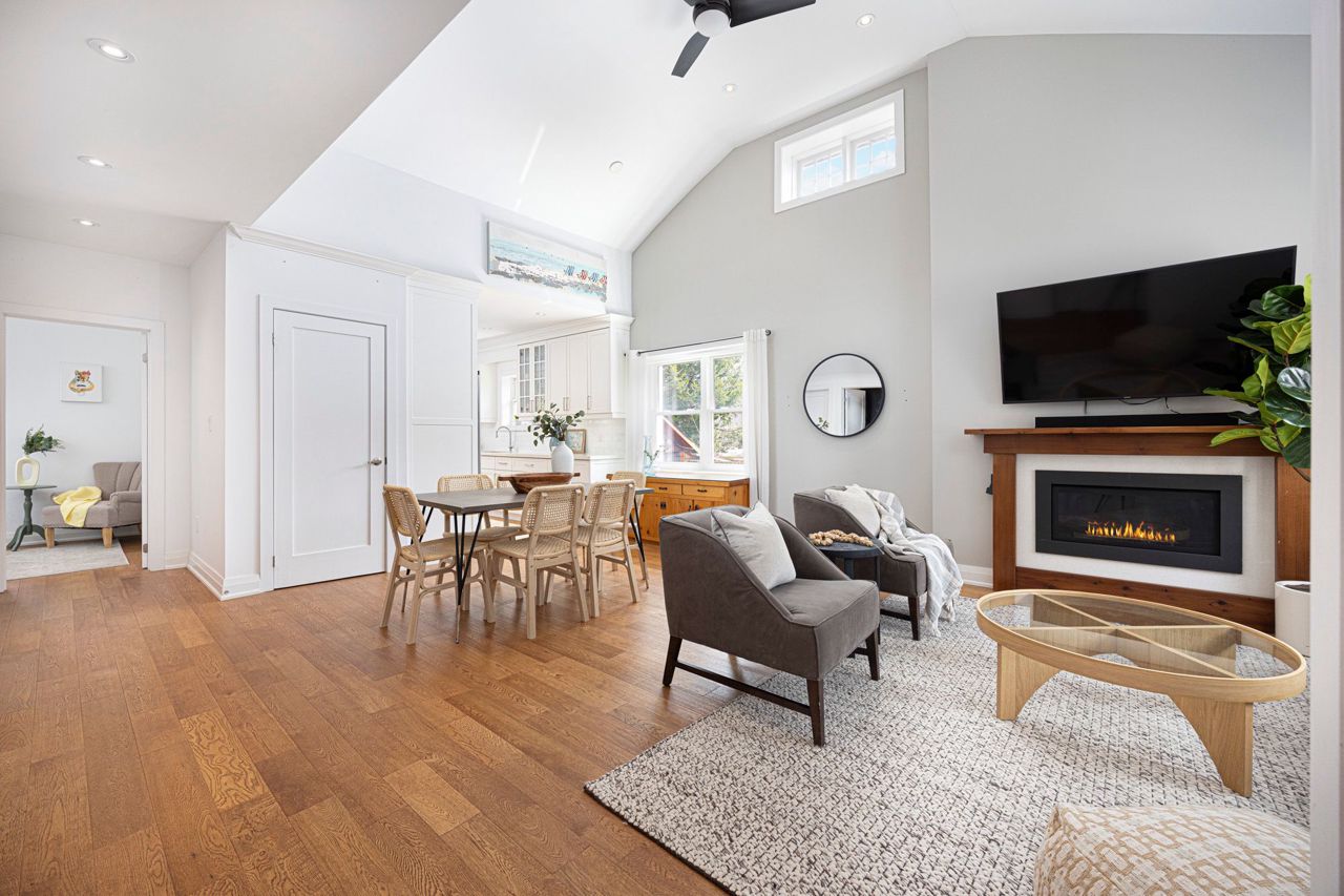 步入采光充沛的主层,挑高天花板令开放式客餐厅更显通透。原三卧格局经巧妙改造,打造出超宽敞主卧套房(可轻松恢复三卧布局)。精美厨房配备南向采光窗、充足储物空间、不锈钢电器、石英石台面,并直通后院。