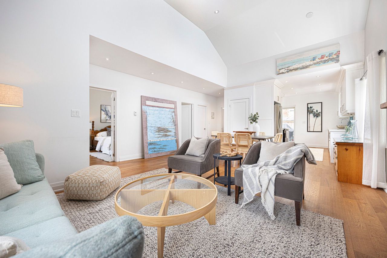 Turn-key Beach bungalow South of Kingston Rd! Must be seen in person to truly experience this private sanctuary. Nestled on a peaceful, pie-shaped lot that widens to an impressive 53 feet at the rear. This fully renovated bungalow is a rare find. Set back from the street for added privacy, this home offers both seclusion and sophistication. Step inside to a bright, airy main floor where stunning vaulted ceilings elevate the open-concept living & dining space. Originally designed with three bedrooms upstairs, the layout has been thoughtfully reimagined to create an extra-large primary retreat, perfect for unwinding in style - Easily convert back to three bedrooms if desired. The beautiful kitchen offers tons of natural lights, with South facing windows, plenty of storage, stainless steel appliances, quartz counter tops and a walkout to the backyard. The lower level features high ceilings and generous space, offering two additional bedrooms and a wide, spacious rec room/office. No detail has been overlooked in the transformation of this home, both inside and out. Enjoy peace of mind with a newer roof, new board and batten exterior siding, a Hunter irrigation system, and professionally landscaped grounds with six lush gardens, complemented by a new interlocked front pad with space for two extra parking spots. Detached garage down the mutual drive for more parking, storage or a workshop. Located in the highly sought-after Courcelette School catchment, this turnkey bungalow is not just a home, it's a lifestyle. Thoughtfully redesigned and meticulously maintained, this is your opportunity to own a one-of-a-kind home in one of Toronto's most desirable neighbourhoods. Minutes to the best of Kingston Rd Village shopping, or South to the Lake and dog walkers paradise at the coveted R.C. Harris Water Treatment Plant.