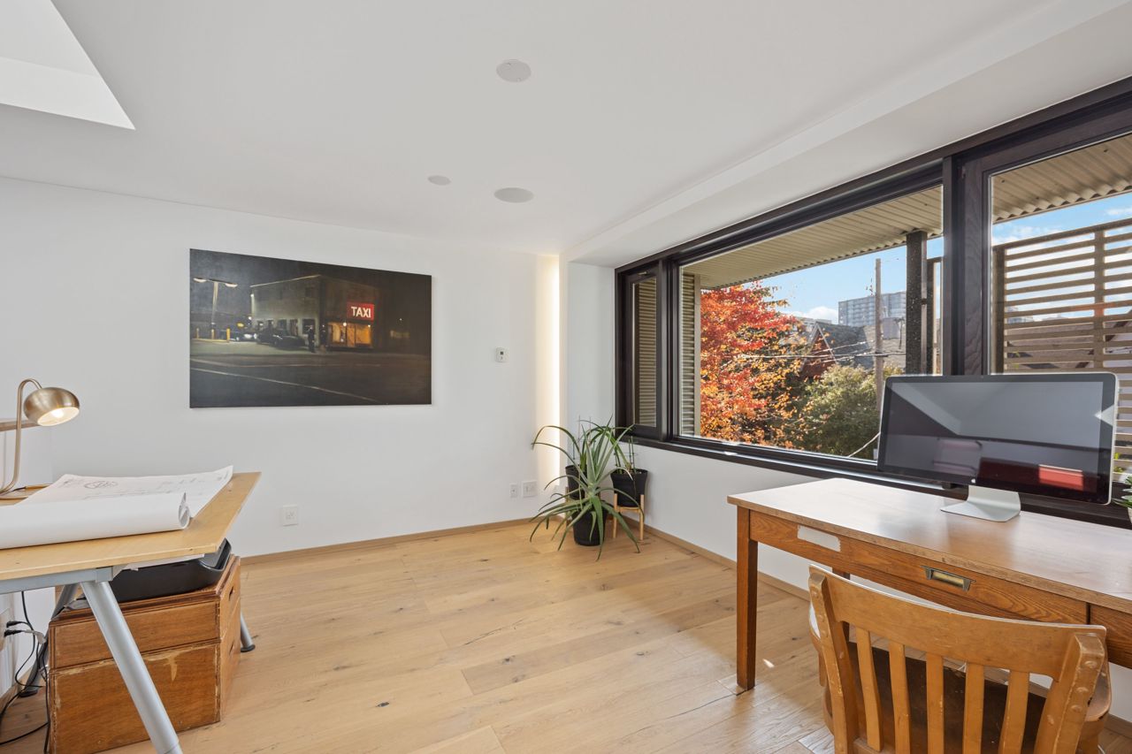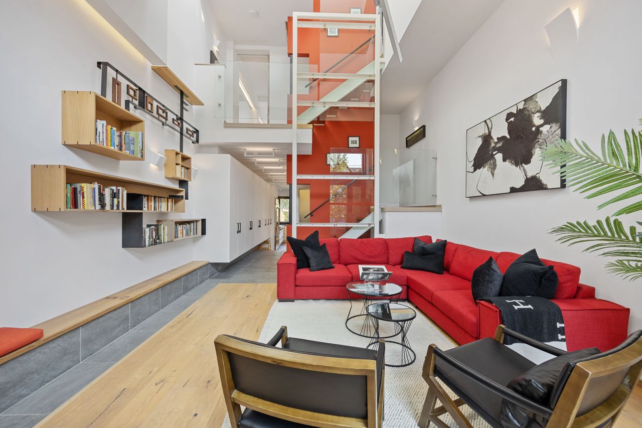 Walk In And Be Immediately Captivated By The Expansive 36 Ft Ceiling Height leading up to Skylights. Warm Wood Tones, Clean Lines, And Industrial Details That Recall The Luxury Of Thoughtful Scandinavian Architecture. Hallway Leading To Kitchen Is Lined With Floating Storage, Highlighted By One-Of-A-Kind Luminaire Accents. The Chef In You Will Enjoy Monogram Professional Appliances. Four 21,000 Btu Gas Burners With Infrared Grill and griddle. Convection Oven, Built-In Fridge. Custom-Built Dining Chairs, Bench, Table. Ebony Slate Countertops.Third-Level Primary Bedroom With Clear Views Of The CN Tower & Stunning Sunrises. Ensuite Nordic Steam Shower, Walk-Through Dressing Area With Floor-To-Ceiling Mirrors. Secondary Bedroom With East View Balcony, Ensuite, Walk-Through Dressing Area. Second-Floor Loft Can Be Converted Into A Third Bedroom. Framing The Home’s Clean Lines Are Dimmable Integrated LED Lighting, Reclaimed Wood Stairs, And Pocket Doors.MARVIN SwingTilt Windows, Automatic Rain Sensing Skylights, Epsom Projector/Screen, Surround Sound, Radiant Floor Heat, Home Security. Steel Frame Construction, Organic Soybean Spray Foam Insulated. Living Roof Prepped Solar Panel Anchors.