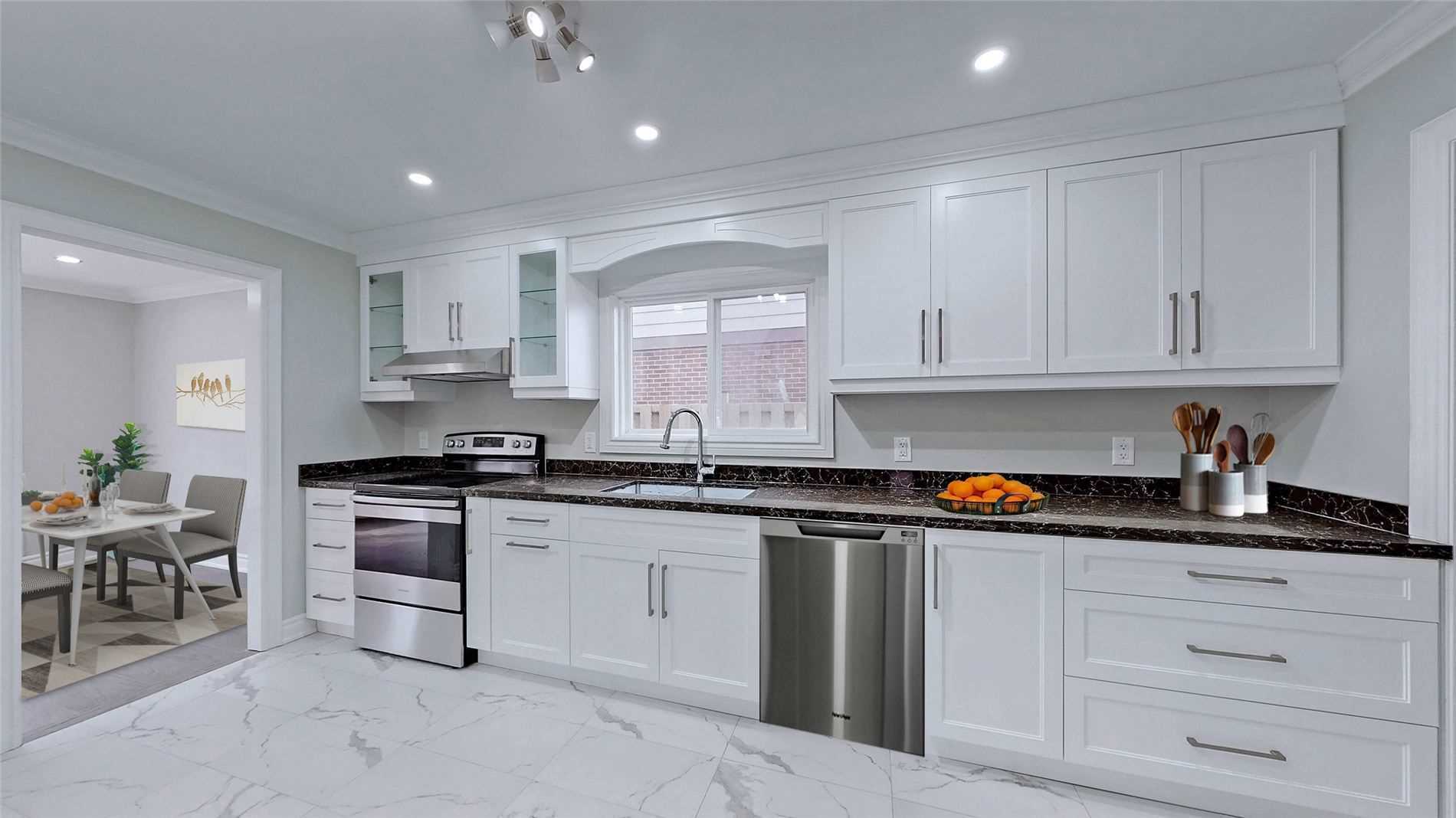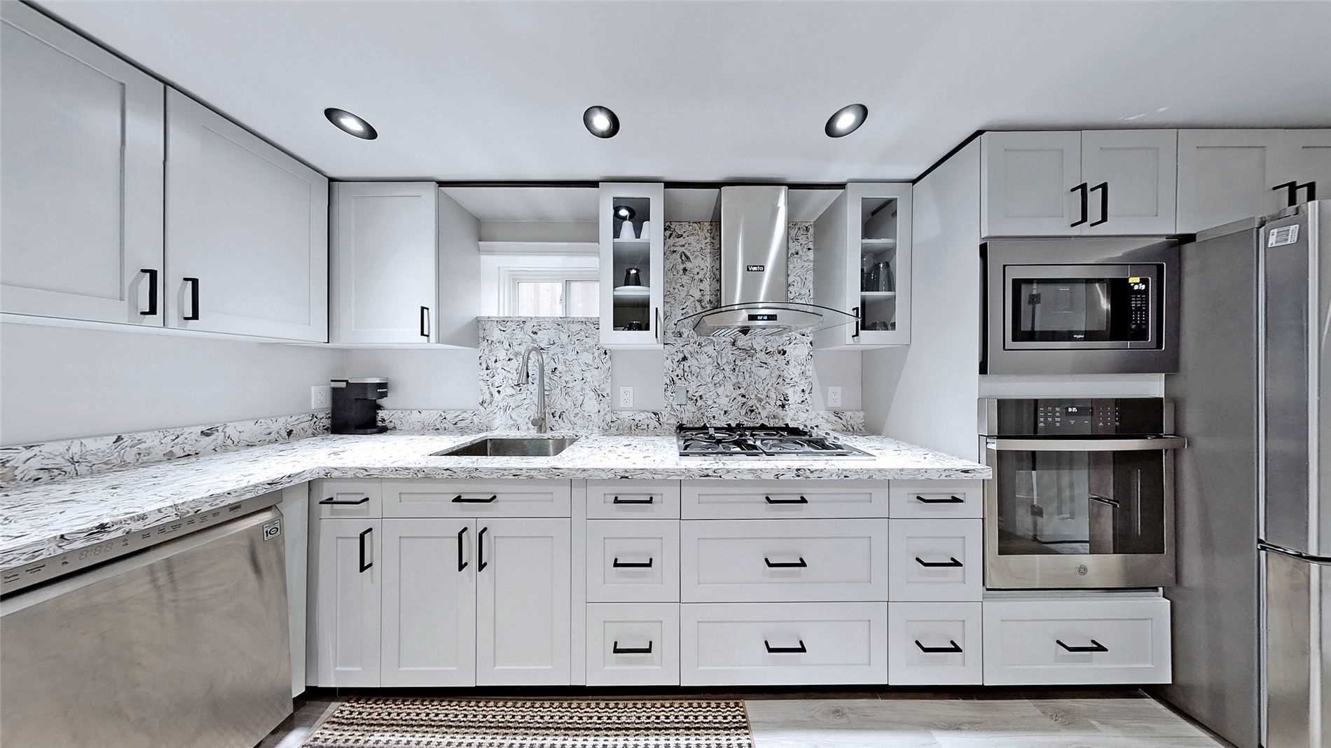 Ready To Move-In, Beautifully Landscaped, Updated Home In Desirable Community Close To School, Park, Shopping And 401. Finished Bsmt With Bedroom, Kitchen & Washroom. Bsmnt Kitchen Features Quartz Counter Top, Built-In S/S Appliances And Back-Splash S/S Fridge, Bi S/S Gas Stove, Rangehood, Bi S/S Oven & Microwave, S/S Dishwasher, Washer&Dryer In Basement. All Light Fixtures, S/S Stove(Mainfloor),Hwt Tank Owned, Security Camera System. Property Is Virtually Staged On Main Level