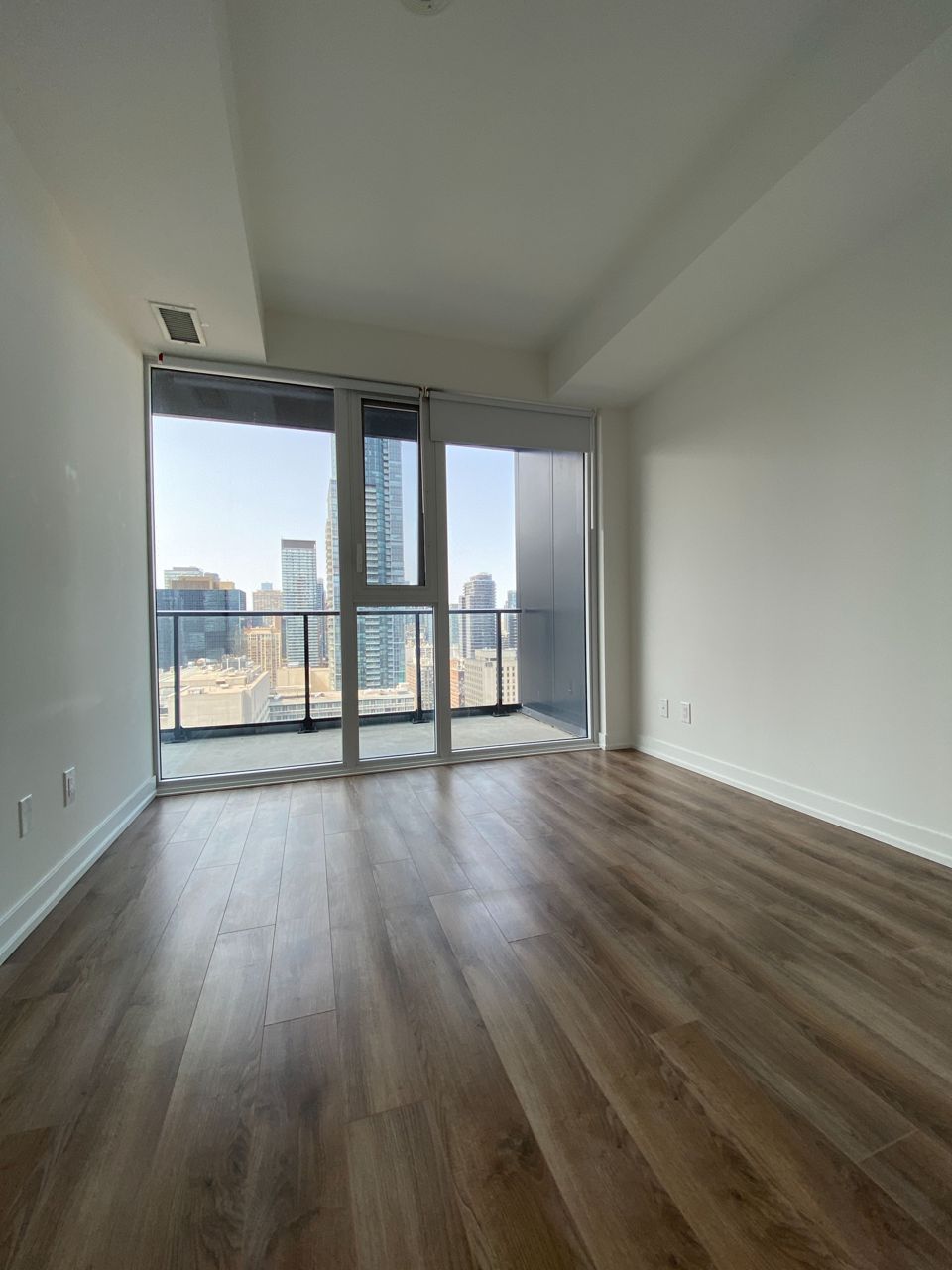 1 Year new Luxury Condo In The Heart Of Toronto. 1 Bedroom Suite With Open Concept With High-End S/S Appliances, 9Ft Ceiling. Steps Away To Ryerson University, Art Gallery, R.O.M., Eaton Centre, Dundas Square, Subway, & Much More. Great Amenities: Study Room, Gym W/Spinning Area, Roof Top Bbq Patio, EtcAll Appliances: Built-In Fridge, Stove, Hood Fan, Microwave, Dishwasher, Clothes Washer & Dryer. All Electrical Light Fixtures & window cover