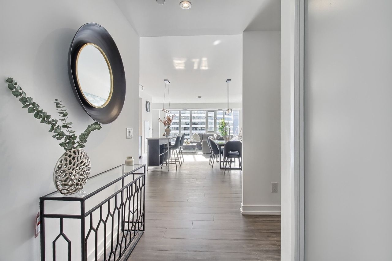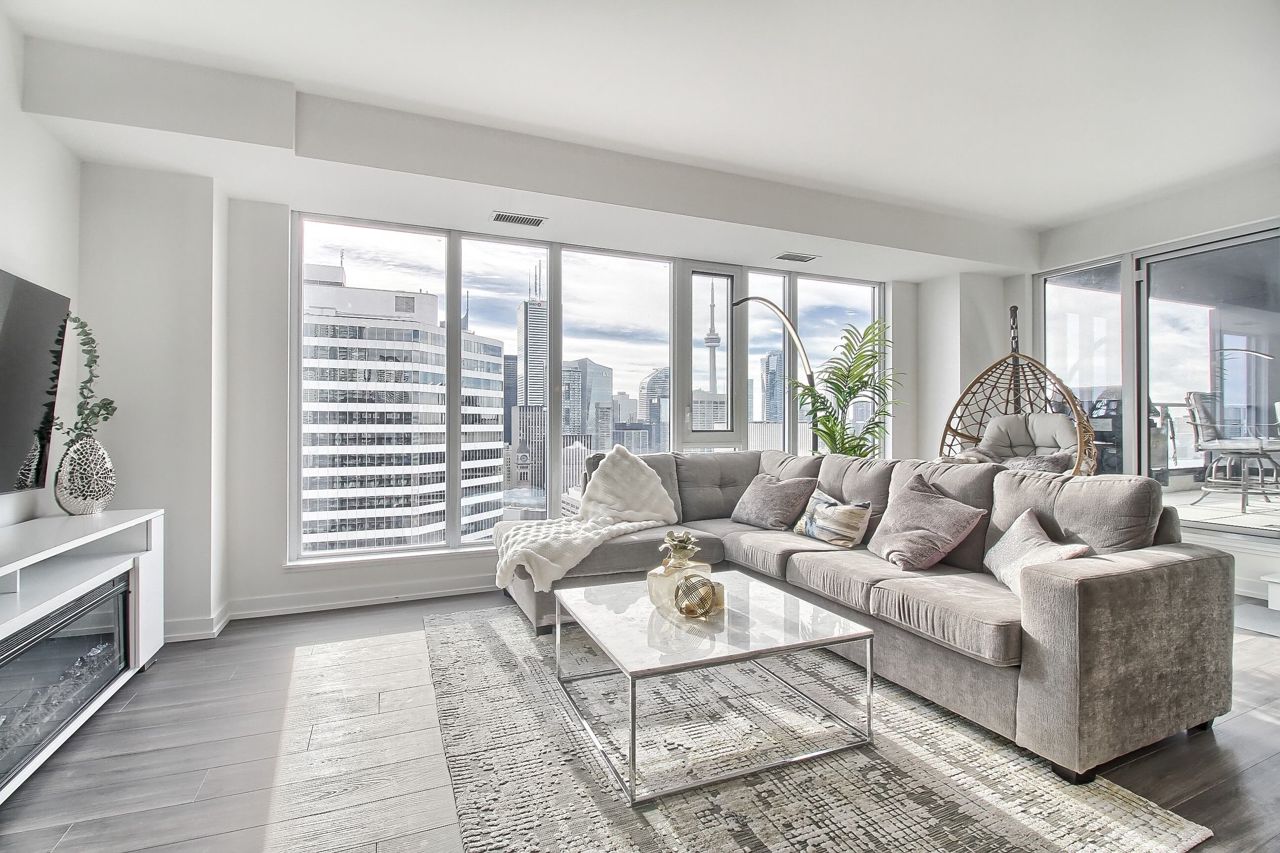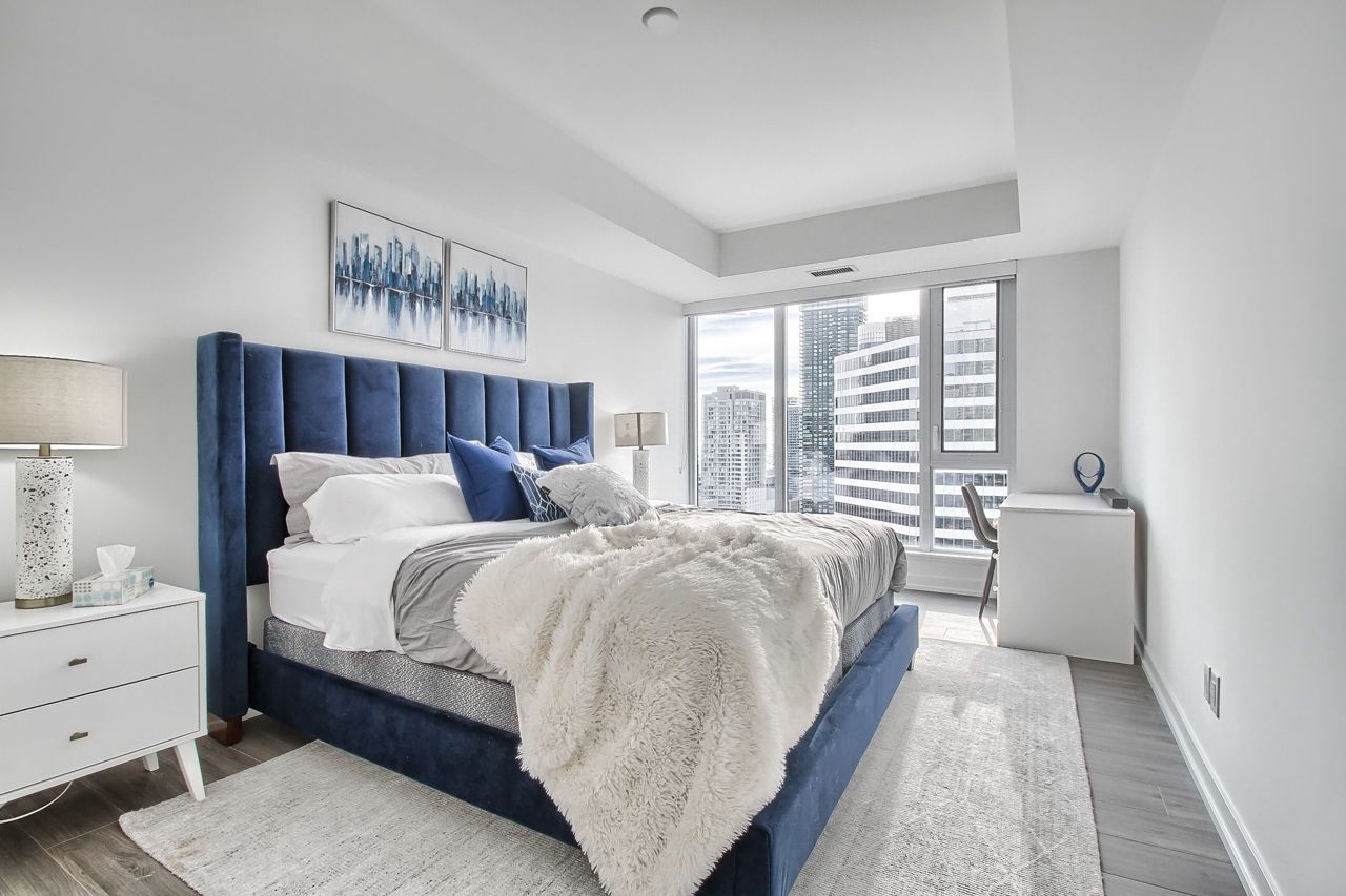 Indulge in the luxurious lifestyle of the downtown Toronto lower penthouse, featuring breathtaking views of the iconic CN Tower and Lake Ontario.Private Balcony with a BBQ, All bedrooms with a walk in closet, master bedroom with 2 large His/Her's walk in Closets, Yoga room, Gym, Library Lounge and so much more. Embrace the convenience of a mere one-minute walk to Eaton Centre, subway station, surrounded by a diverse selection of top-notch restaurants and shops. This exquisitely furnished space provides an all-inclusive experience for those seeking refined living.