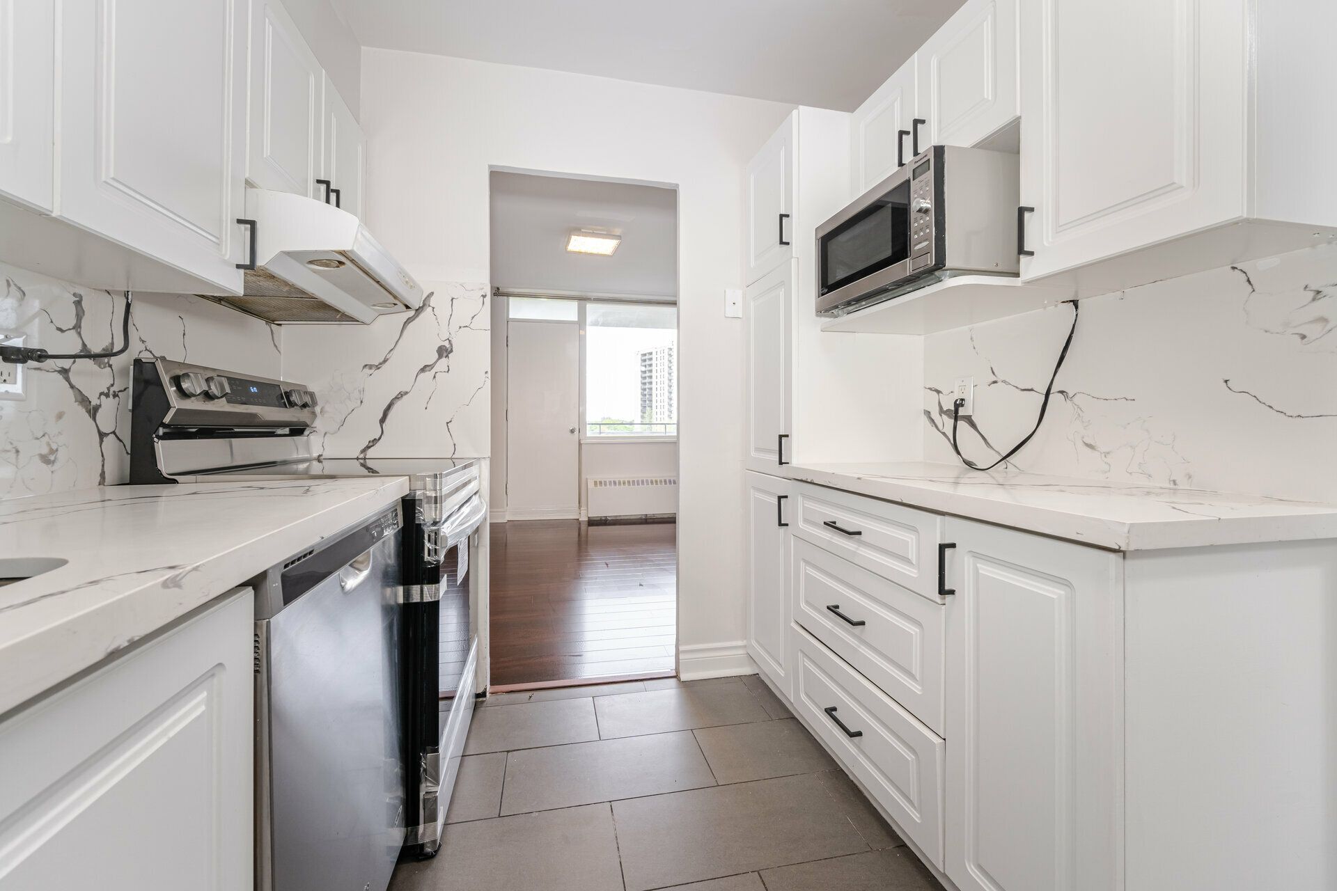 Attention families! This rare 4-bedroom, 2-bathroom condo (nearly 1300 sq ft) in the heart of North York is your chance for comfort, convenience, and affordability. Situated in a sought-after location with a park-front view for tranquility, this unit offers a functional layout with stylish laminate flooring throughout. Imagine easy commutes a walking-distance subway station and TTC access put you close to Fairview Mall for shopping and major highways (401/404/DVP) for getting around the city. Plus, this condo is close to schools, shops, and amenities, with a FreshCo store right next door for ultimate convenience. The monthly maintenance fee covers hydro, heating, water, high-speed internet, and cable TV all you need to do is move in (appliances included!). Bonus! This family-friendly building boasts a sparkling outdoor pool, perfect for summer fun. Need a workout? The building also features separate gyms for men and women, along with relaxing saunas unwind after a long day! Don't miss out on this spacious gem in a fantastic North York location!Fridge, Stove, Dishwasher, Washer/Dryer. All Current Elfs.