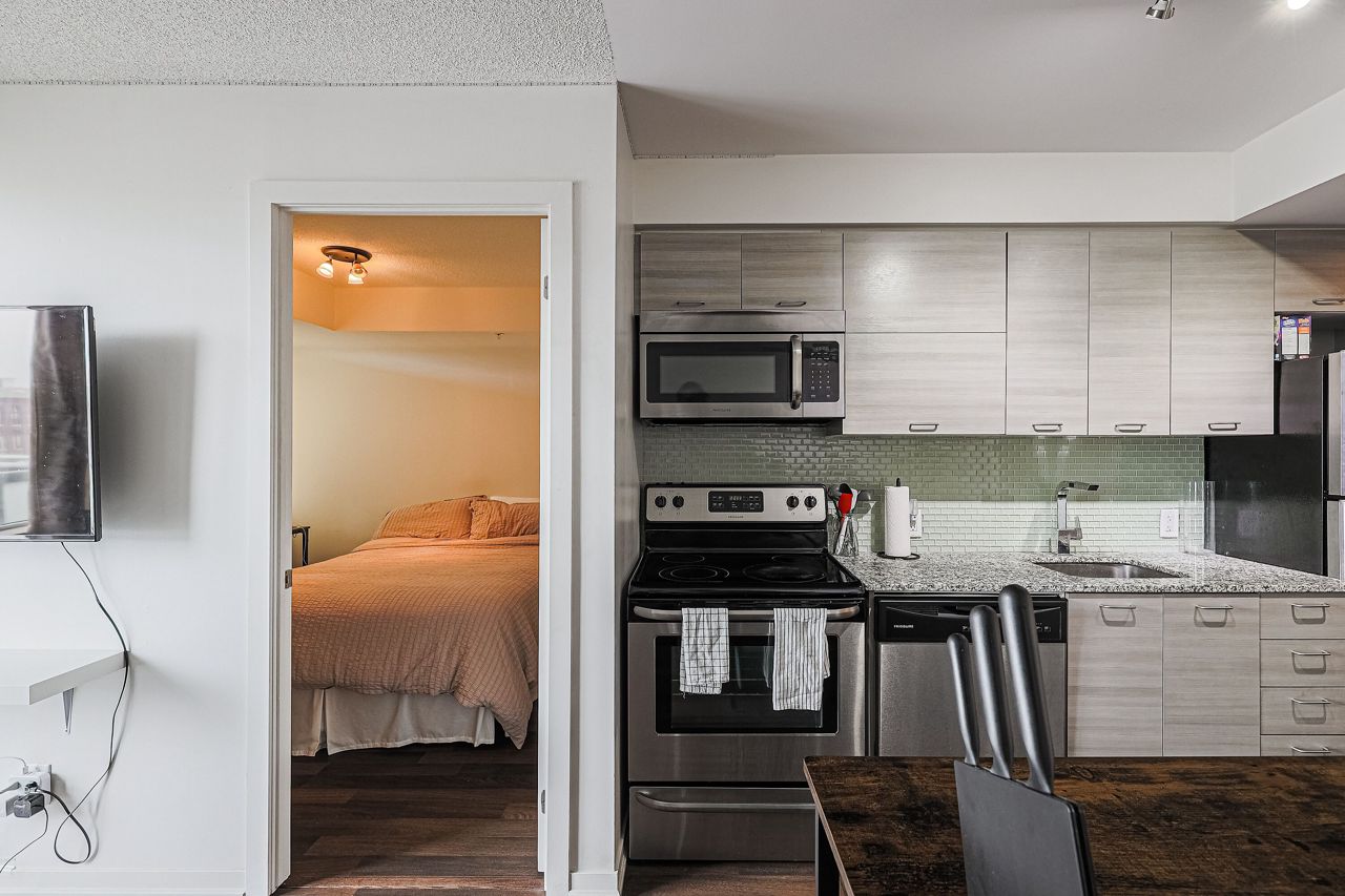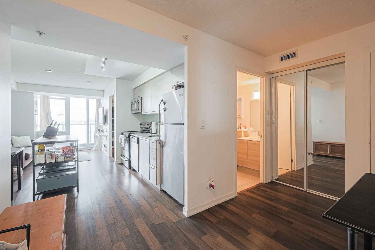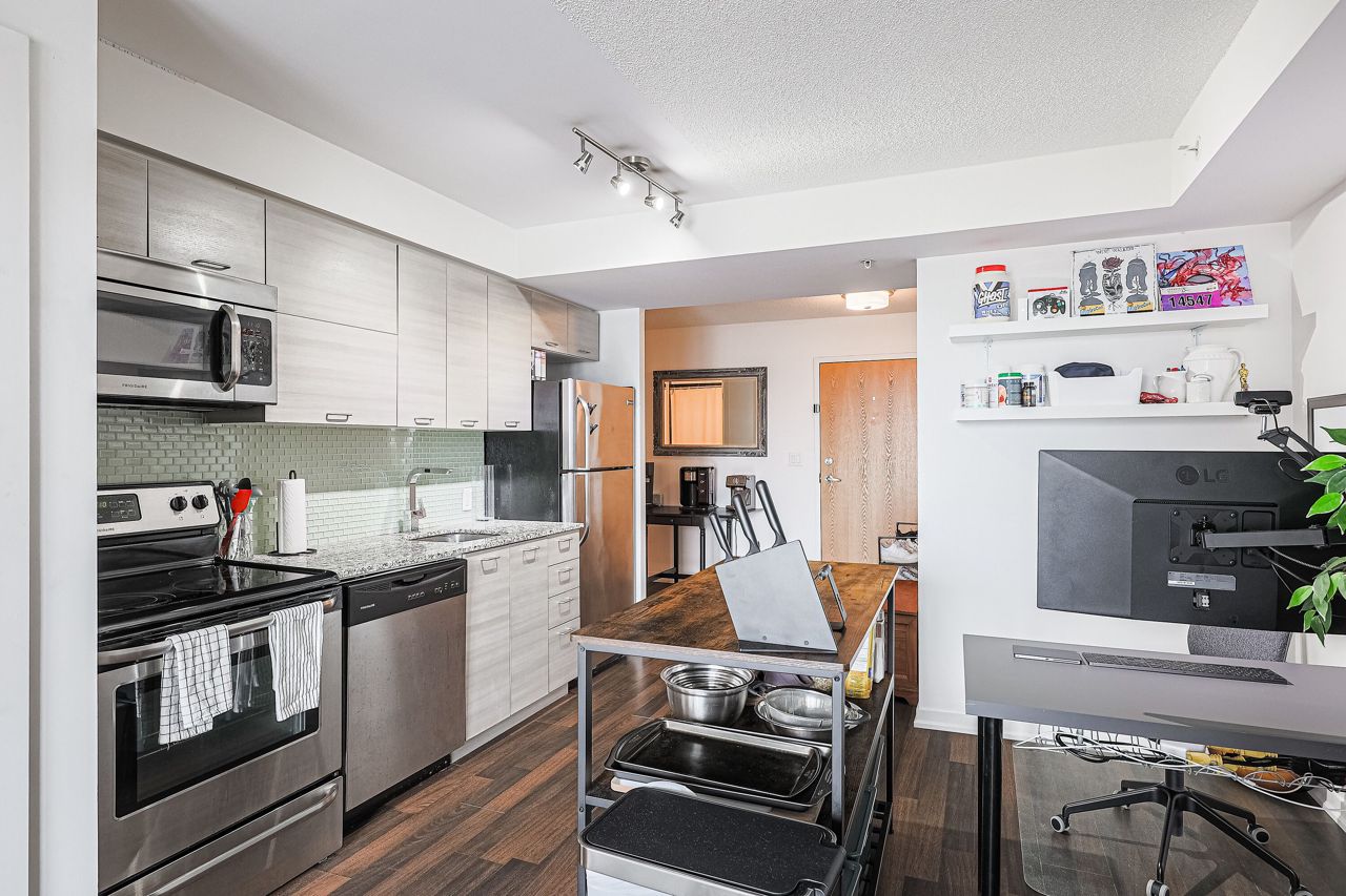 Throughout, Trendy Kitchen W Stainless Steel Appliances, Granite Countertops, Bright Western Exposure And A Locker. Includes Gym, Yoga Room, Locker Rooms, Party Room, 2 Guest Suites, Common Outdoor Terrace + Visitor Parking. Steps To Shops & Restaurants On Both King & Queen Street West As Well As Liberty Village.S/S Fridge,Stove,Microwave,Dshwshr,(New)White Stackable Washer/Dryer,All Existing Elf&Wndw