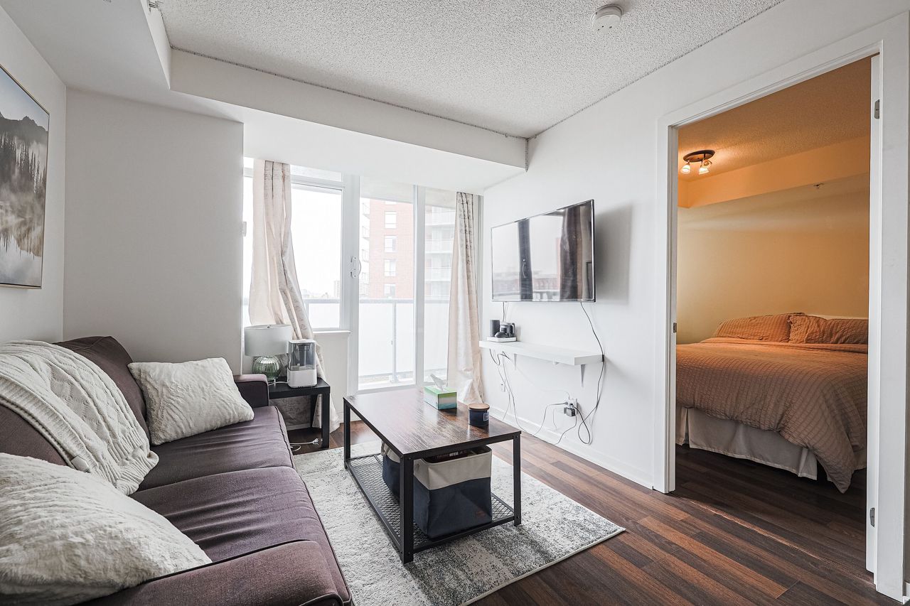 This Precious Gems Is A Rarity... With 565 Sqft & Being Situated On The 9th Floor It Offers A Great Deal In Functionality & Spaciousness. It Features 1 Bedroom + Den, 1 Bath, Laminate Floors
