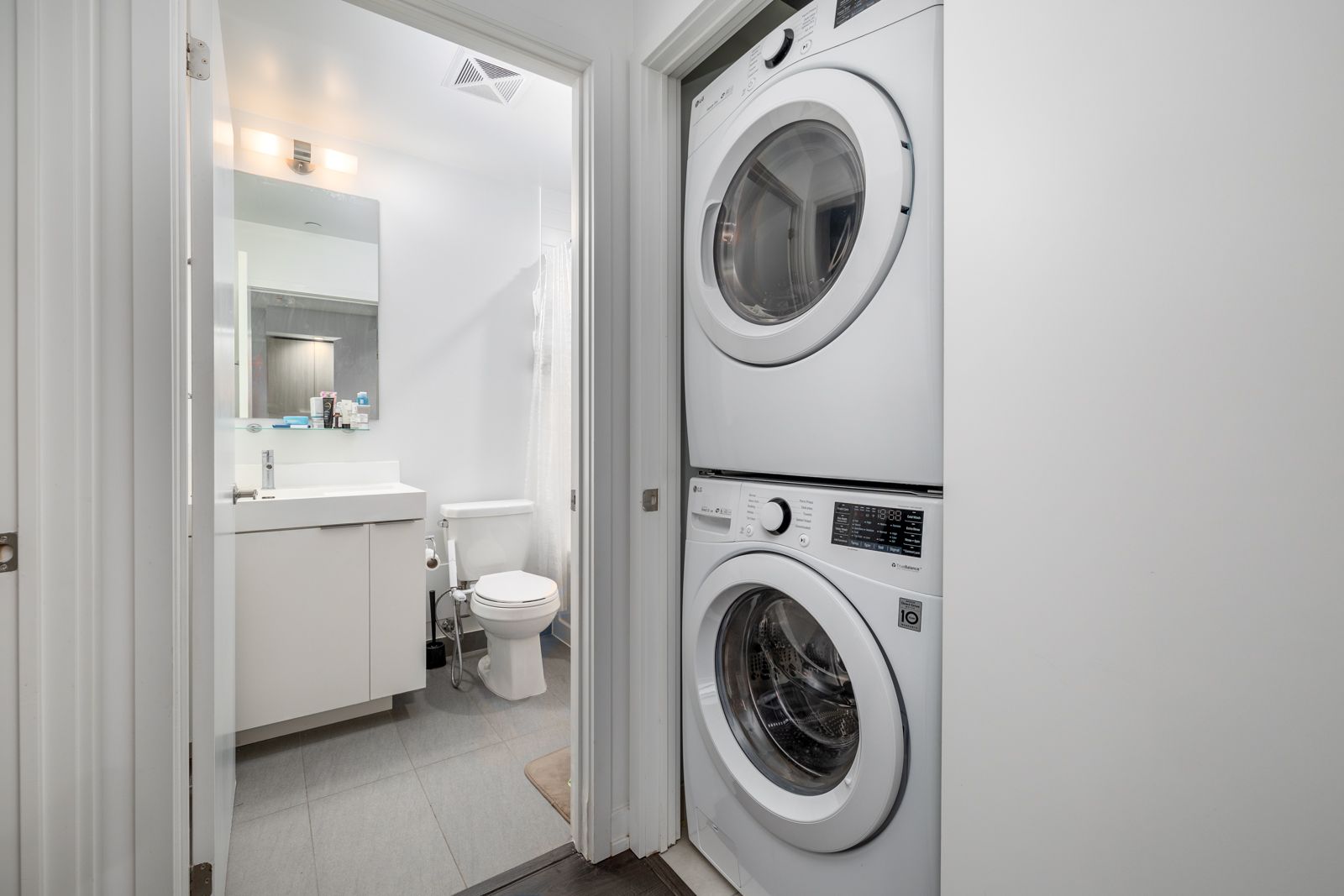 Welcome To The Luxurious Wyatt Condos! This Open Concept, 1 Bedroom, 1 Bathroom Suite Offers A Spacious Kitchen And Living Area, Large Windows That Allow Tons Of Natural Light, Laminate Flooring Throughout, Balcony That Overlooks Park And Ensuite Laundry! Centrally Located At The DVP And Don River. This Area Is In Close Proximity To The Distillery District, St. Lawrence Market, Yonge-Dundas Square, Eaton Centre, Toronto Metropolitan University, And George Brown College. Enjoy Easy Access To Regent Park Athletic Grounds, Art Galleries, TTC, Shops, And Restaurants - All Just Steps Away!Concierge, 24 Hour Security, Gym, Rock Climbing Room, Party & Conference Room, Luxury Roof-Top Terrace, Visitor Parking.