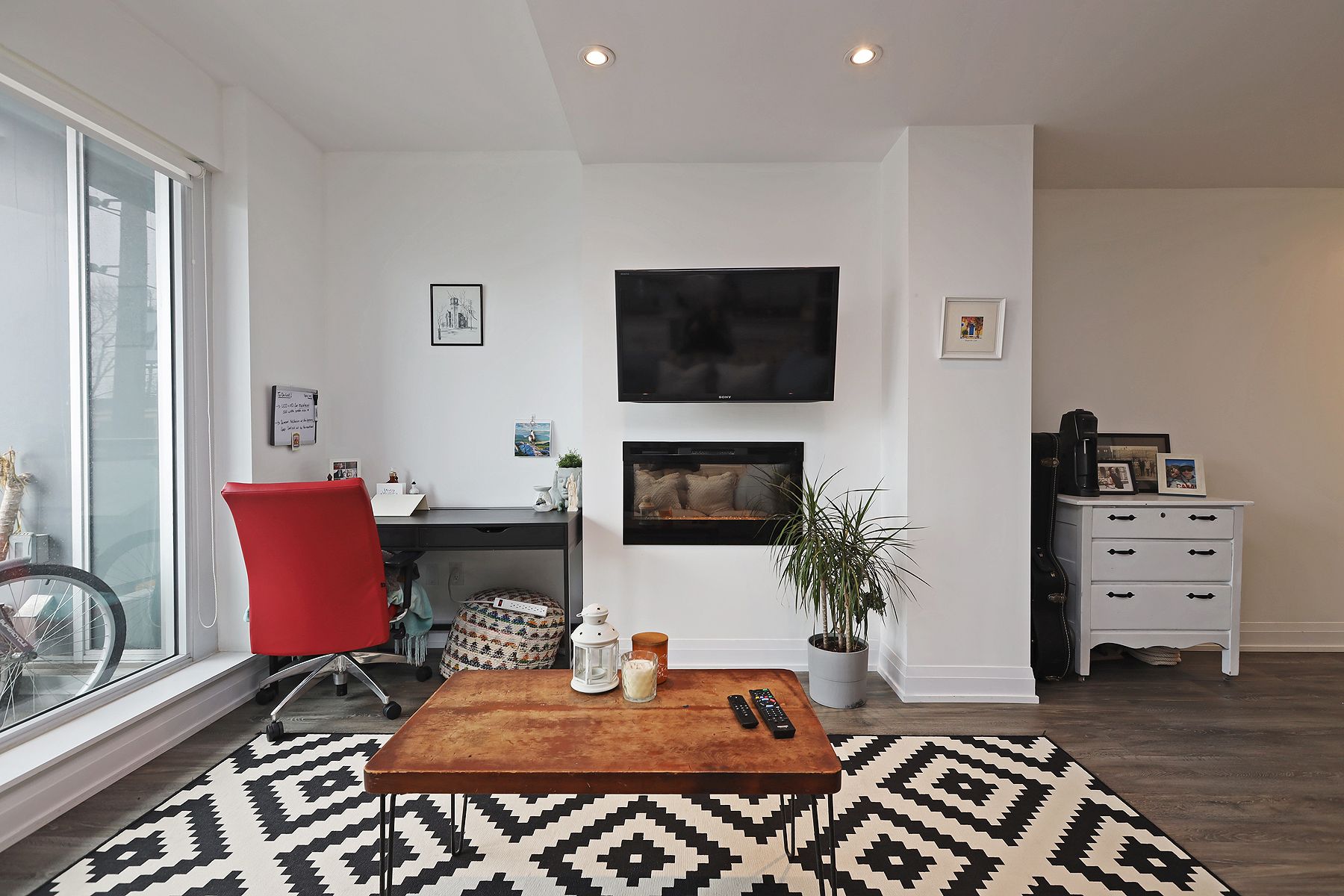 Window Flr To Ceil W/O To Balcony Fireplace Insert