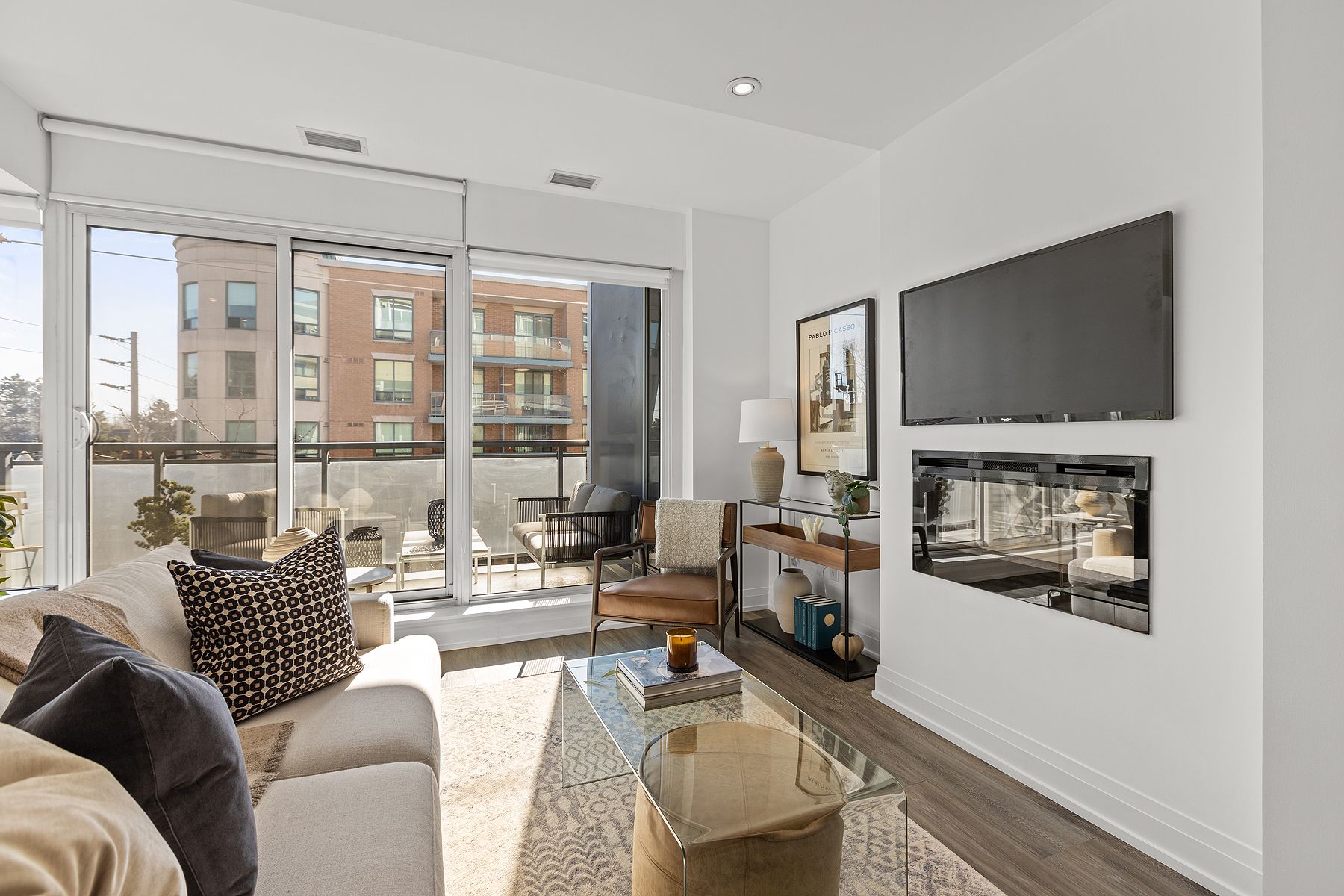 Nestled in the vibrant heart of Toronto's beloved Beaches neighbourhood, this rarely available, bright space offers a lifestyle of unparalleled comfort & convenience. With floor-to-ceiling windows flooding the space with natural light, the living room seamlessly flows into the well-appointed kitchen, featuring an electric fireplace for cozy winter evenings. Step out onto the