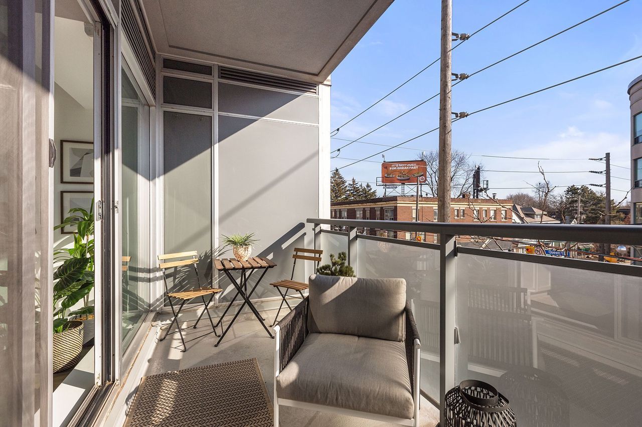 south-facing balcony, perfect for al fresco dining with a BBQ gas line. The bedroom, with access to the pristine bathroom, provides a serene sanctuary with a large frosted glass wall, allowing ample natural light. Enjoy the convenience of Bruno's Food Market below, Sauvignon French Rest nearby & easy access to Woodbine Beach, outdoor pool, boardwalk, playgrounds, tennis courts, TTC, schools & medical. Take advantage of your opportunity to experience Beaches living at its finest.