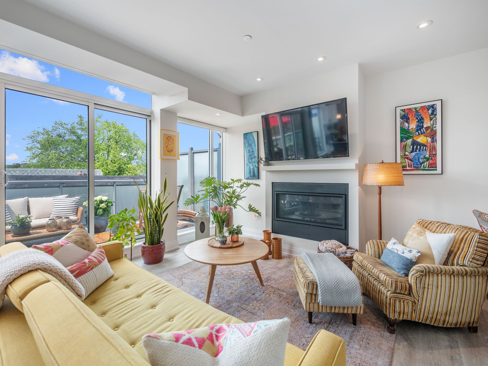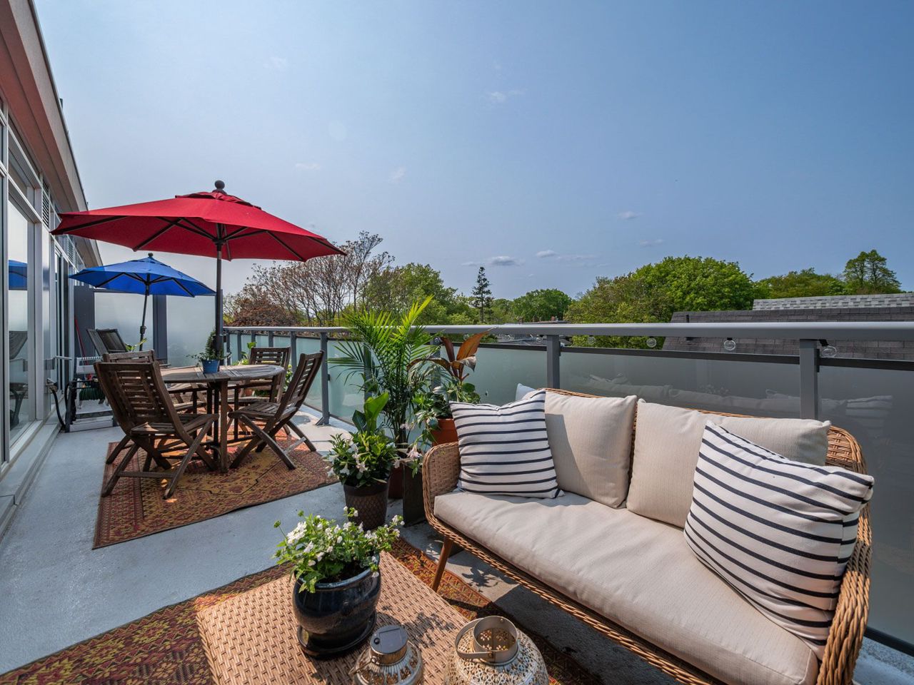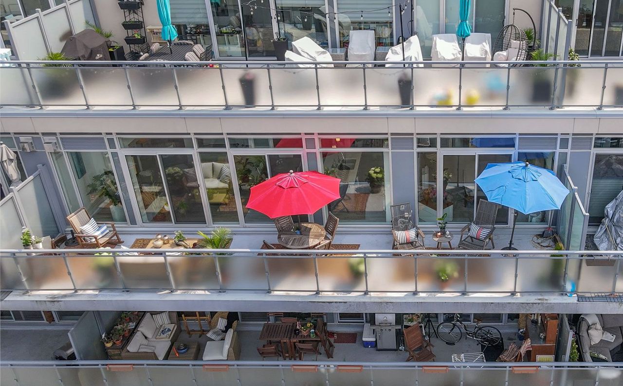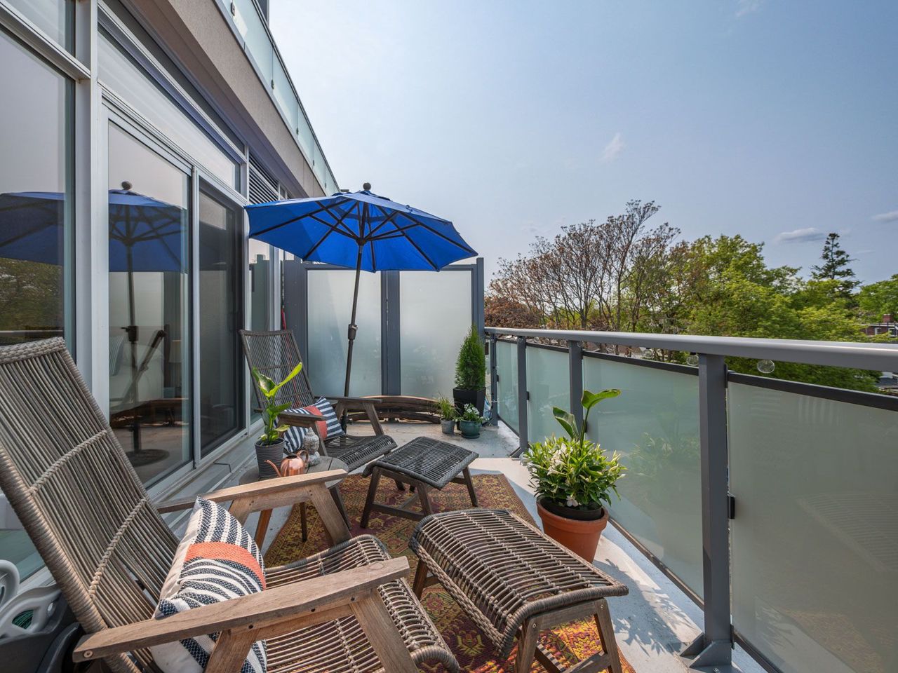 Summer Oasis In The Heart Of The Beach! 1100 sq ft of stellar living space featuring 40ft of floor-to-ceiling windows & 3 walk outs to a 347 sq ft terrace that runs the entire length of the home! Spectacular light and an airy open-concept layout and a fireplace make it ideal for relaxing, gardening and entertaining. The 2nd bdrm is also an ideal office with views of the terrace and dble doors for great light. If cooking is your thing, there's not only a gas cooktop but a gas hook up for grilling on the terrace. The chic, well-appointed gourmet kitchen provides all the modern comforts including a centre island breakfast bar, AEG Appliance package and stylish storage solutions. Large principal bdrm boasts its own terrace walkout, double-sided walkthrough closet & hotel style ensuite bath with soaker tub and separate glass shower enclosure.Owned Underground Parking and Locker!Beach Amenities Abound! Right Outside Your Door: Brunos, Starbucks, Yoga, The Boardwalk And Lake, Sauvignon, History Or The Movies.