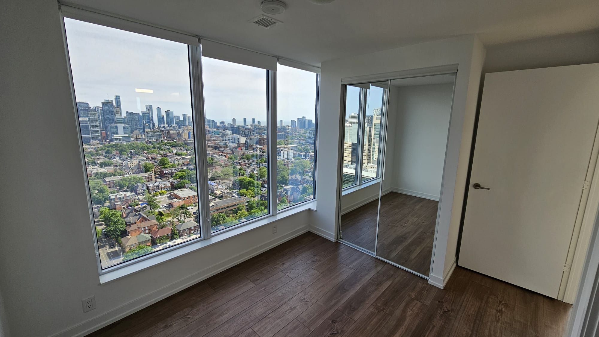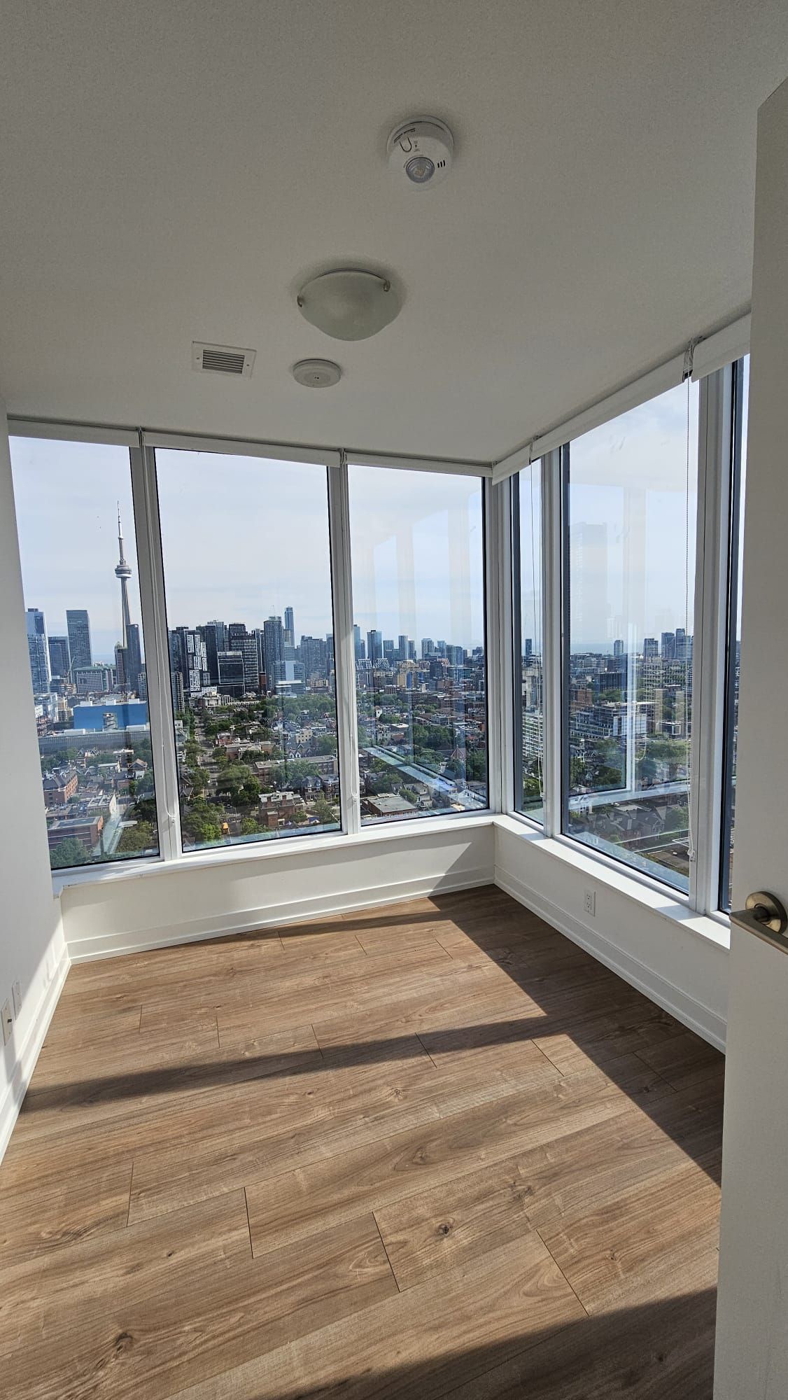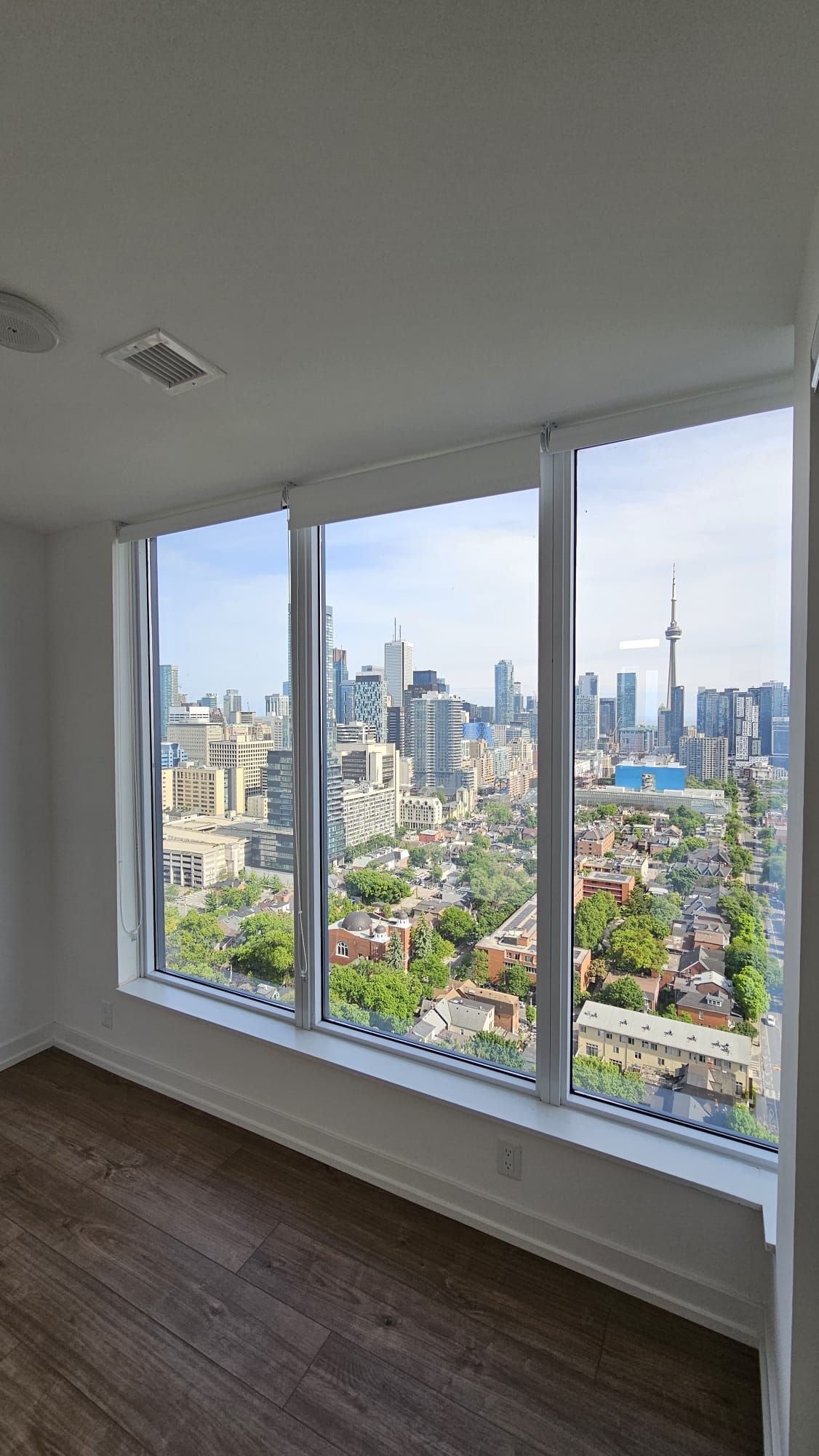 Beautiful southwest-facing corner unit at Theory Condos offering unobstructed CN Tower and sunset views. This 1-bedroom + den, 2 bathroom suite features a well-designed layout with large windows that bring in abundant natural light throughout the day. The modern kitchen is equipped with stainless steel appliances, quartz countertops, and tile backsplash. The den is enclosed with a door, making it perfect for a home office or use as a second bedroom. Amenities include a 24-hour concierge, a fully equipped fitness centre, media and party rooms, BBQ terrace, bike storage, and visitor parking. Ideally located just steps from U of T St. George campus, Queens Park and College subway stations, major hospitals, Grange Park, Kensington Market, and a wide selection of shops and restaurants. Walk Score of 98, Transit Score of 100. A rare opportunity to own a bright, versatile suite in a prime downtown location with unbeatable lifestyle convenience.