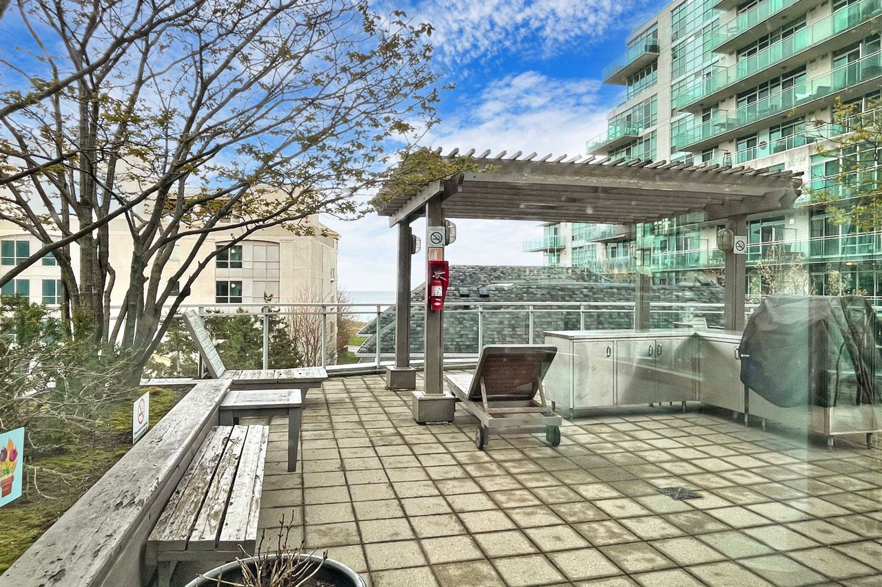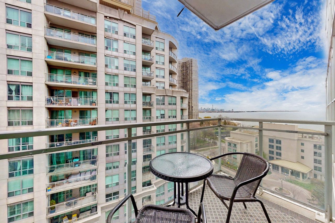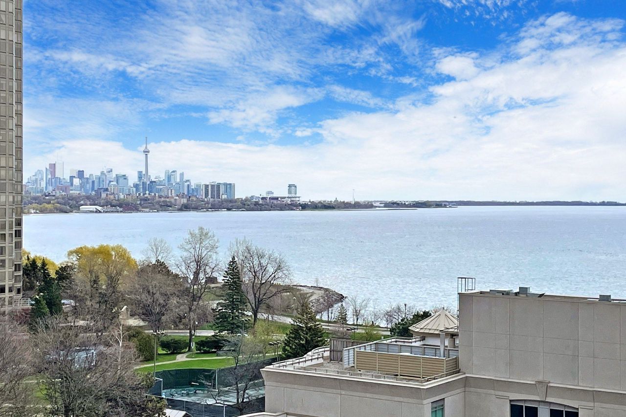Highly coveted boutique building that is just steps from Lake Ontario and Humber Shores Park! Beautiful and spacious south east facing suite with balcony that offers skyline and water views. Bright, open-concept space w/floor to ceiling windows throughout. Two bedrooms and two bathrooms, primary includes ensuite and walk-in closet, laundry closet, parking/locker included. Building amenities include: 24 hr concierge, gym, party room, visitors parking, pool, Jacuzzi, Saunas and meeting room.This building is just mins to the Gardiner West & East ramp & Go Train Station. Enjoy the outdoors biking, walking and jogging on the extensive trails! Restaurants, groceries, amenities all at your doorstep.