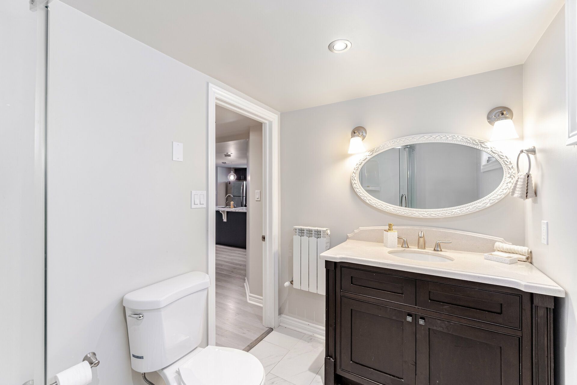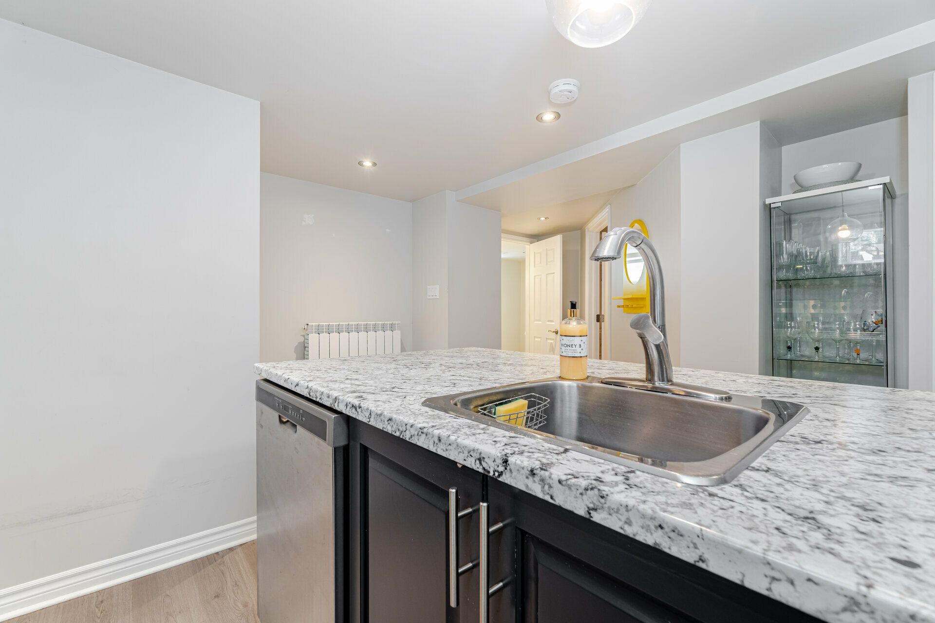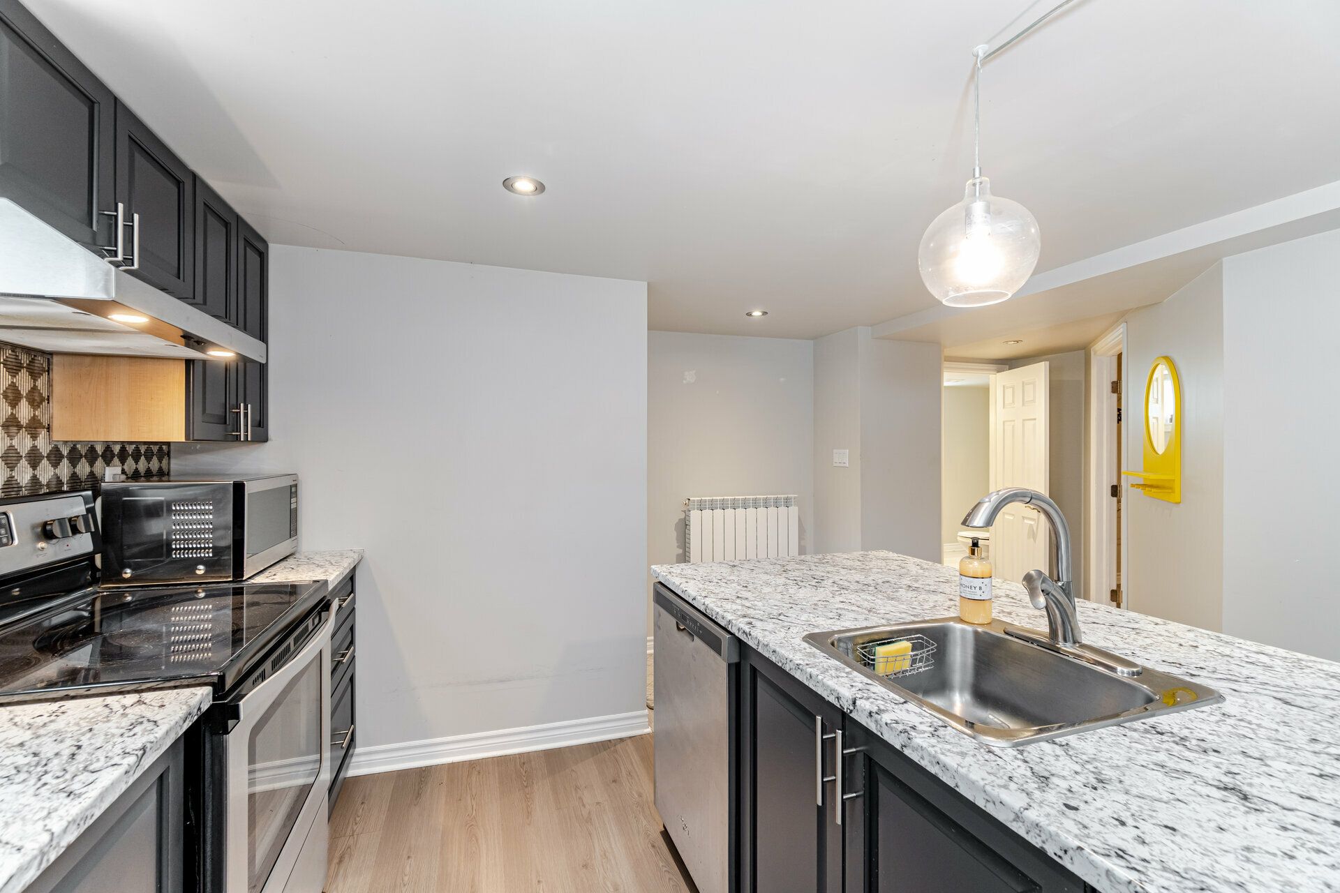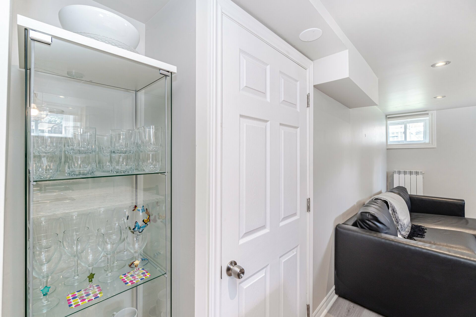 Stunning modern renovated basement apartment for lease in gorgeous historic neighbourhood of Weston Village. This suite boasts one of the best kitchens- featuring ample counter space, an island, & top-of-the-line stainless steel appliances, including a dishwasher! With 824 square feet of space, this furnished & move-in ready unit offers a spacious, bright, & inviting atmosphere. The apartment features large rooms & an ensuite laundry room with plenty of shelving for convenient storage. Sound proofing provides for quiet living. Enjoy a separate entrance at the back of the property, providing privacy & ease of access. Along with 1 driveway parking spot, tenants have the added benefit of using the patio & large backyard, perfect for relaxation.You can even garden! Don't miss the opportunity to make this your home! Experience comfort, style, & convenience in this thoughtfully designed apartment. Schedule a viewing now & embrace a lifestyle of modern living. A/C unit included.Conveniently walkable to Weston GO, farmers market, shops, restaurants+. Centrally located near Up Express, Humber Hospital, 401, 400, Yorkdale. No pets, no smokers. Utilities included. Rogers high-speed internet offered at +$95/m