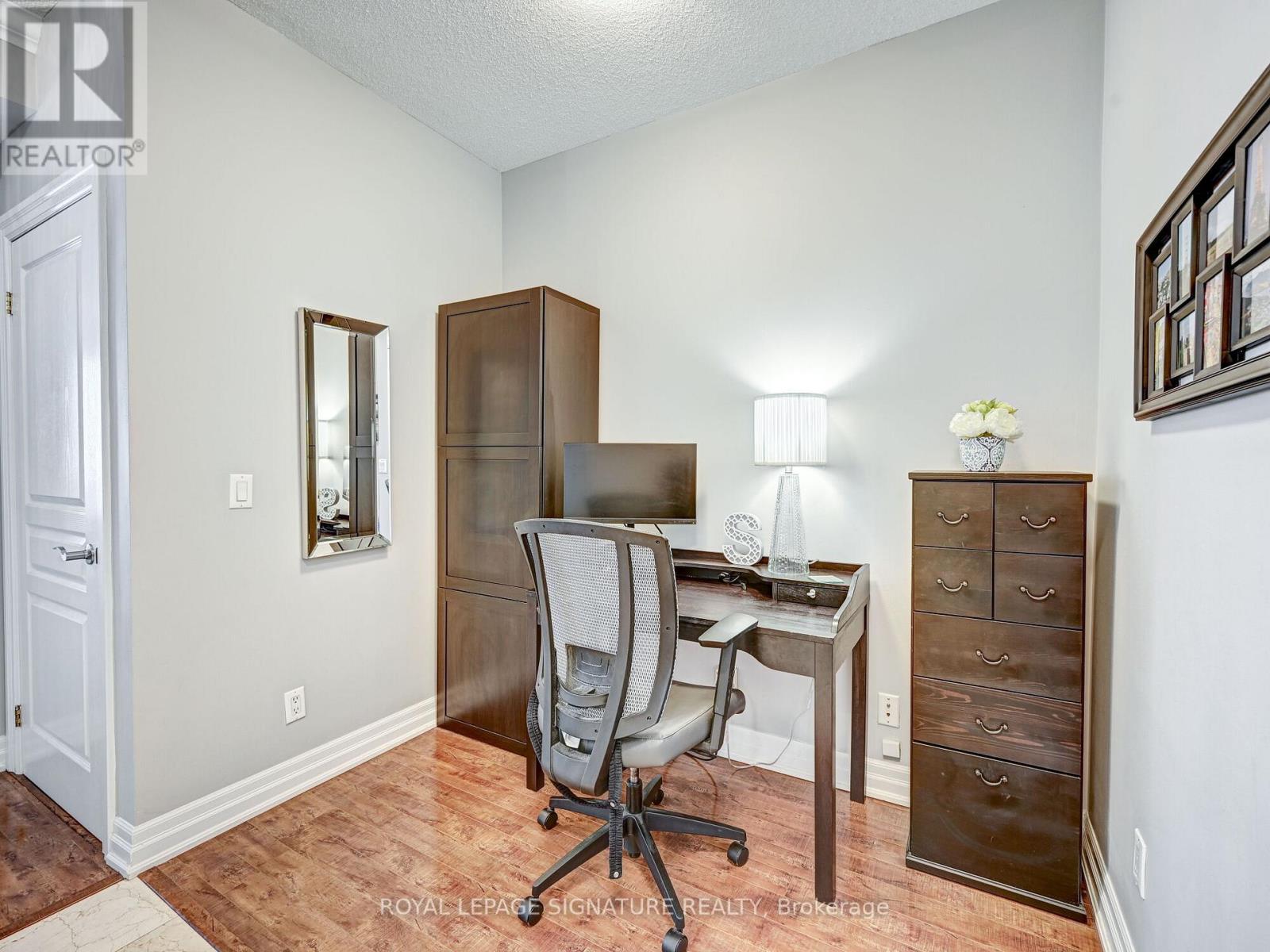 Welcome home to this amazing condo unit! This bright and spacious 1+1 bedroom comes with a 40' tandem 2 car parking spot and an adjacent oversized storage room! Truly a rare unit to come by, this lovingly cared for unit unit comes with all the bells and whistles and features a spacious open concept floor plan with laminate and marble flooring through out, an open concept kitchen with granite counters, stainless appliances and a breakfast bar, a great size den and a primary room with a LARGE walk-in closet & custom built-ins! This unit also has a massive oversized bathroom with marble tiles and custom glass door! Enjoy the western facing view on your spacious balcony with water views and BBQ's are allowed! Private Storage Room is approximately 10' wide x 5' deep! You just can't go wrong with this amazing space!**** EXTRAS **** Great Location! Water Views From Unit, Stunning Party Room With Rooftop Terrace, Great Concierge, Ample Visitor Parking! Steps To Great Restaurants, Lake Trails, Hwy's & Downtown! (id:22211)