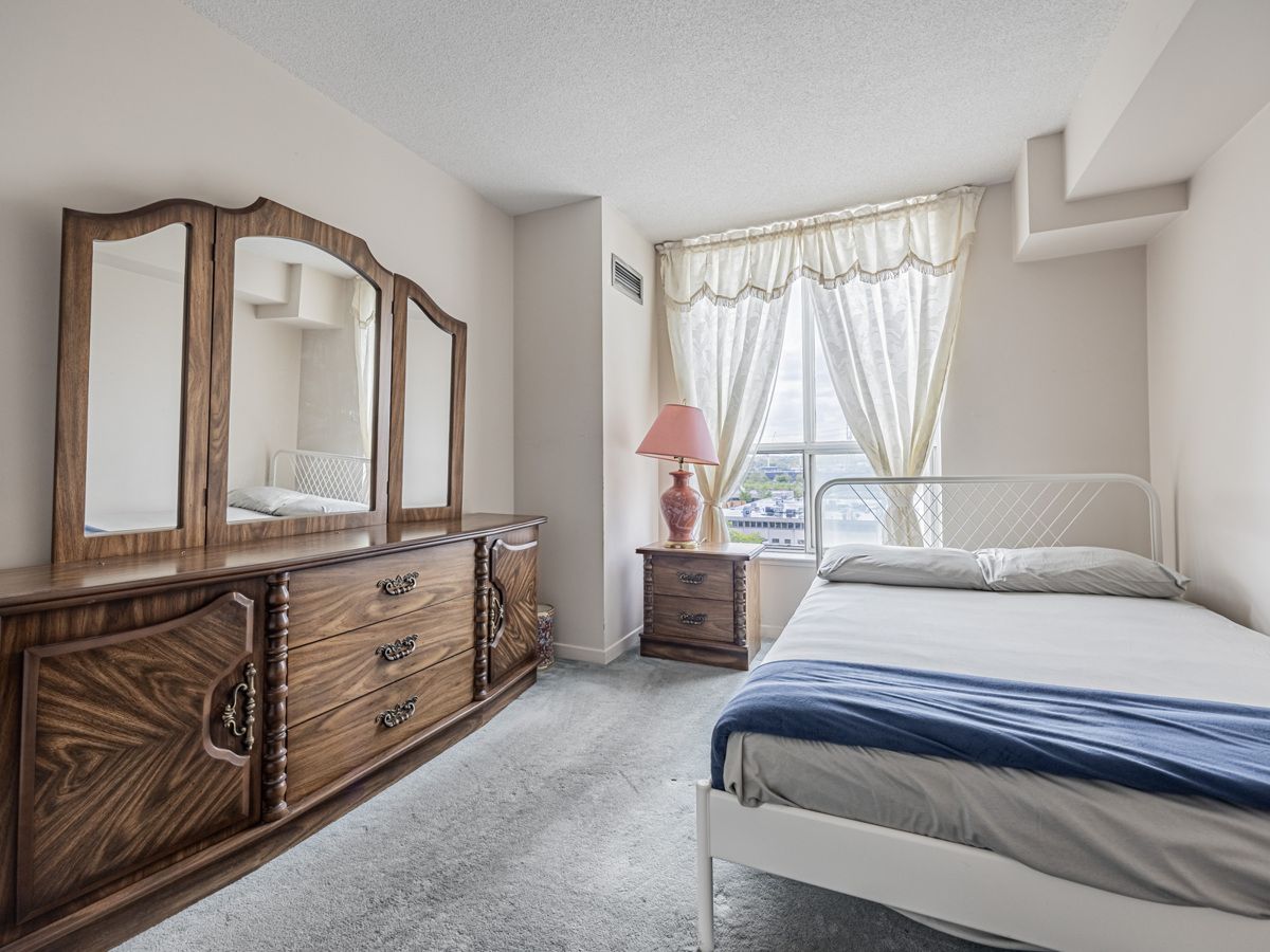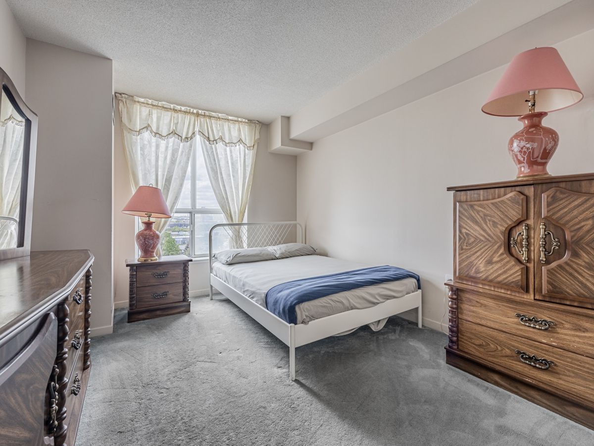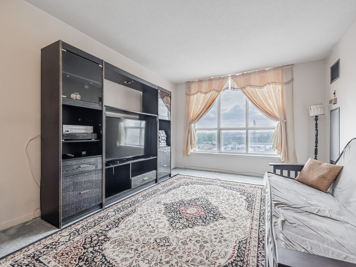 This charming 1-bedroom condo, Situated in a sought-after building, this unit offers a comfortable and convenient living space perfect for individuals/Seniors/couples seeking a cozy urban retreat.Open-concept living area and provides ample room for relaxation and entertainment, accommodating a sofa, coffee table, and media center. Large window invites abundant natural light, creating a bright and welcoming ambiance.The spacious bedroom offers a peaceful haven for rest and relaxation & features a generously sized closet, providing ample storage for clothing and personal belongings.With its desirable location, well-designed living space, and access to incredible newly renovated amenities building is a testament to thoughtful design. It elevates the concept of modern living by seamlessly blending functionality, aesthetics and luxury.Future home of new transit line, Discover the ultimate convenience at your doorstep with easy access to a multitude of amenities, mall, Costco, etcTHIS CONDO HAS WORLD CLASS AMENITIES: Exercise Room, Media Room, Party/Meeting Room, Security Guard, Squash/Racquet Court, Billiards, BBQ Area, Beautiful Greenspace Backyard & Visitor Parking