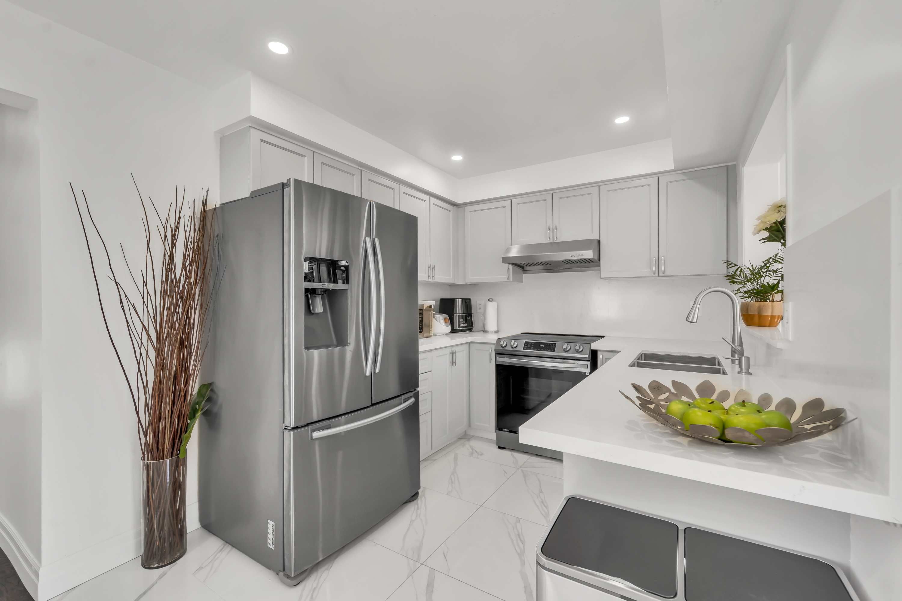 Absolutely Stunning Home, Renovated From Top To Bottom, All New Washrooms, New Flooring, New Porch, New Stairs. Access To House From Garage, Separate Entrance To W/O Basement. Double Door Entry. Conveniently Located Steps From All Local Amenities.All blinds, all Light Fixtures, 2 Fridge, 2 Stove, Washer/Dryer and Freezer