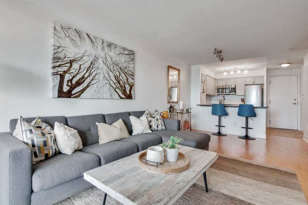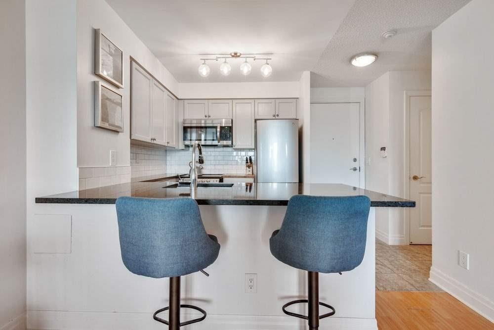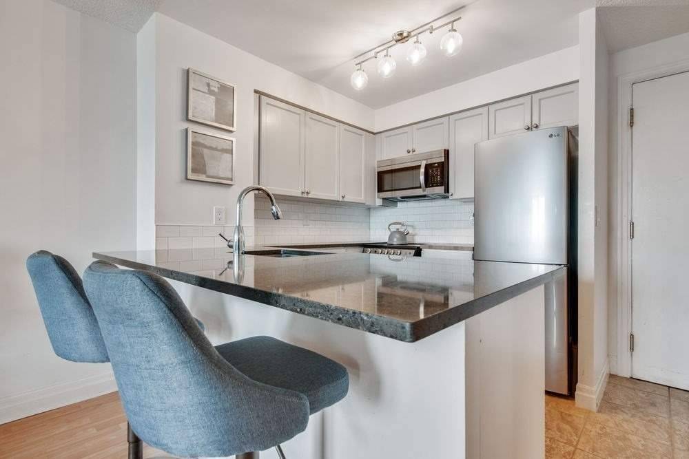 The One Bedroom + Den You Have Been Waiting For! This Rare Unit With No Neighbours Above Has Been Recently Renovated And Features An Oversized Den That Ir Perfect For A Second Bedroom Or Home Office, An Updated Kitchen With New Quartz Countertops, Backsplash And Appliances. Walk Out From Both Living And Bedroom To An Over 20Ft Long Balcony, Perfect For Entertaining. Don't Miss Out!! Updated Kitchen, Stainless Steel Fridge, S/S Stove, B/I Microwave & New B/I Dishwasher(2019), Front Load Steam Washer + Dryer, Window Coverings, Electric Light Fixtures, Amenities Incl: 24-Hr Concierge, Pool, Gym, Theatre, Views & More!