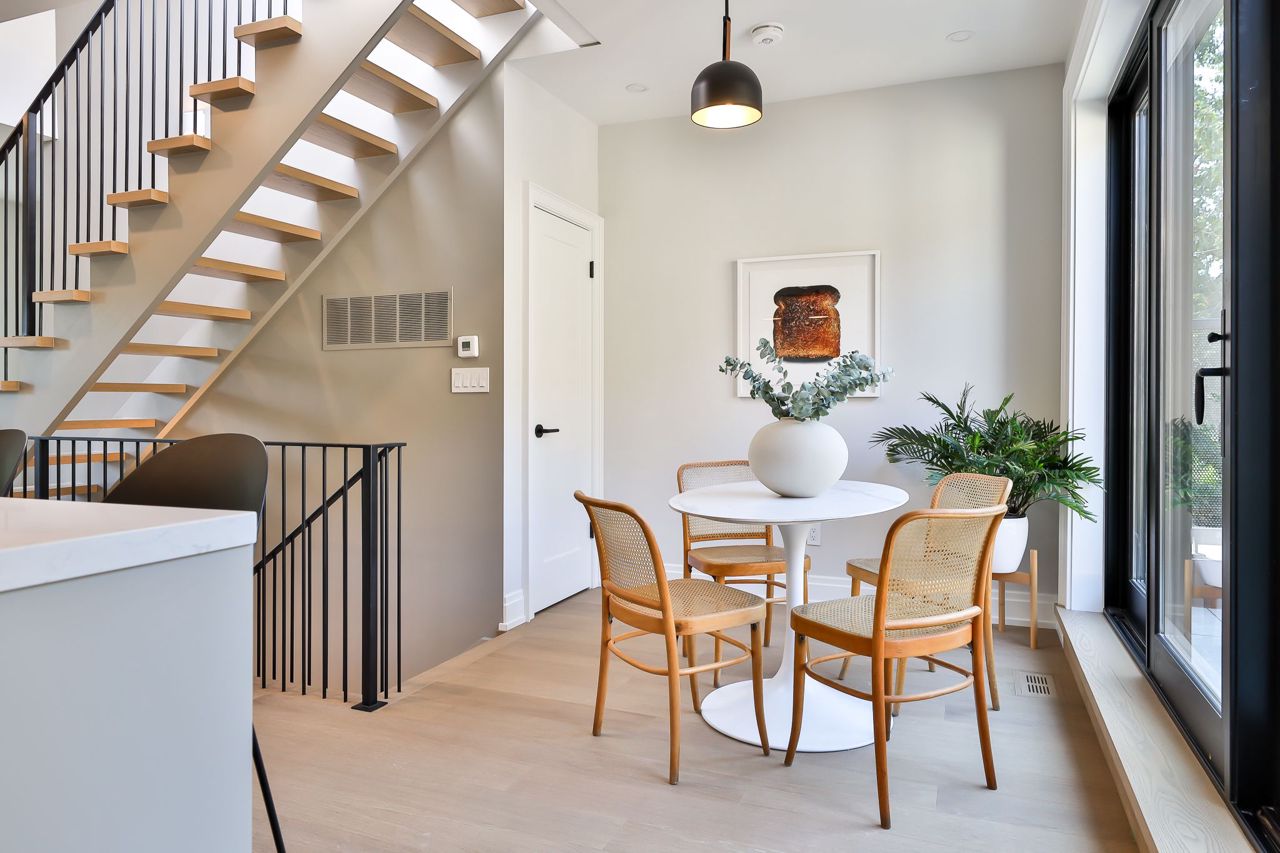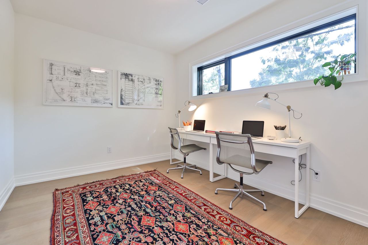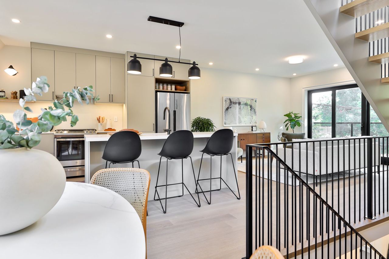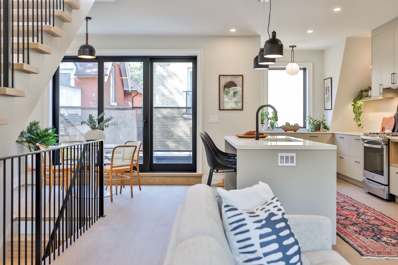 Welcome to this incredible Norwood Park Laneway Home! An exciting project of brand new townhomes atop Toronto’s Beach Hill. A hidden gem nestled amongst the greenery overlooking Norwood Park. The main level boasts a welcoming entrance, radiant in-floor heating, 3 bedrooms nested around a central corridor, laundry facilities, 2 spa inspired washrooms (one ensuite), mechanical & storage. Open concept primary living, dining & kitchen are perched on the upper level with tree top views and remarkable natural light. Spectacular open concept kitchen is a statement of elegant practicality combining clean modern lines, incredible storage, gas stove, expansive counter space and neutral finishes. Stylish & secluded 2pc washroom. South facing Juliette balcony + north facing terrace. 1475 sqft. Thoughtfully considered design for living and impeccable attention to detail… Luxury on the Park!Convenient location with walking access to park, beaches & local amenities. Steps to Go Train, Subway & 506 streetcar. Home features state of the art mechanical combining radiant in floor heat & forced central air system for cooling.