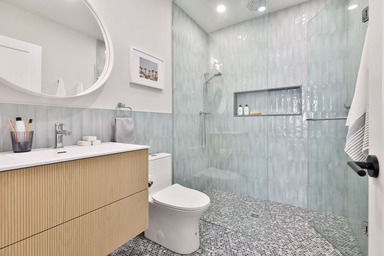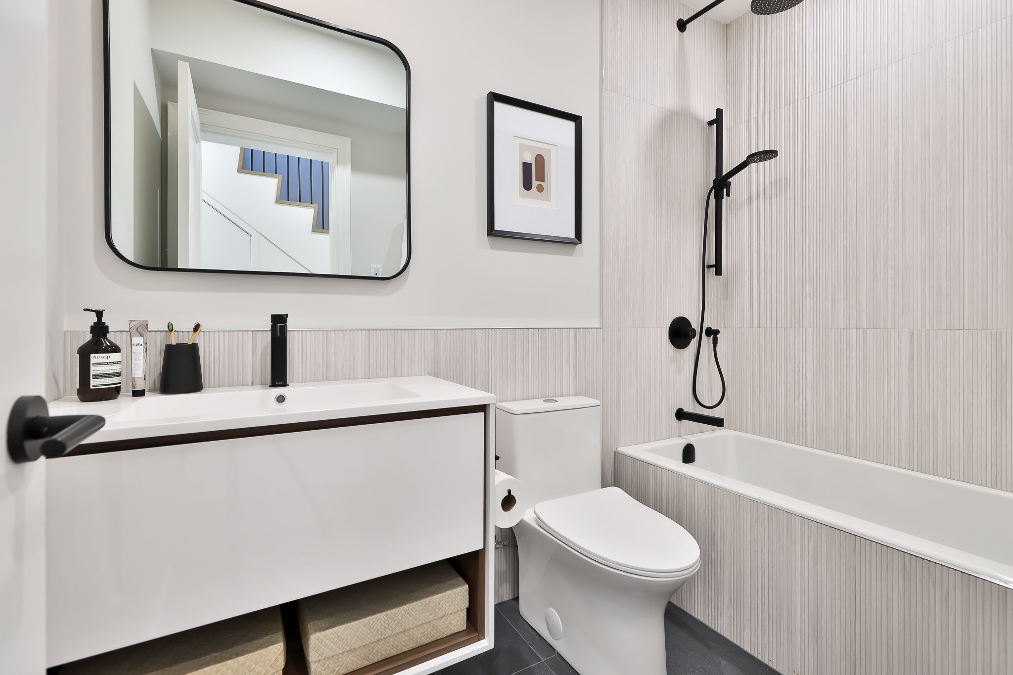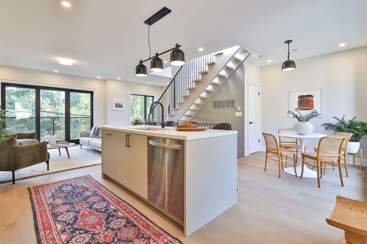 Welcome to this incredible Norwood Park Laneway Home! An exciting project of brand new townhomes atop Toronto’s Beach Hill. A hidden gem nestled amongst the greenery overlooking Norwood Park. The main level boasts a welcoming entrance, radiant in-floor heating, 3 bedrooms nested around a central corridor, laundry facilities, 2 spa inspired washrooms (one ensuite), mechanical & storage. Open concept primary living, dining & kitchen are perched on the upper level with tree top views and remarkable natural light. Spectacular open concept kitchen is a statement of elegant practicality combining clean modern lines, incredible storage, gas stove, expansive counter space and neutral finishes. Stylish & secluded 2pc washroom. South facing Juliette balcony + north facing terrace. 1475 sqft. Thoughtfully considered design for living and impeccable attention to detail… Luxury on the Park!Convenient location with walking access to park, beaches & local amenities. Steps to Go Train, Subway & 506 streetcar. Home features state of the art mechanical combining radiant in floor heat & forced central air system for cooling.