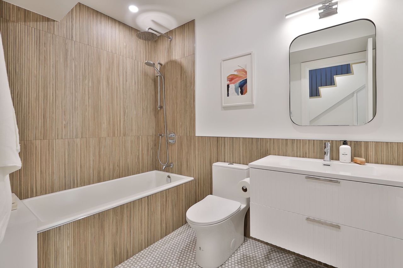 Welcome to this incredible Norwood Park Laneway Home. An exciting project of brand new townhomes atop Toronto’s Beach Hill. A hidden gem nestled amongst the greenery overlooking Norwood Park. The main level boasts a welcoming entrance, radiant in-floor heating, 3 bedrooms nested around a central corridor, laundry facilities, 2 spa inspired washrooms (one ensuite), mechanical & storage. Open concept primary living, dining & kitchen are perched on the upper level with tree top views and remarkable natural light. Spectacular open concept kitchen is a statement of elegant practicality combining clean modern lines, incredible storage, expansive counter space and neutral finishes. Stylish & secluded 2pc washroom. South facing Juliette balcony + north facing terrace. 1474 sqft indoor space. Thoughtfully considered design for living and impeccable attention to detail… Luxury on the Park!Convenient location with walking access to park, beaches & local amenities. Steps to Go Train, Subway & 506 streetcar. Home features state of the art mechanical combining radiant in floor heat & forced central air system for cooling.