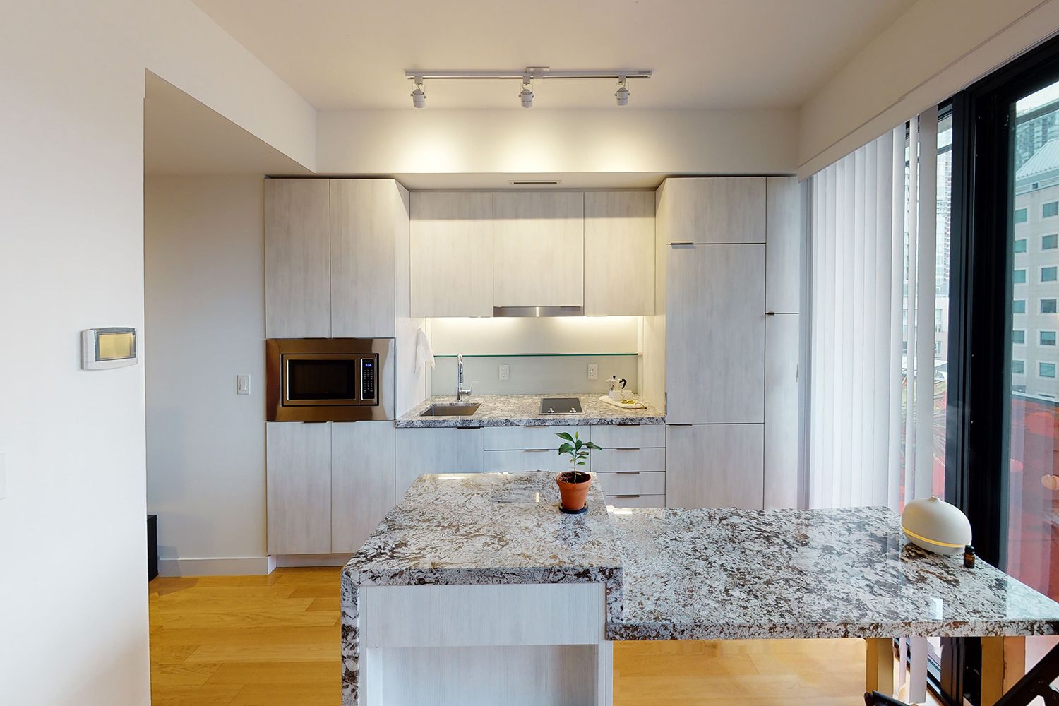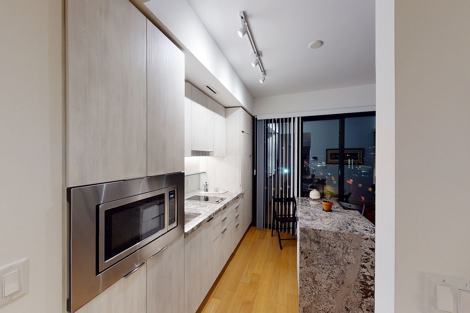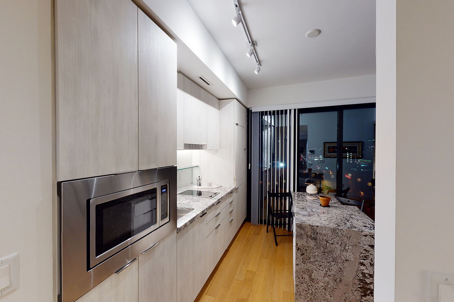 Location! Beautiful Bachelor Unit In the Heart Of Downtown! Amazing View with large Window Balcony! Mins To Subway Station, Shops Restaurants, Theaters, Hospitals. Move-In Ready Modern Apartment! (Build-In Bed, Build-In Shelves, Slide In Table/Kitchen Etc) Mirrored Closet, Gourmet Kitchen W/Stone Counter top, Glass Shower, Lighted Bathroom Mirror . A Must See!Appliances Including:B/I Fridge+Freezer,B/I Cook top, Dishwasher, All-In-One Washer/Dryer. Working professionals and Students are welcome. Tenant Pays For All Utilities.