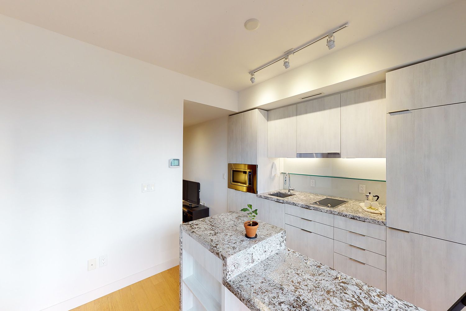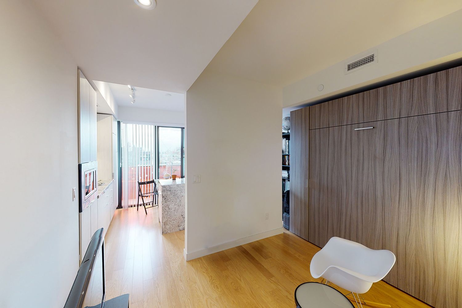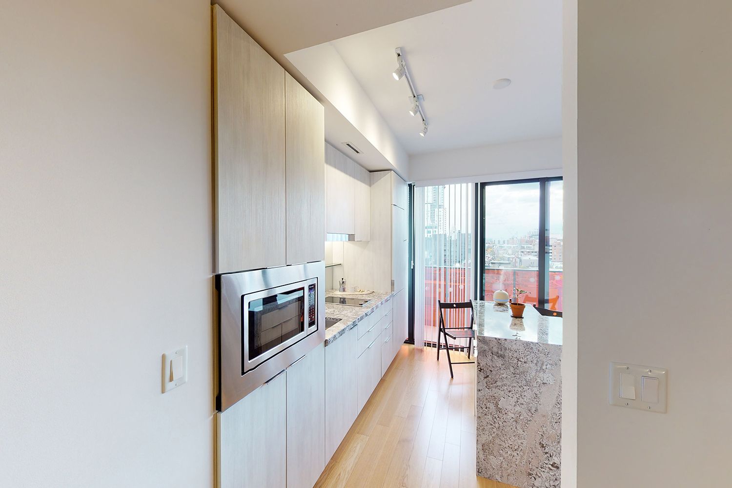 Location! Beautiful Bachelor Unit In the Heart Of Downtown! Amazing View with large Window Balcony! Mins To Subway Station, Shops Restaurants, Theaters, Hospitals. Move-In Ready Modern Apartment! (Build-In Bed, Build-In Shelves, Slide In Table/Kitchen Etc) Mirrored Closet, Gourmet Kitchen W/Stone Counter top, Glass Shower, Lighted Bathroom Mirror . A Must See!Appliances Including:B/I Fridge+Freezer,B/I Cook top, Dishwasher, All-In-One Washer/Dryer. Working professionals and Students are welcome. Tenant Pays For All Utilities.