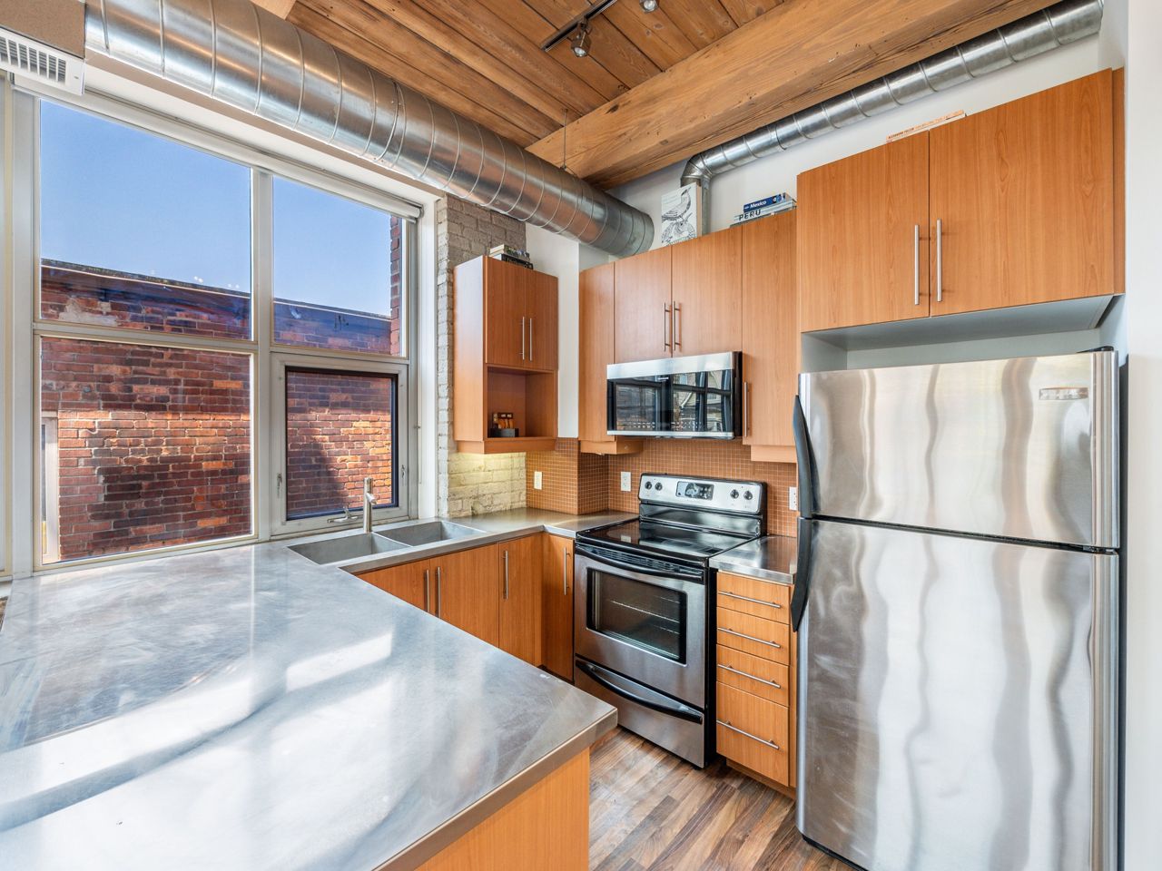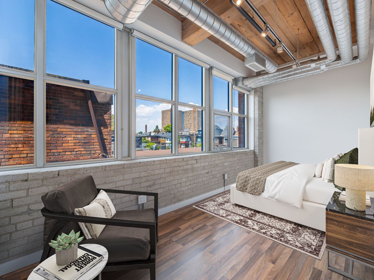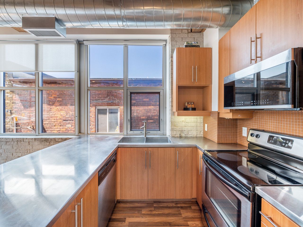 Beautiful, Light-Filled SW Facing 1 Bedroom Corner LOFT In Charming Historic Feather Factory Lofts In Roncesvalles Village. Original 11' Ceilings & Original Exposed Beams, Wood Ceilings, Exposed Brick & Glazed Warehouse Style Windows Make This Home A Pleasure To Live In. Move-In Ready, Wall-To-Wall Windows. Open Concept Living Space With Excellent Flow, Warm Toned Floor, Modern Kitchen With Stainless Steel Appliances & Counter Tops. Large Windows Flood Open Layouts with Natural Light. Beamed ceilings & Exposed Brick Provide Authenticity here in spades. Even Walking Down the Hallways is Inspiring, with Soaring Ceilings, Brick Walls & Antique Beams & Radiators. Services All Your Public Transportation Needs. Steps To Roncesvalles Avenue, Cafes & Shops, The Junction. Walk Or Ride To Lakefront, High Park & Sorauren Farmers Market. A Roncie Must See!! Popular Bandit Brewery is steps away, The Subway & Loblaws are Around the Corner.The Suites at the Feather Factory Lofts are Designed in an Open Concept Fashion, Partitions Walls are Added in Order to Separate Rooms. On Top of the Heritage Exclusivity Offered the Number of Suites are small.