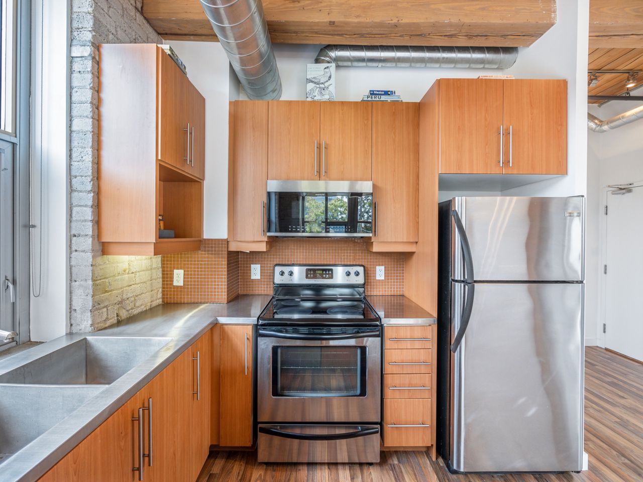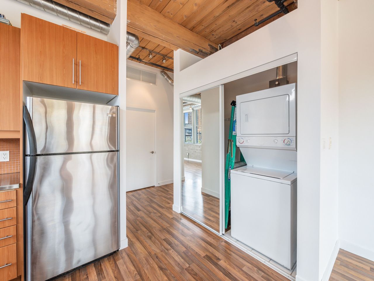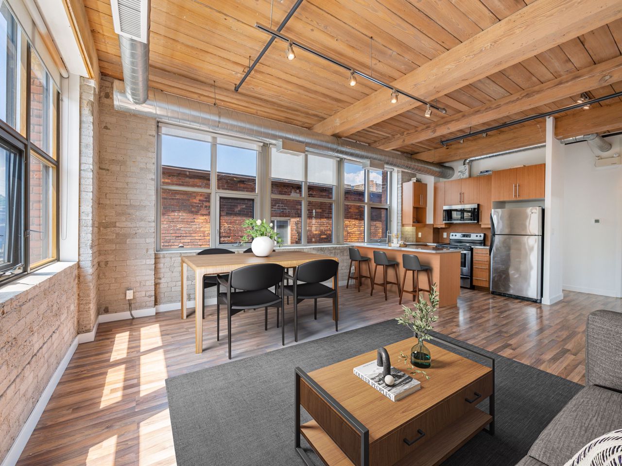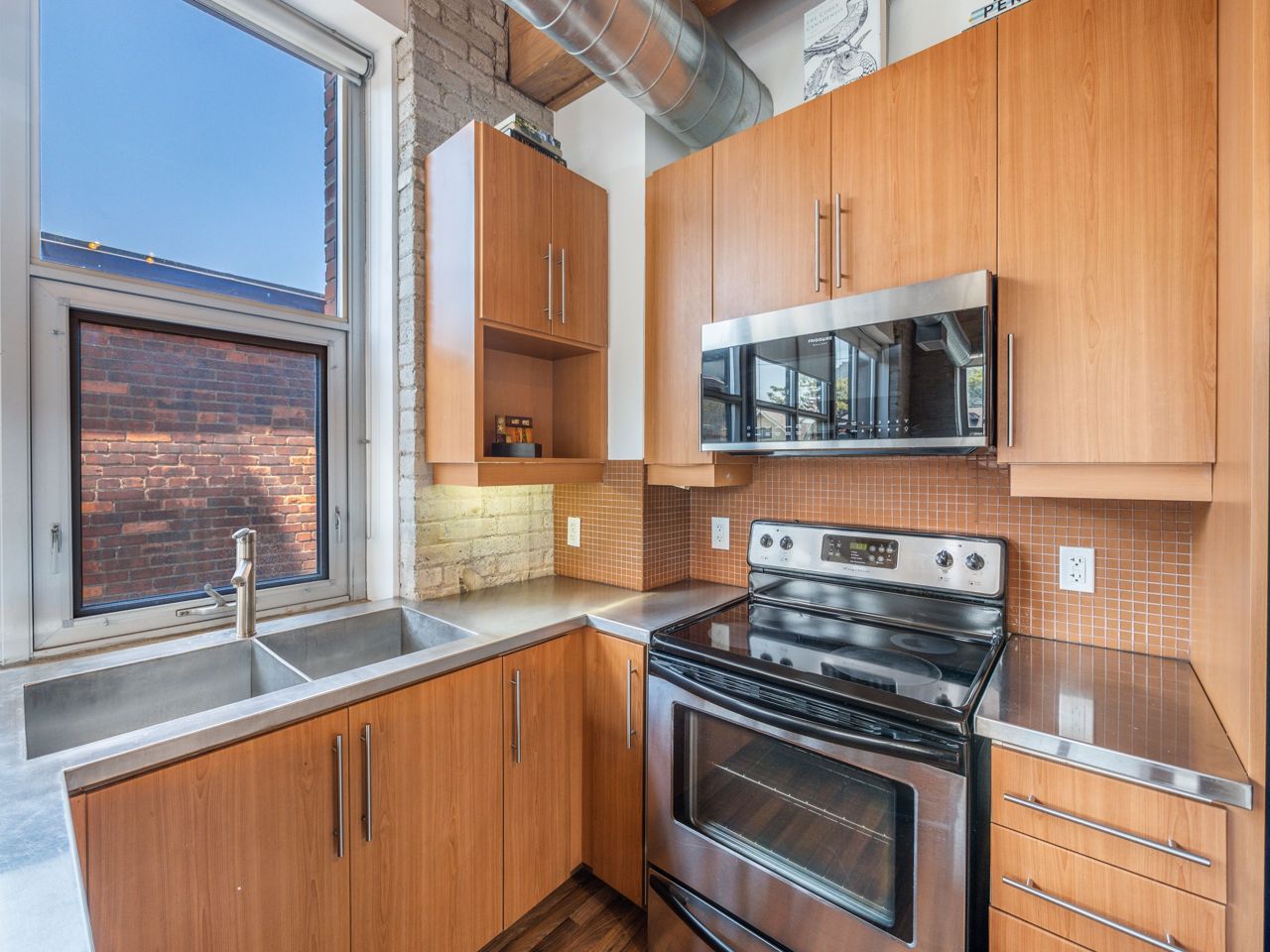 Beautiful, Light-Filled SW Facing 1 Bedroom Corner LOFT In Charming Historic Feather Factory Lofts In Roncesvalles Village. Original 11' Ceilings & Original Exposed Beams, Wood Ceilings, Exposed Brick & Glazed Warehouse Style Windows Make This Home A Pleasure To Live In. Move-In Ready, Wall-To-Wall Windows. Open Concept Living Space With Excellent Flow, Warm Toned Floor, Modern Kitchen With Stainless Steel Appliances & Counter Tops. Large Windows Flood Open Layouts with Natural Light. Beamed ceilings & Exposed Brick Provide Authenticity here in spades. Even Walking Down the Hallways is Inspiring, with Soaring Ceilings, Brick Walls & Antique Beams & Radiators. Services All Your Public Transportation Needs. Steps To Roncesvalles Avenue, Cafes & Shops, The Junction. Walk Or Ride To Lakefront, High Park & Sorauren Farmers Market. A Roncie Must See!! Popular Bandit Brewery is steps away, The Subway & Loblaws are Around the Corner.The Suites at the Feather Factory Lofts are Designed in an Open Concept Fashion, Partitions Walls are Added in Order to Separate Rooms. On Top of the Heritage Exclusivity Offered the Number of Suites are small.